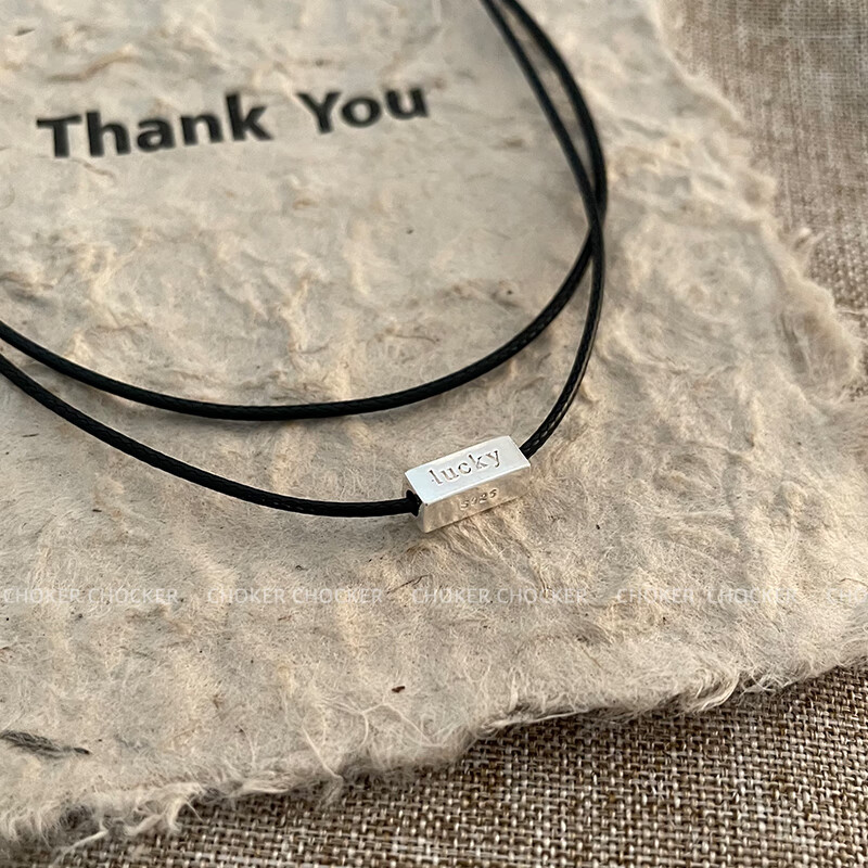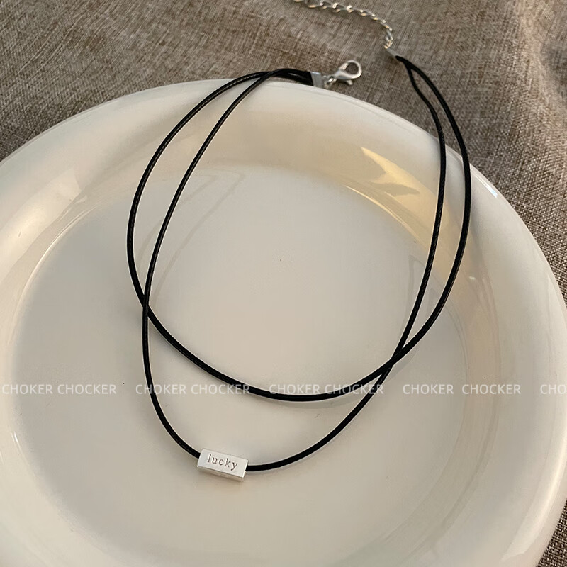 ROSENA SAMMI Sun Qiantong necklace lucky double-layer black leather rope neck strap female choker necklace clavicle chain niche design lucky square collar