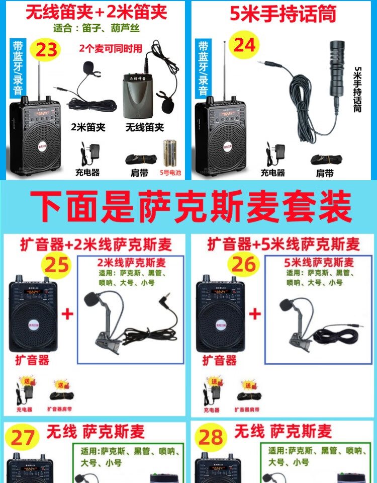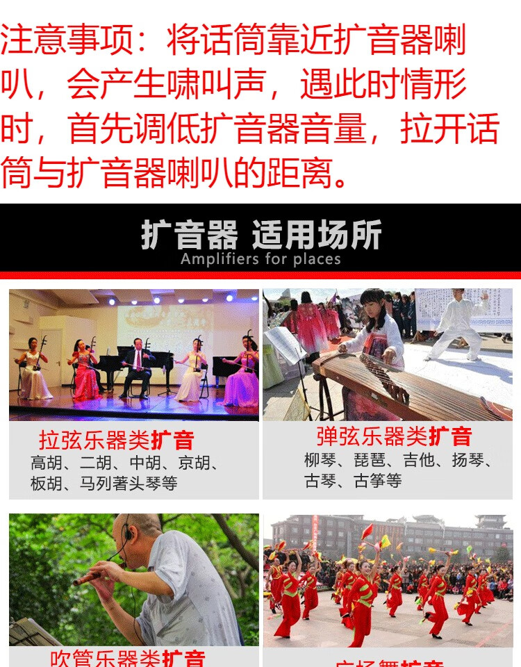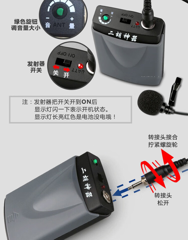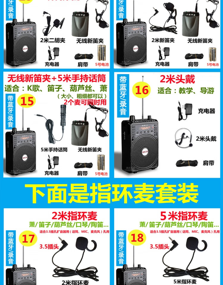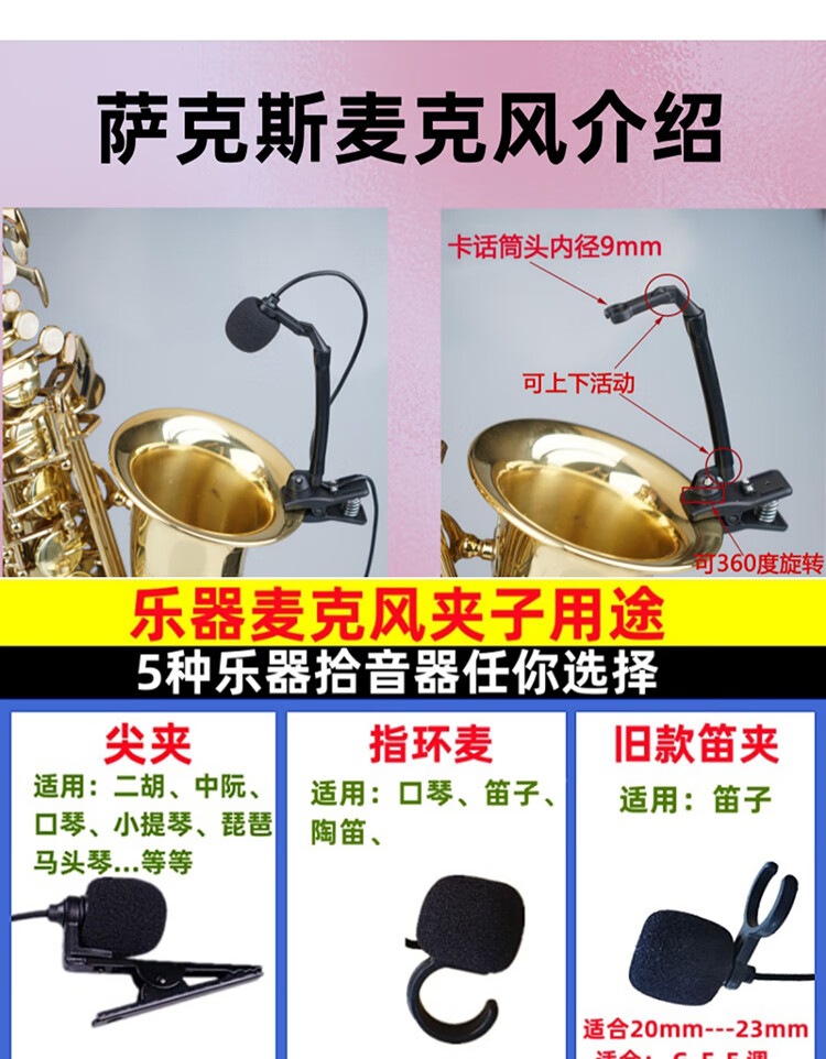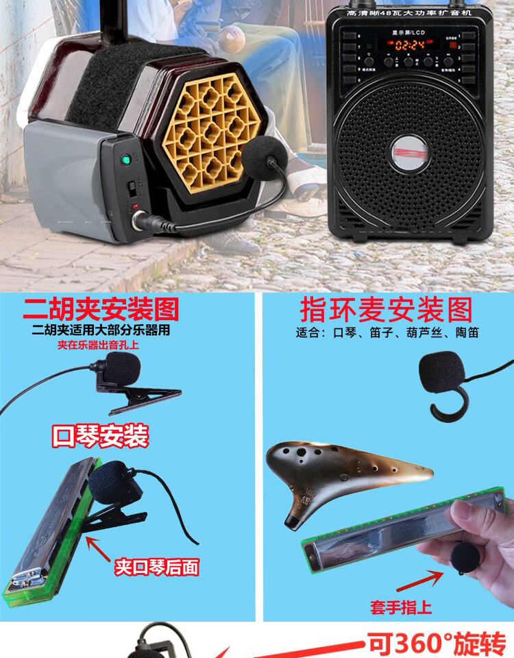 Jinsheng microphone microphone clip is suitable for Erhu, flute, cucurbit flute, saxophone, harmonica, Xiao musical instrument special wireless audio amplifier Bluetooth portable speaker No. 6, wireless headset + 5m Erhu clip, play and sing at the same time