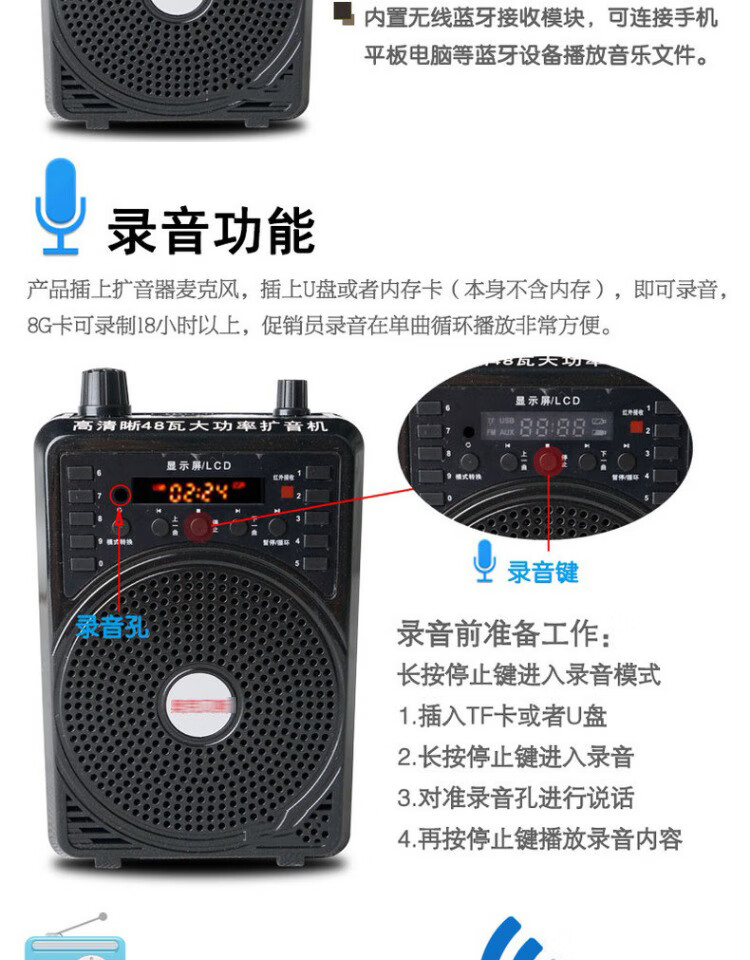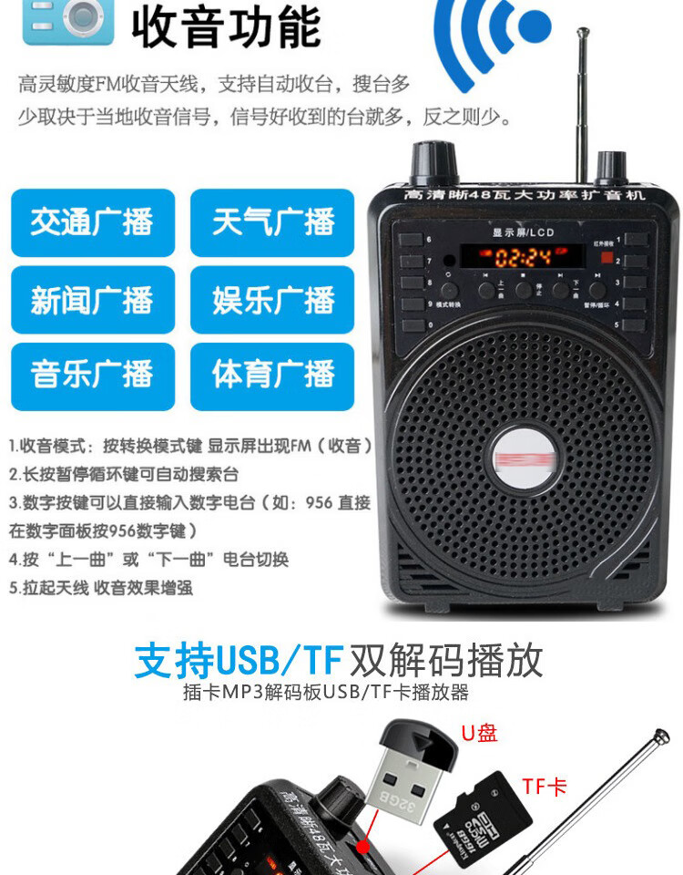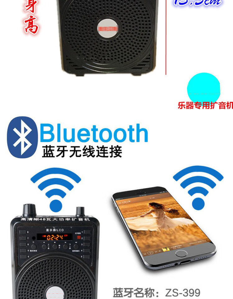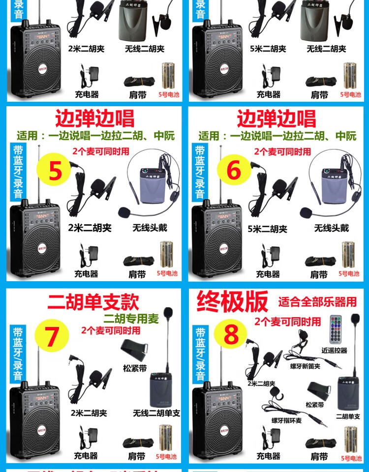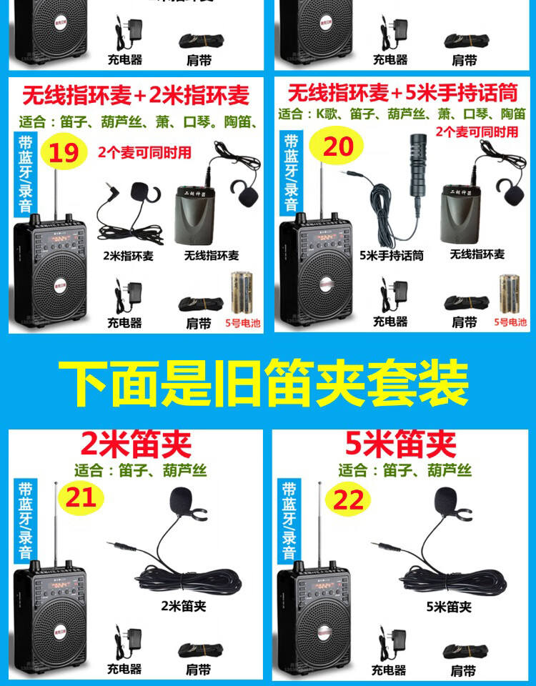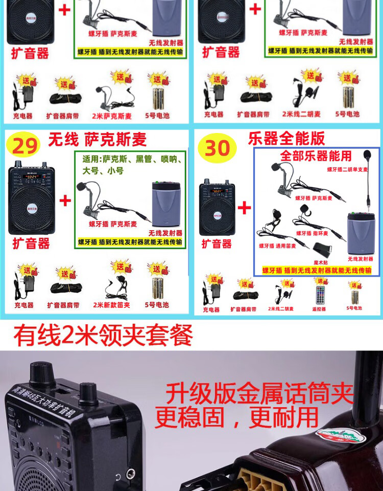 Jinsheng microphone microphone clip is suitable for Erhu, flute, cucurbit flute, saxophone, harmonica, Xiao musical instrument special wireless audio amplifier Bluetooth portable speaker No. 6, wireless headset + 5m Erhu clip, play and sing at the same time