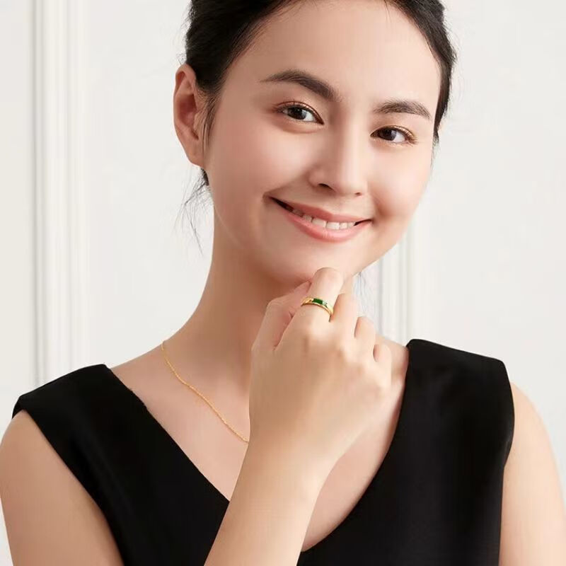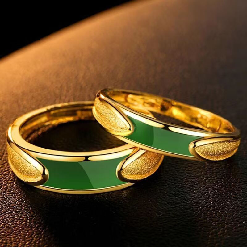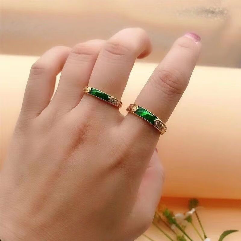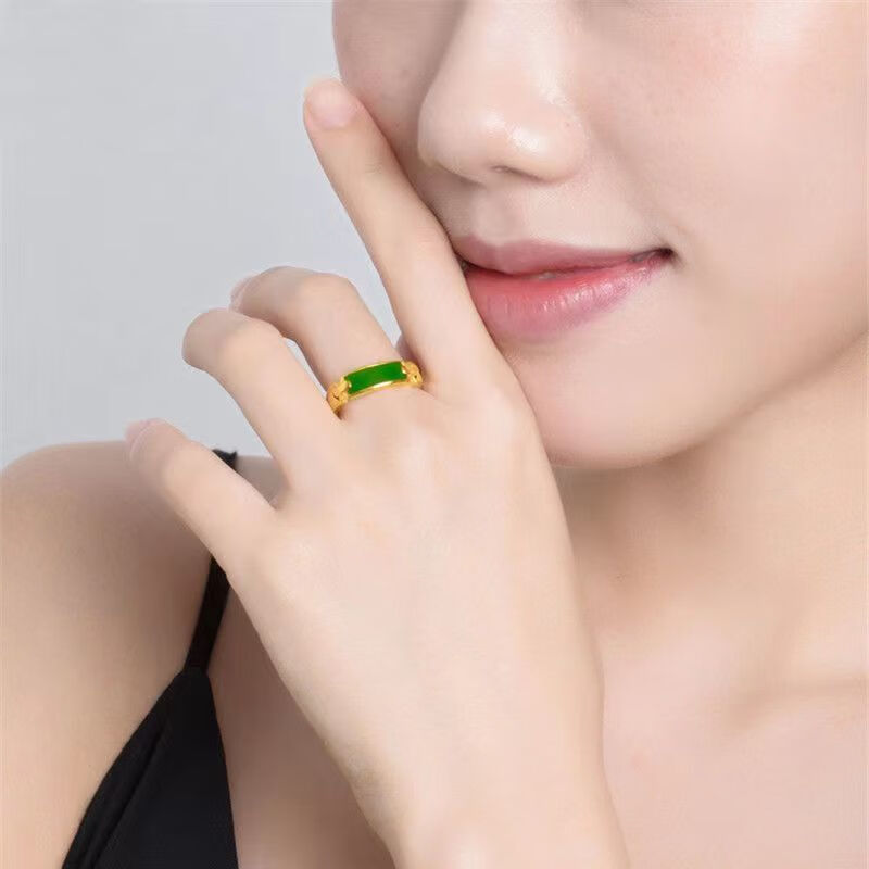 DL 1998 Fat Donglai same style Vietnamese alluvial gold plain ring, grab gold, unisex, inlaid with green jade ring, opening can be set, inlaid with green jade/ring 7.656 grams, one day loss, with opening adjustable