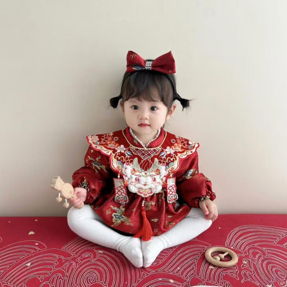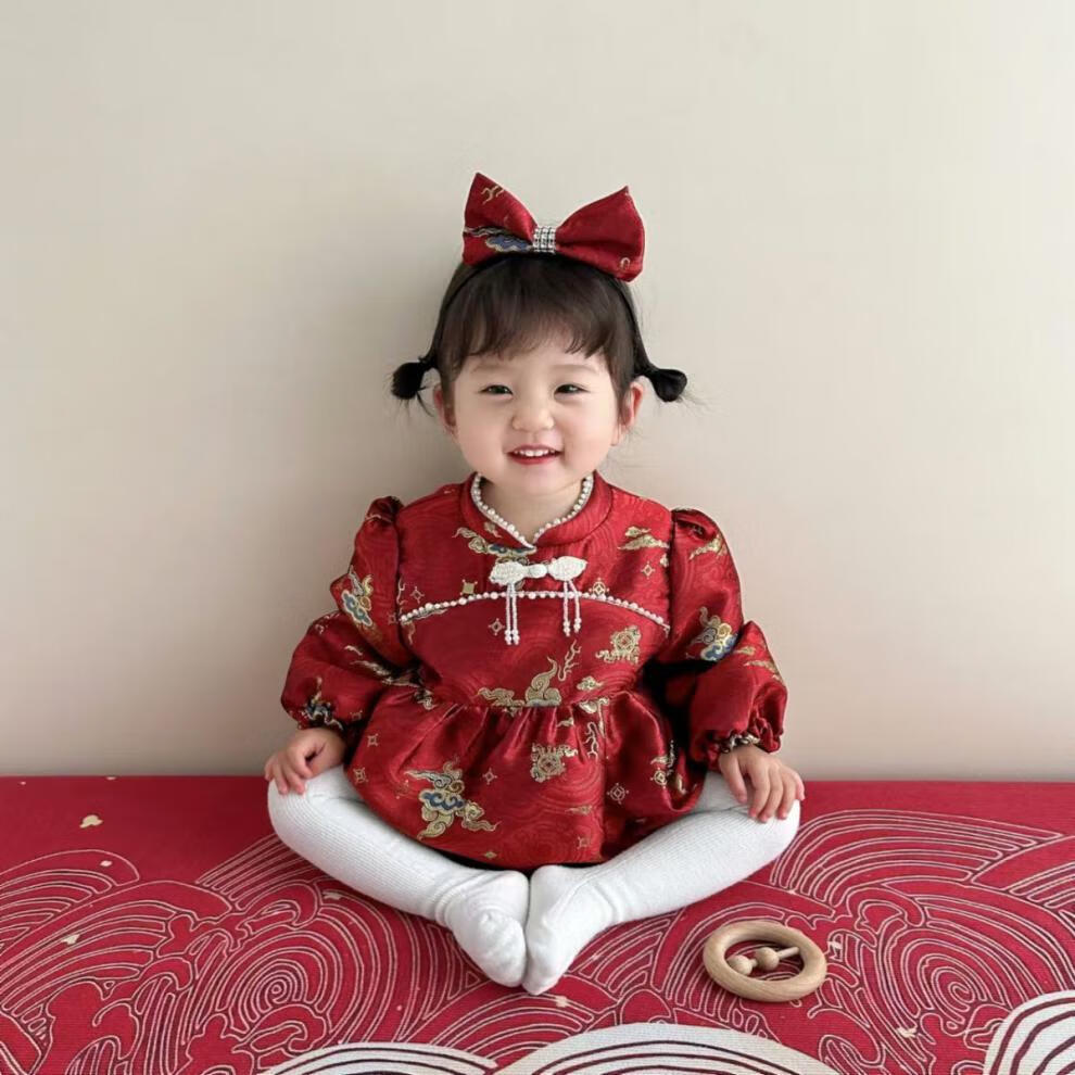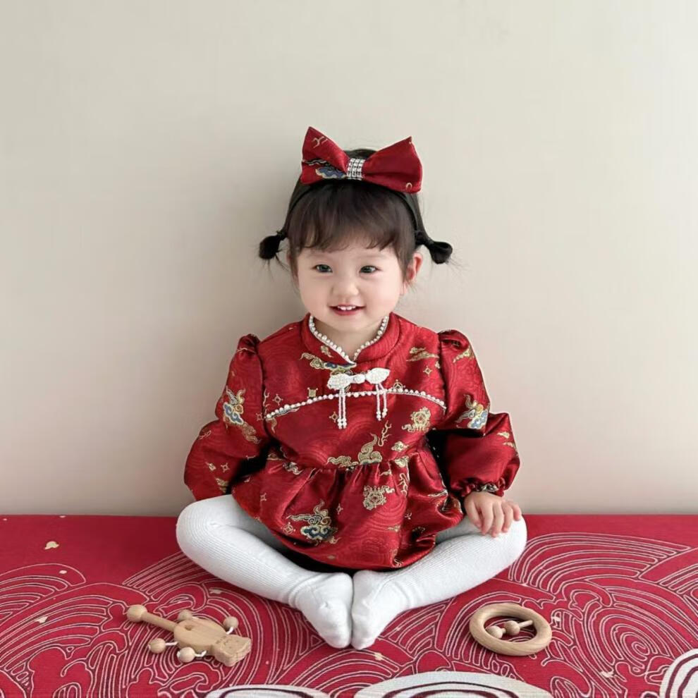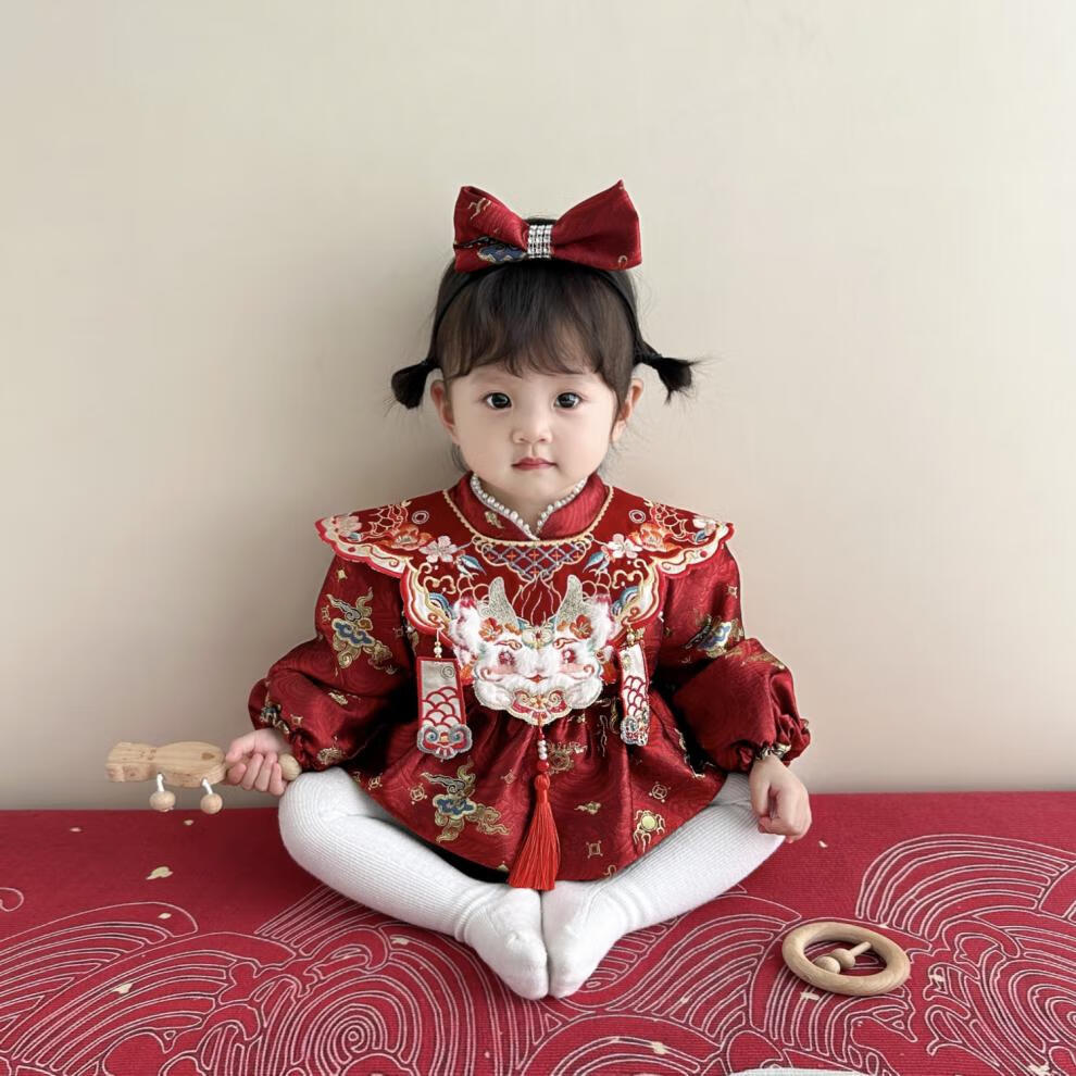 G.duck little yellow duck new baby girl one-year-old one-year-old one-piece dress Chinese style baby 100-day banquet to celebrate birthday red + cloud shoulder (regular style) 90cm 90 (recommended 20-22Jin Jin is equal to 0.5 kg)