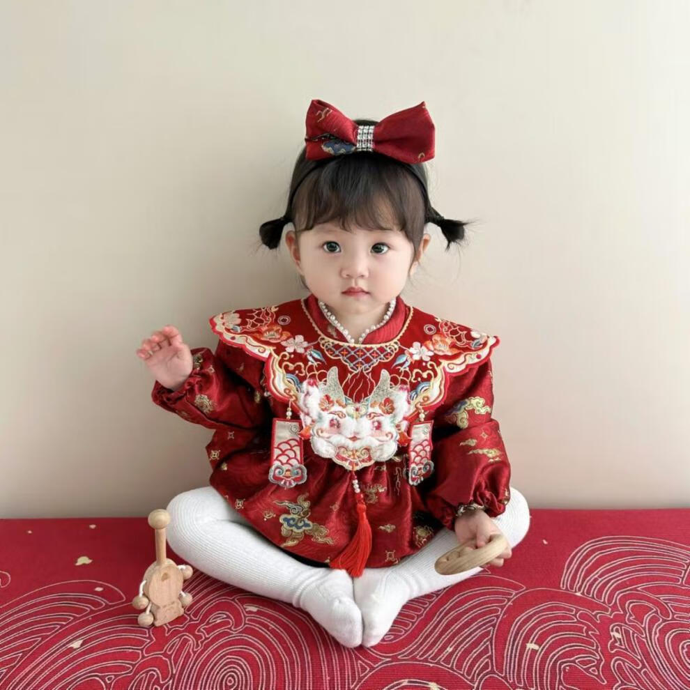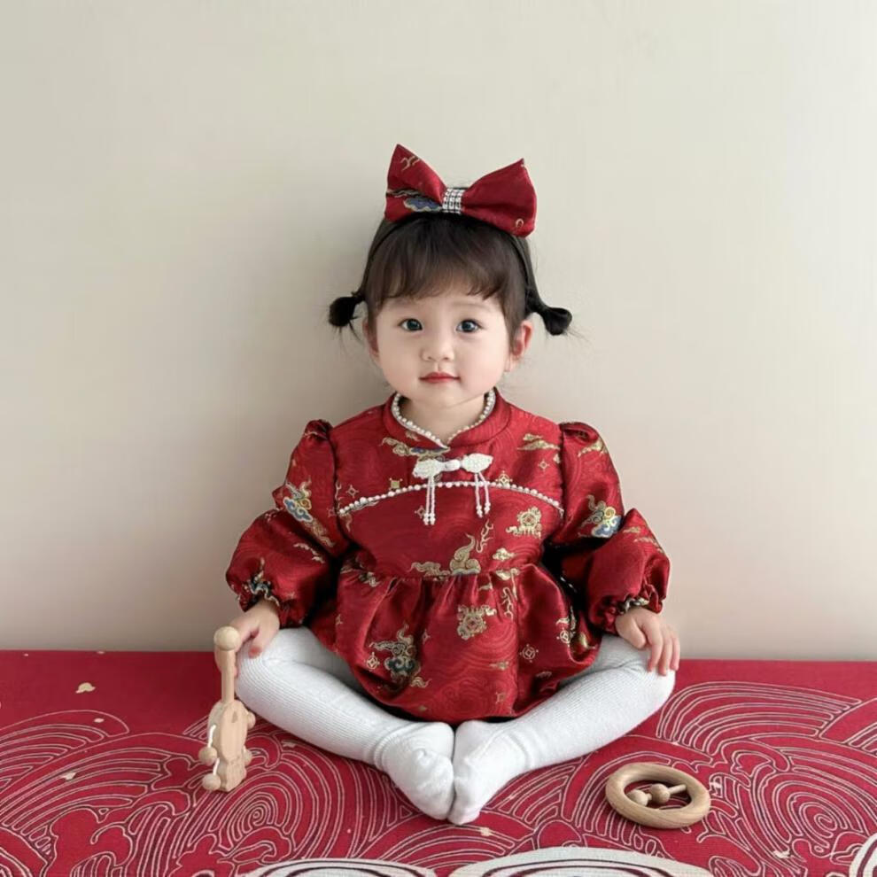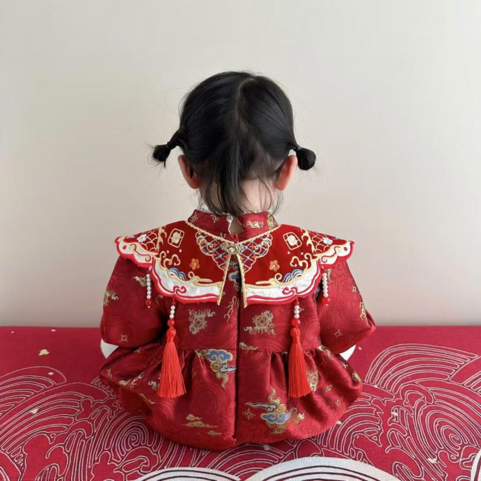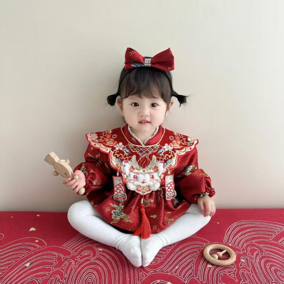 G.duck little yellow duck new baby girl one-year-old one-year-old one-piece dress Chinese style baby 100-day banquet to celebrate birthday red + cloud shoulder (regular style) 90cm 90 (recommended 20-22Jin Jin is equal to 0.5 kg)