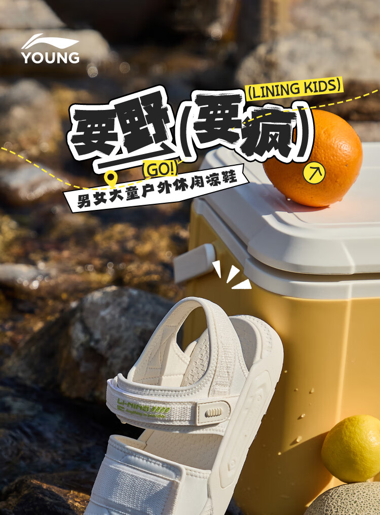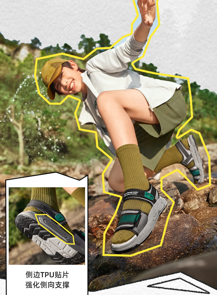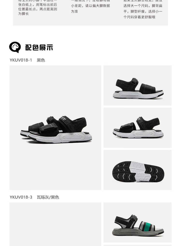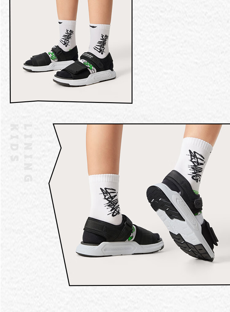 Li Ning Children's Sandals Big Children's Wear-Resistant Lightweight Rebound Comfortable Casual Sports Shoes Rubble Gray/Black-3 36