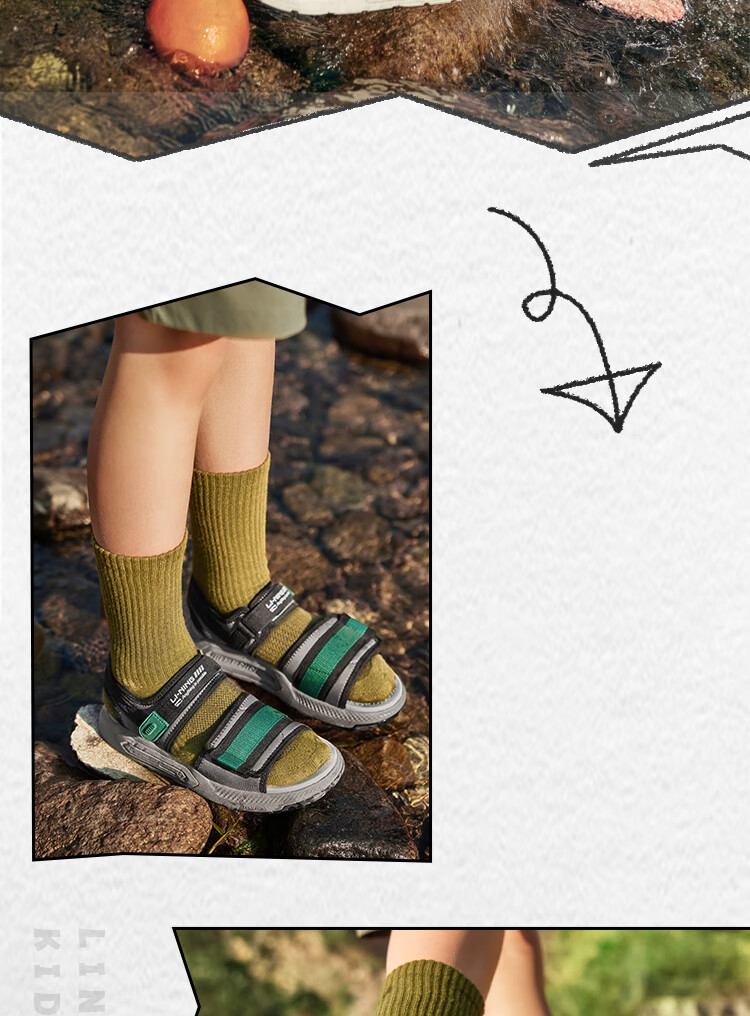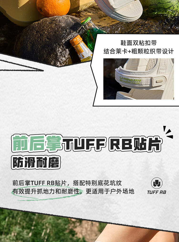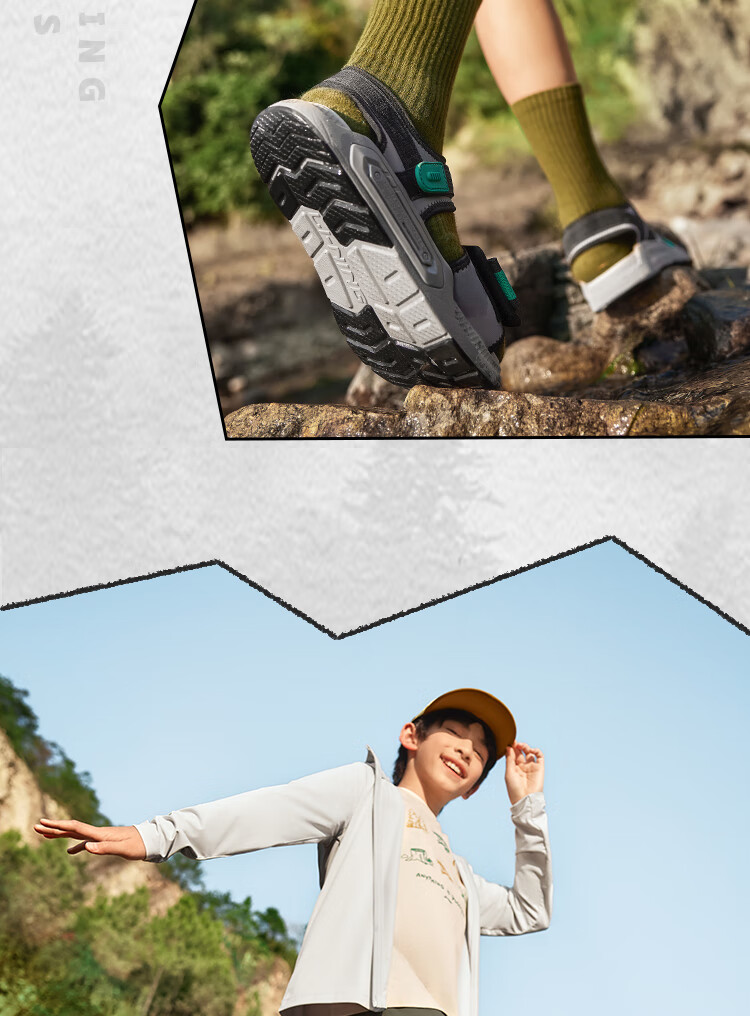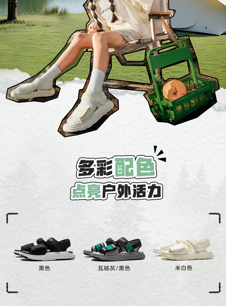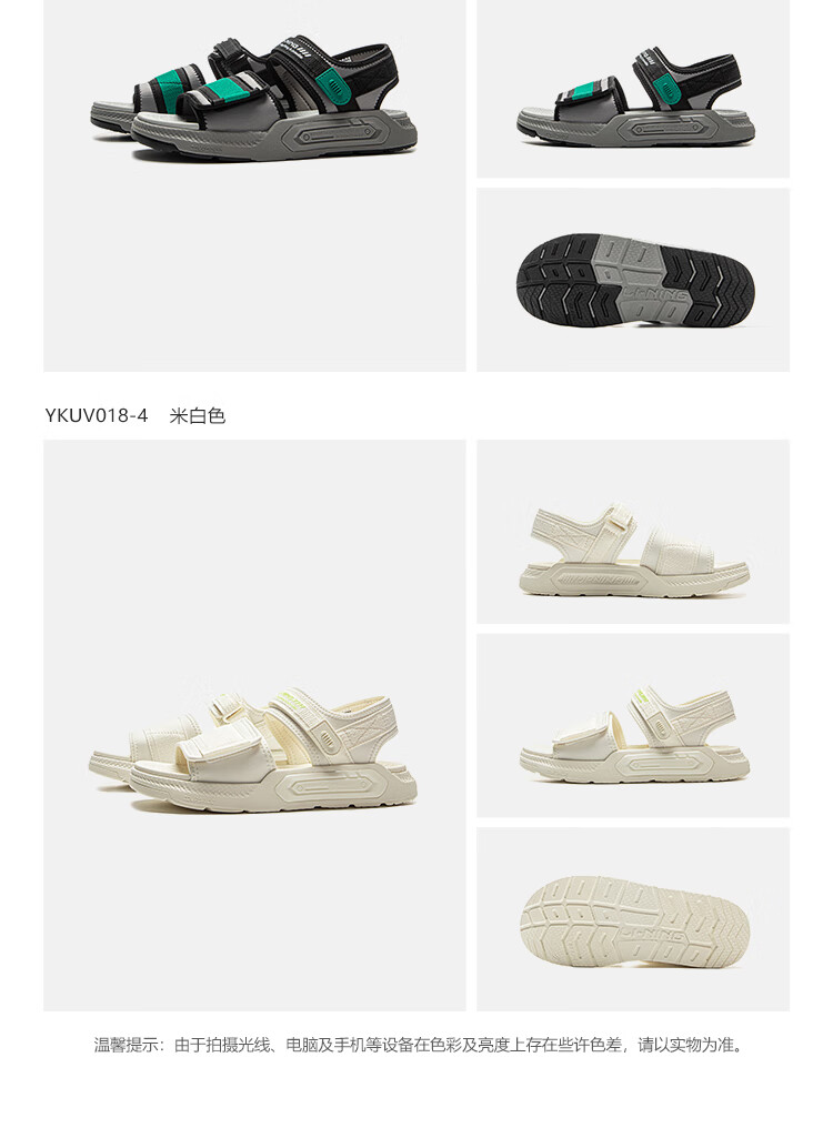Li Ning Children's Sandals Big Children's Wear-Resistant Lightweight Rebound Comfortable Casual Sports Shoes Rubble Gray/Black-3 36
