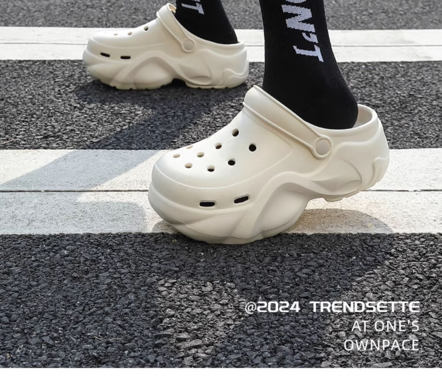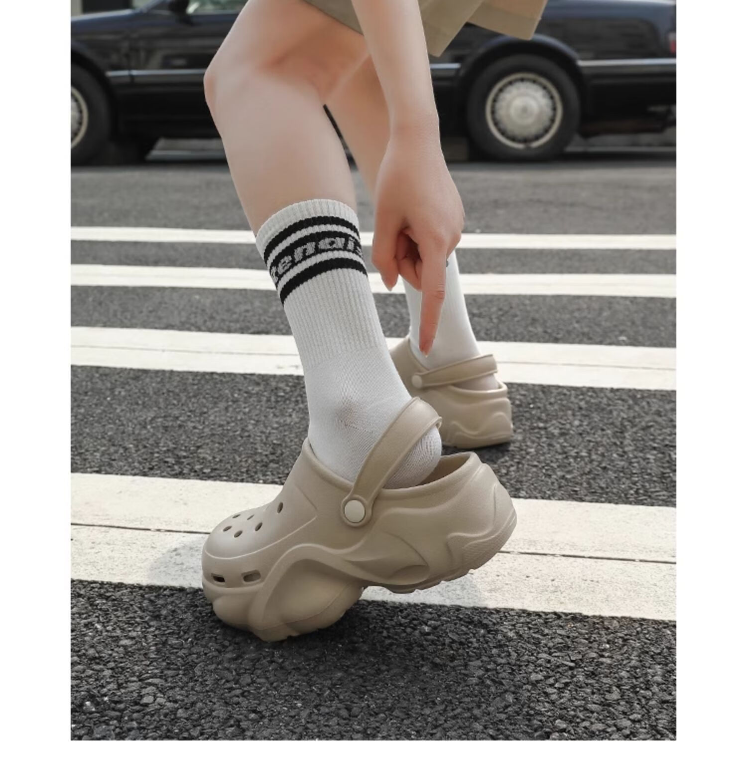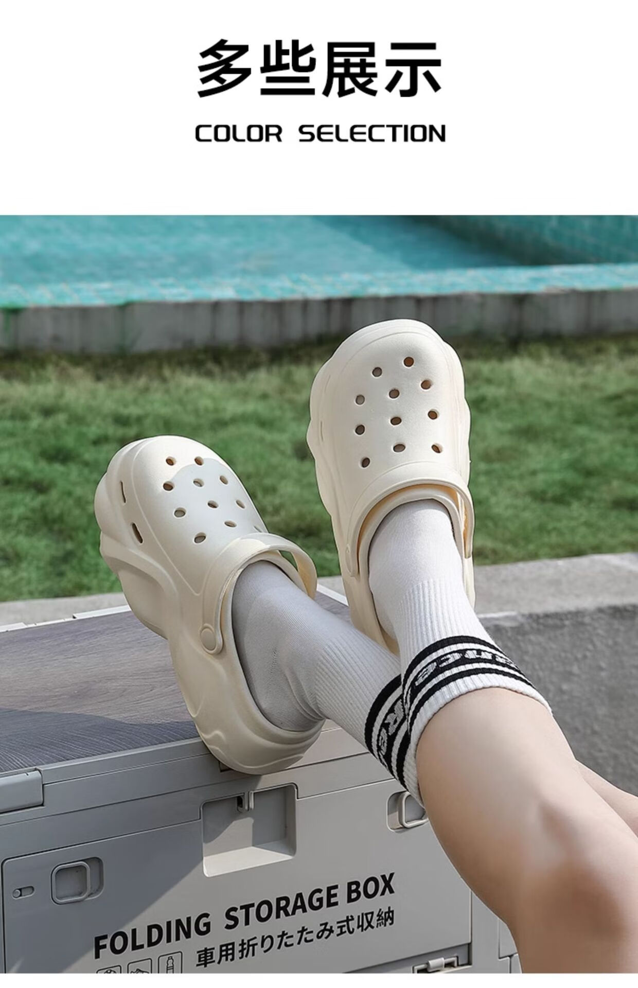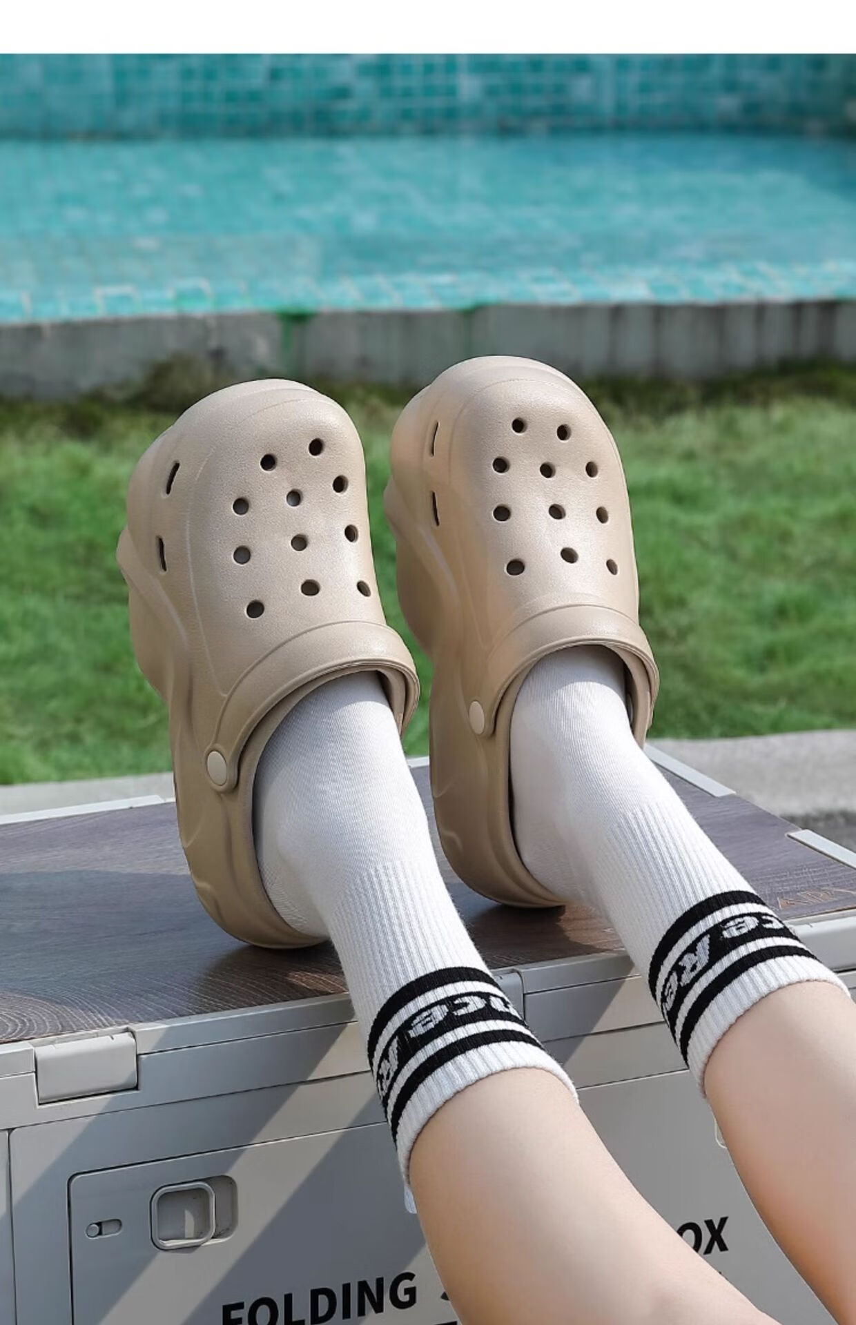 Bangbo Shidong Croc Shoes Women's Spring and Summer Outerwear 2025 New EVA Thick Sole Heightening Beach Seaside Baotou Sandals Women's Croc Shoes Beige Brown Bear 37-38