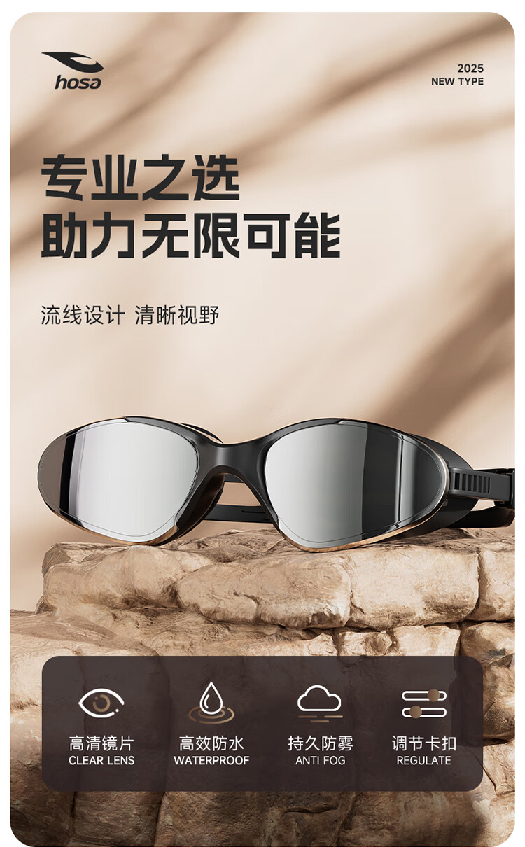 Hosa swimming goggles HD electroplating professional swimming myopia glasses waterproof and anti-fog diving equipment unisex swimming goggles black myopia 250