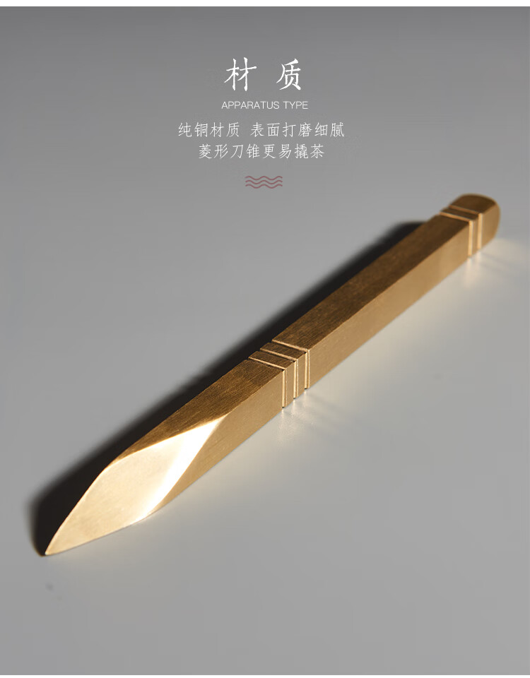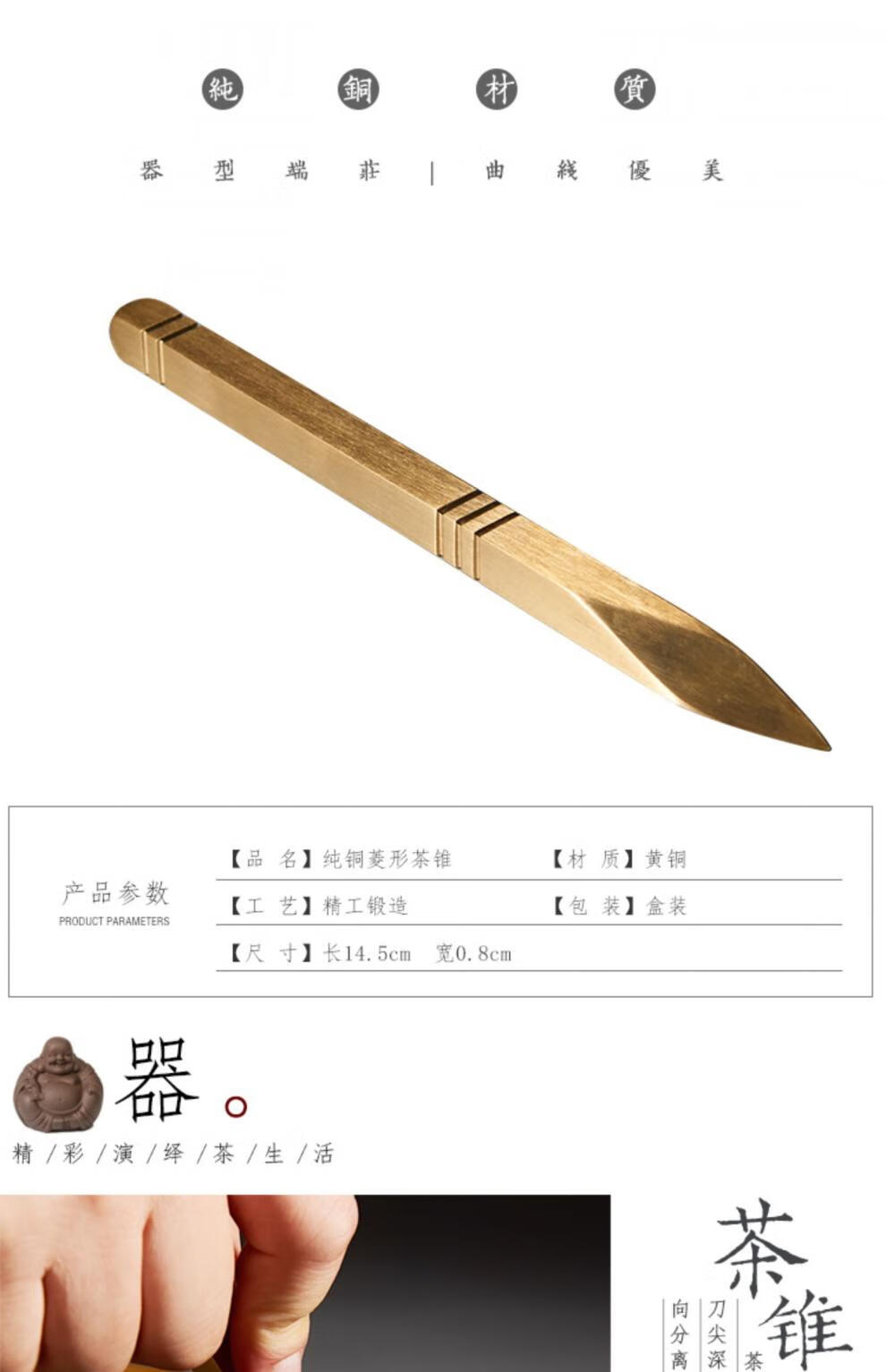 Fat Donglai's same tea knife, Pu'er tea knife, pure copper Kung Fu tea ceremony accessories, tea needle, tea cone, tea cake opening, pure hand pure copper square tea knife