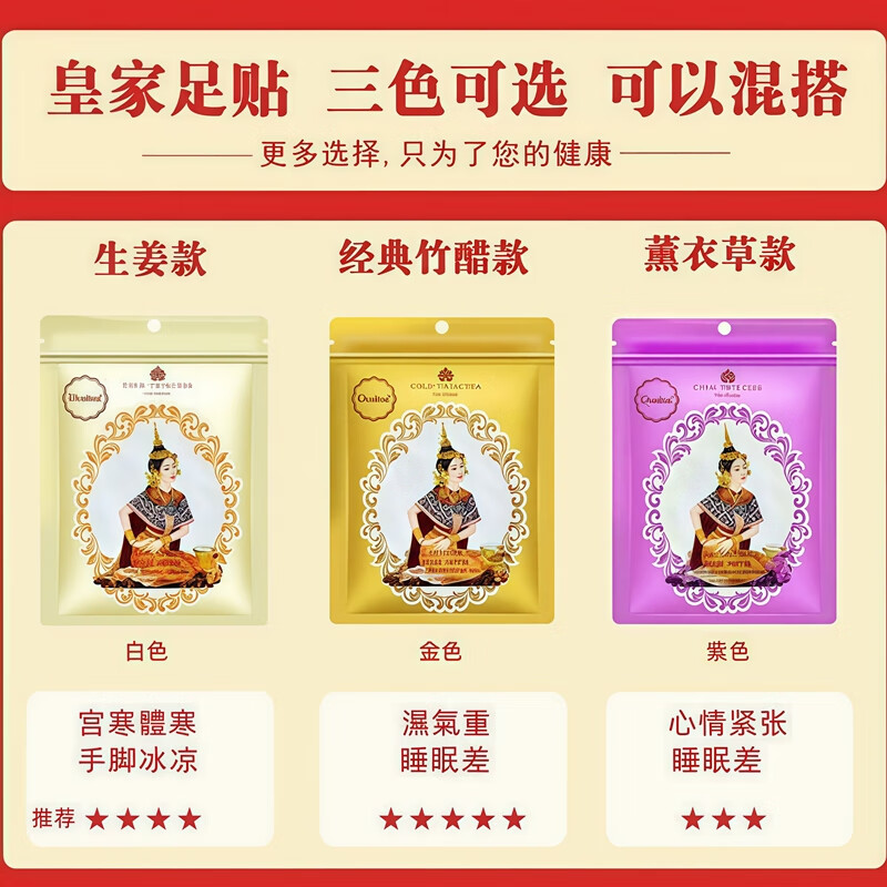 Dusitra Thailand imported royal foot patches genuine mugwort ginger bamboo vinegar discharge wet lavender sleep health foot patches 10 packs of 100 patches