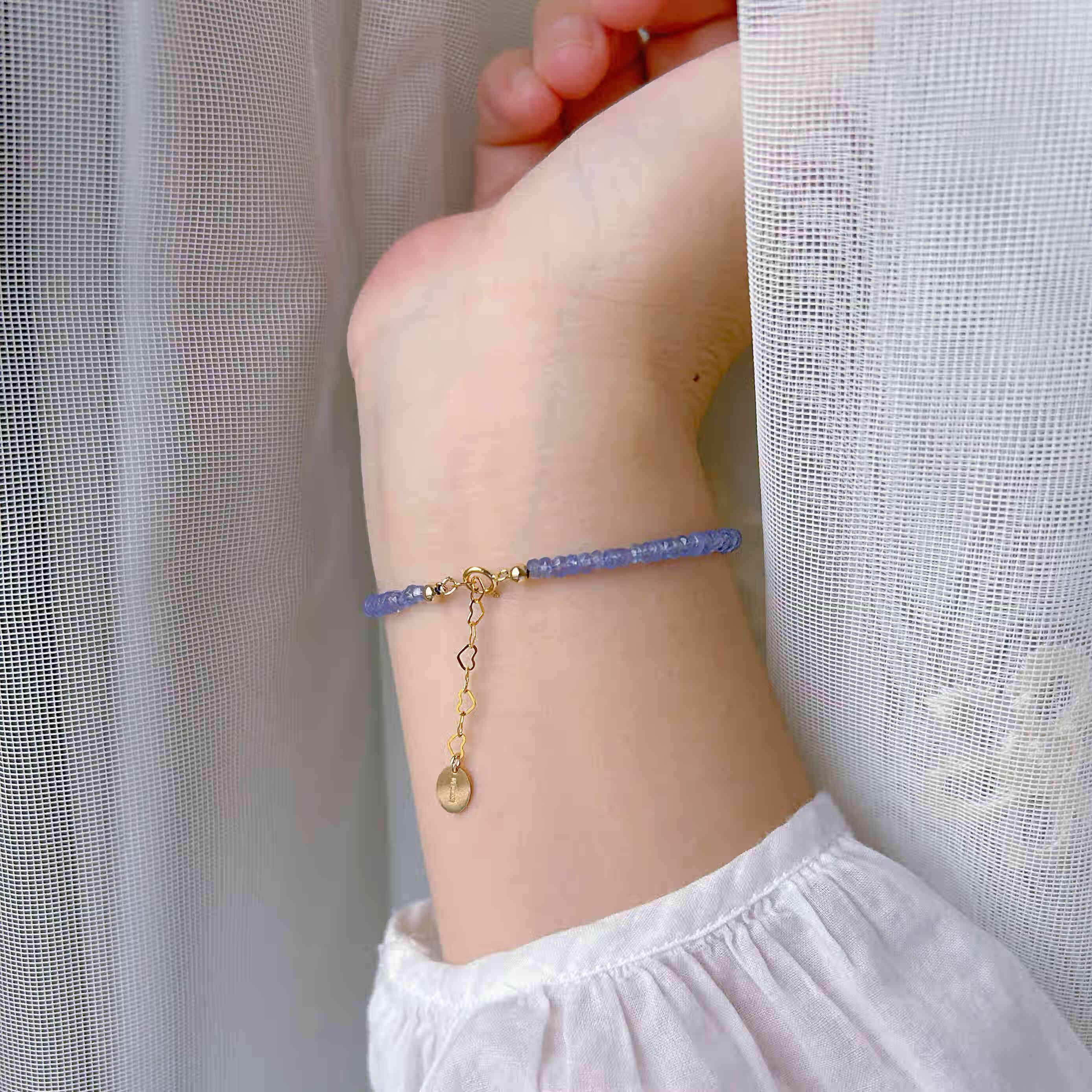 Chihuan natural ice-through tanzanite 18k gold imported 14K gold-filled bracelet original design niche temperament versatile and customizable gold-filled model 2.5mm thin 15+3cm suitable for 14