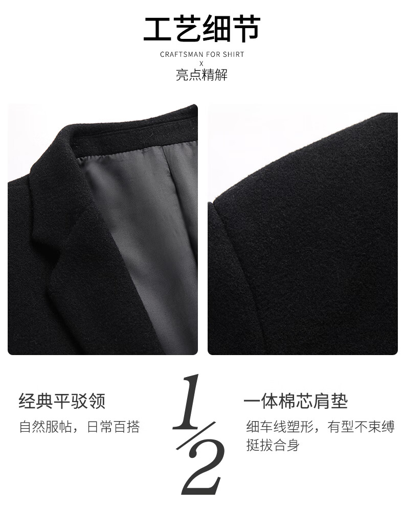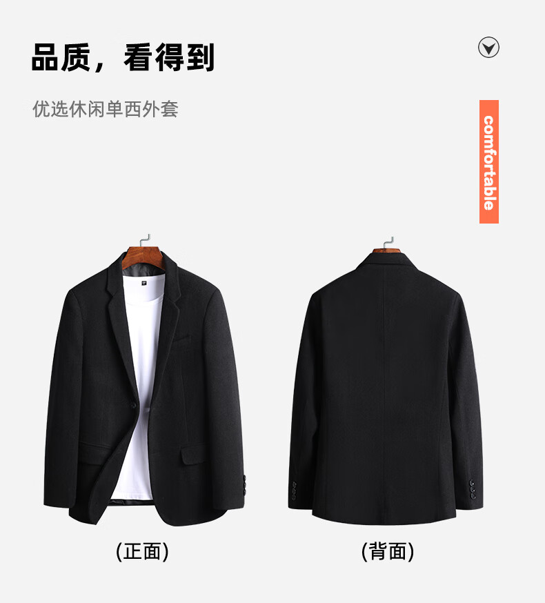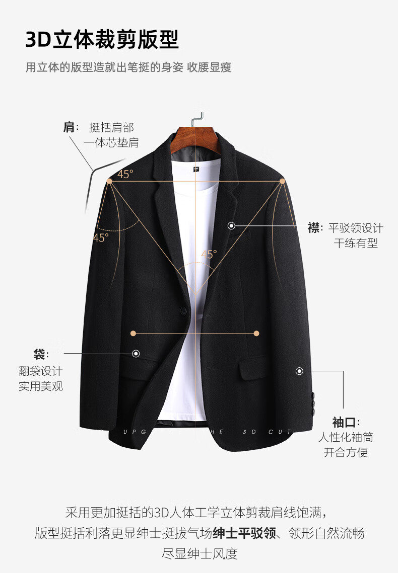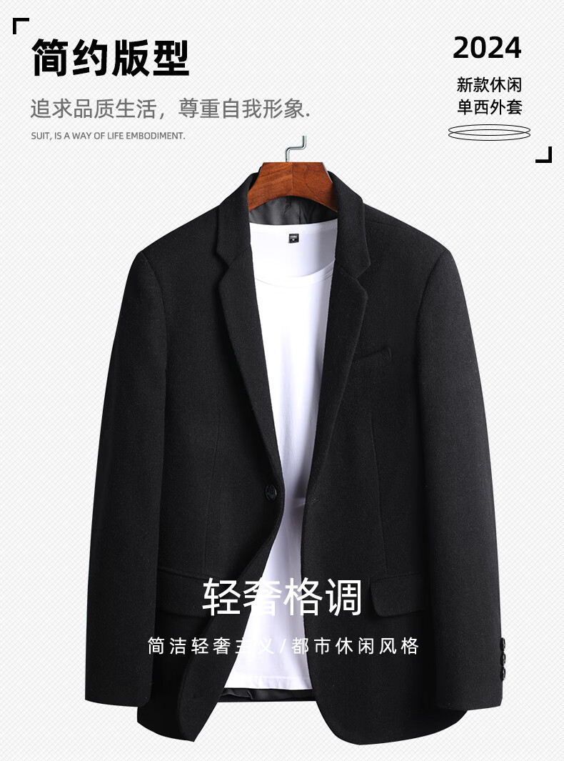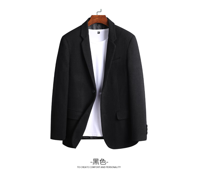 SHANSHAN Shanshan suit men's autumn and winter wool blended business professional single suit thickened warm top men's commuter jacket black L 175