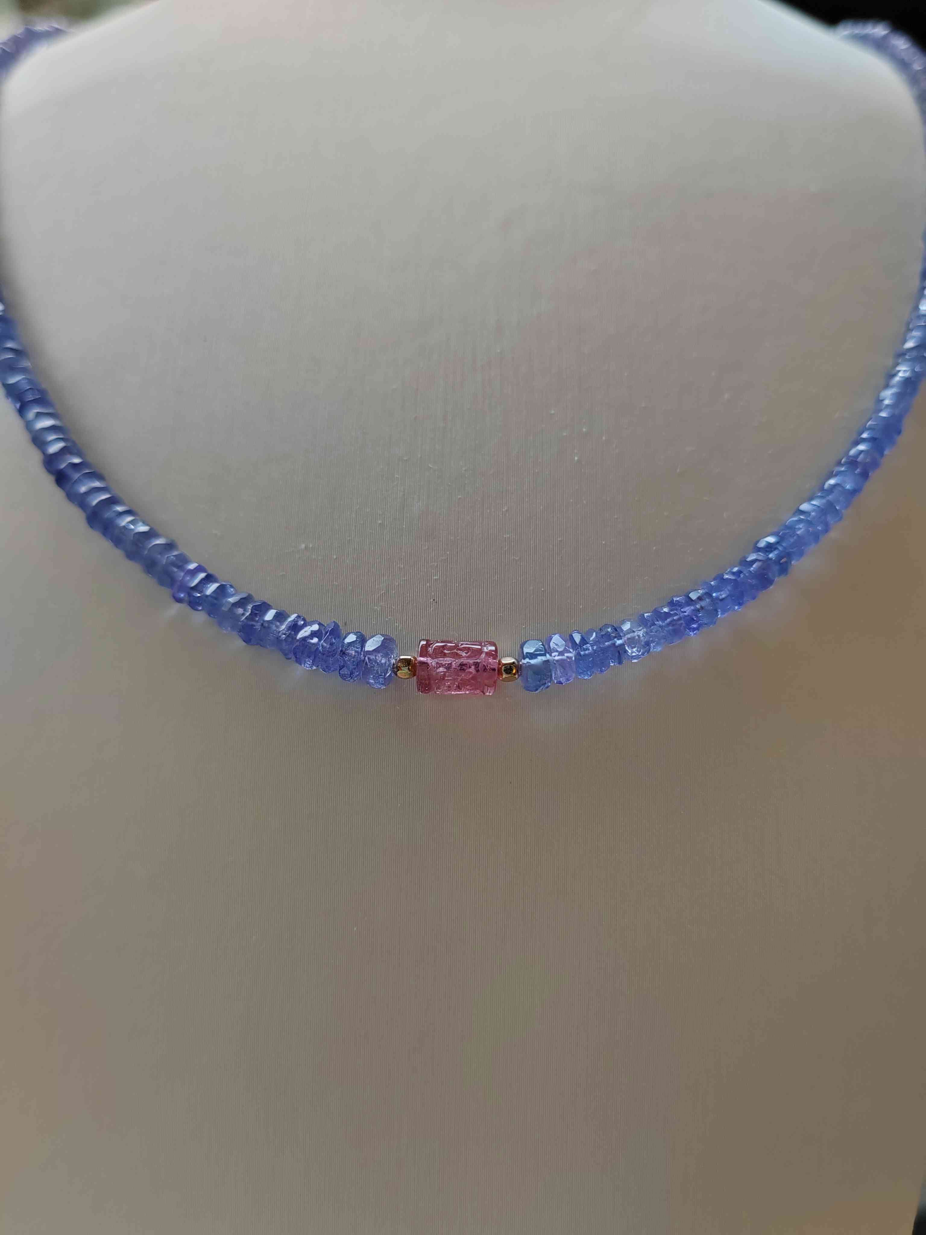 Chihuan Natural India Imported Tanzanite Necklace High-Quality Ice-Permeable Gem-Grade Blue-Purple Necklace Pink Tourmaline Necklace Bracelet High-quality Ice-Permeable Tanzanite Necklace About 3-4.2