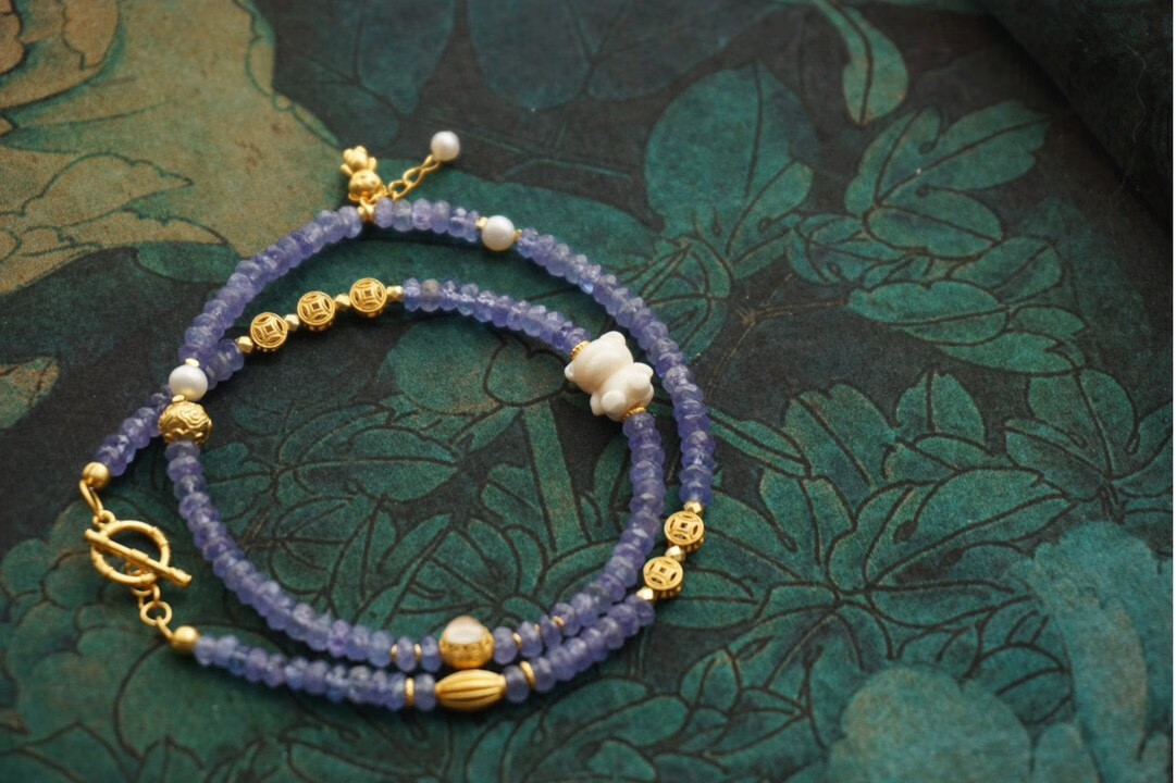 Chihuan natural tanzanite faceted double circle bracelet Mammoth Bear 925 silver white agate natural pearl silver gold-plated accessories
