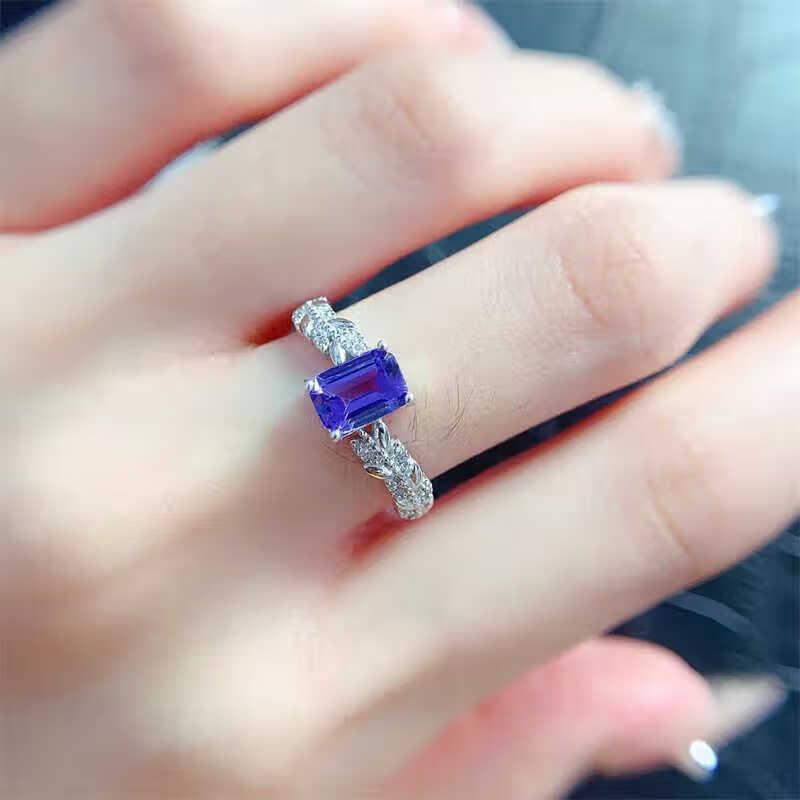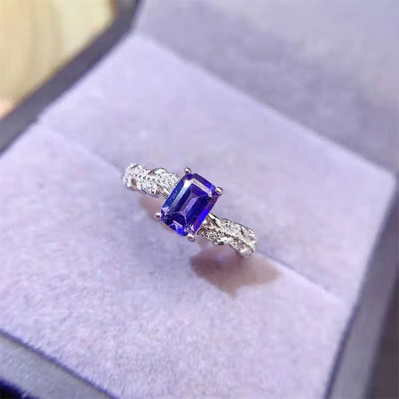 Chihuan natural tanzanite ring for women open 925 silver inlaid with rectangular blue gem ring light luxury jewelry fashion