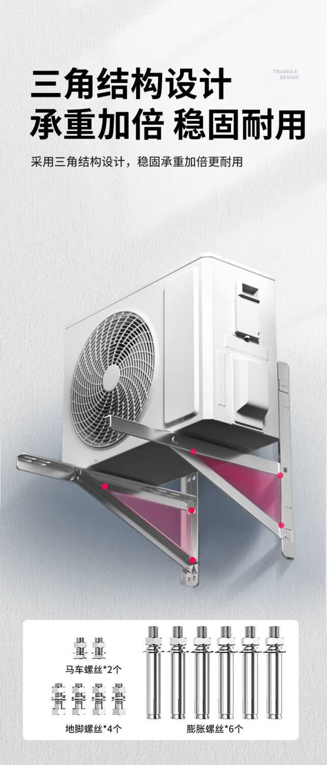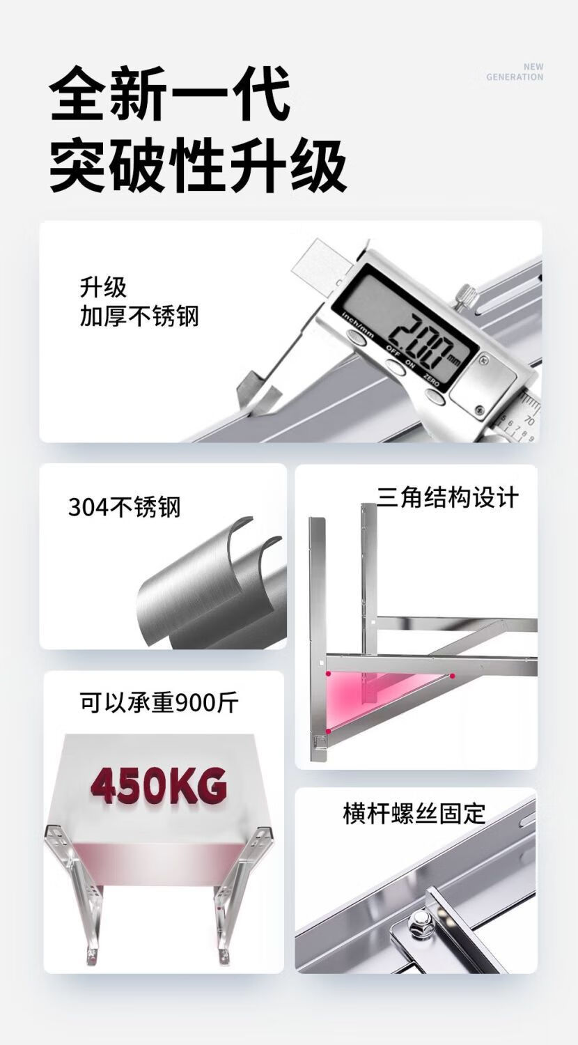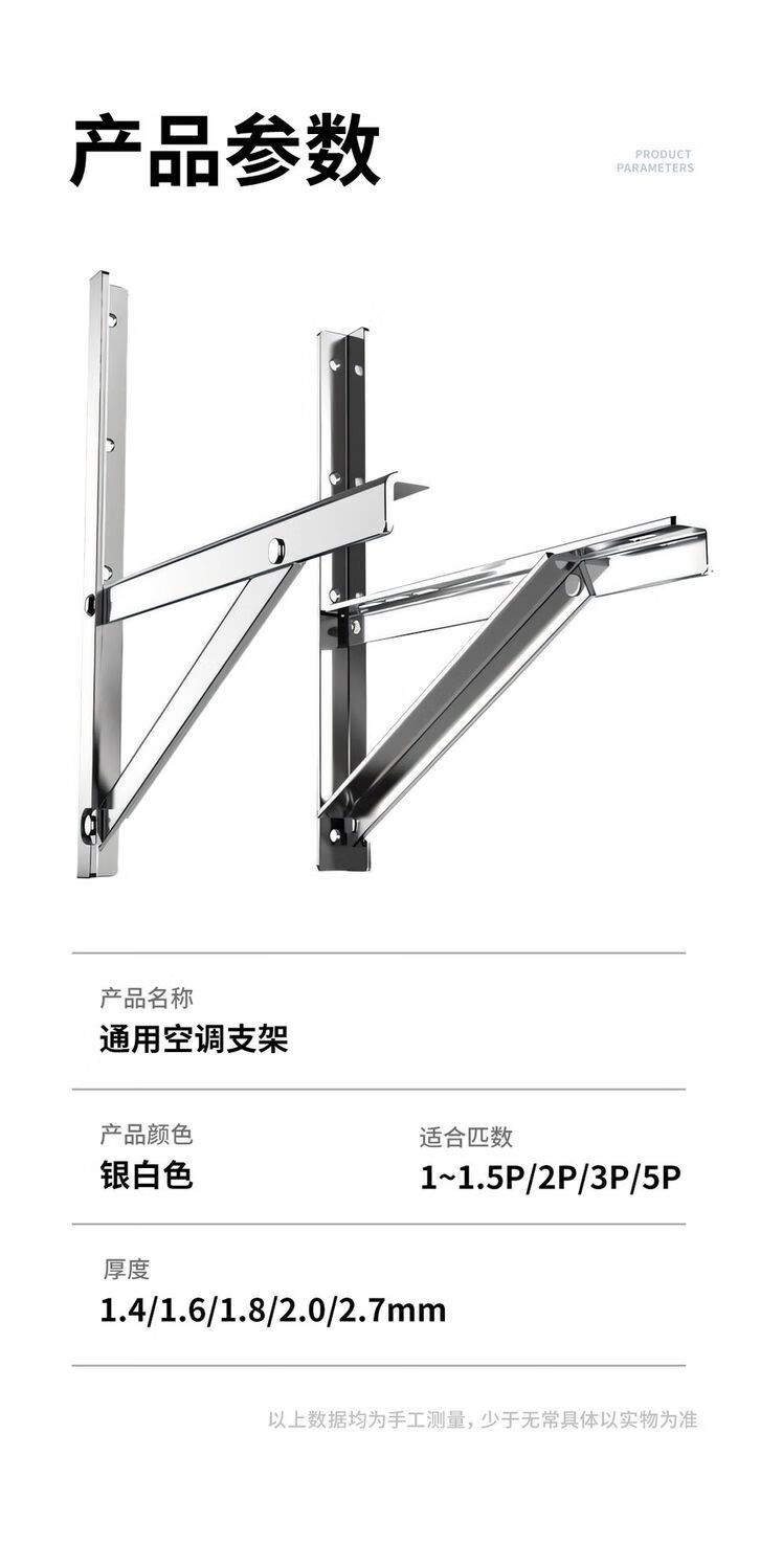 Panasonic thickened 304 stainless steel air conditioner external unit bracket Gree Universal 1.5/2/3/5 hp, free stainless steel mounting screws 2P air conditioner bracket thick 1.8MM load bearing 330KG