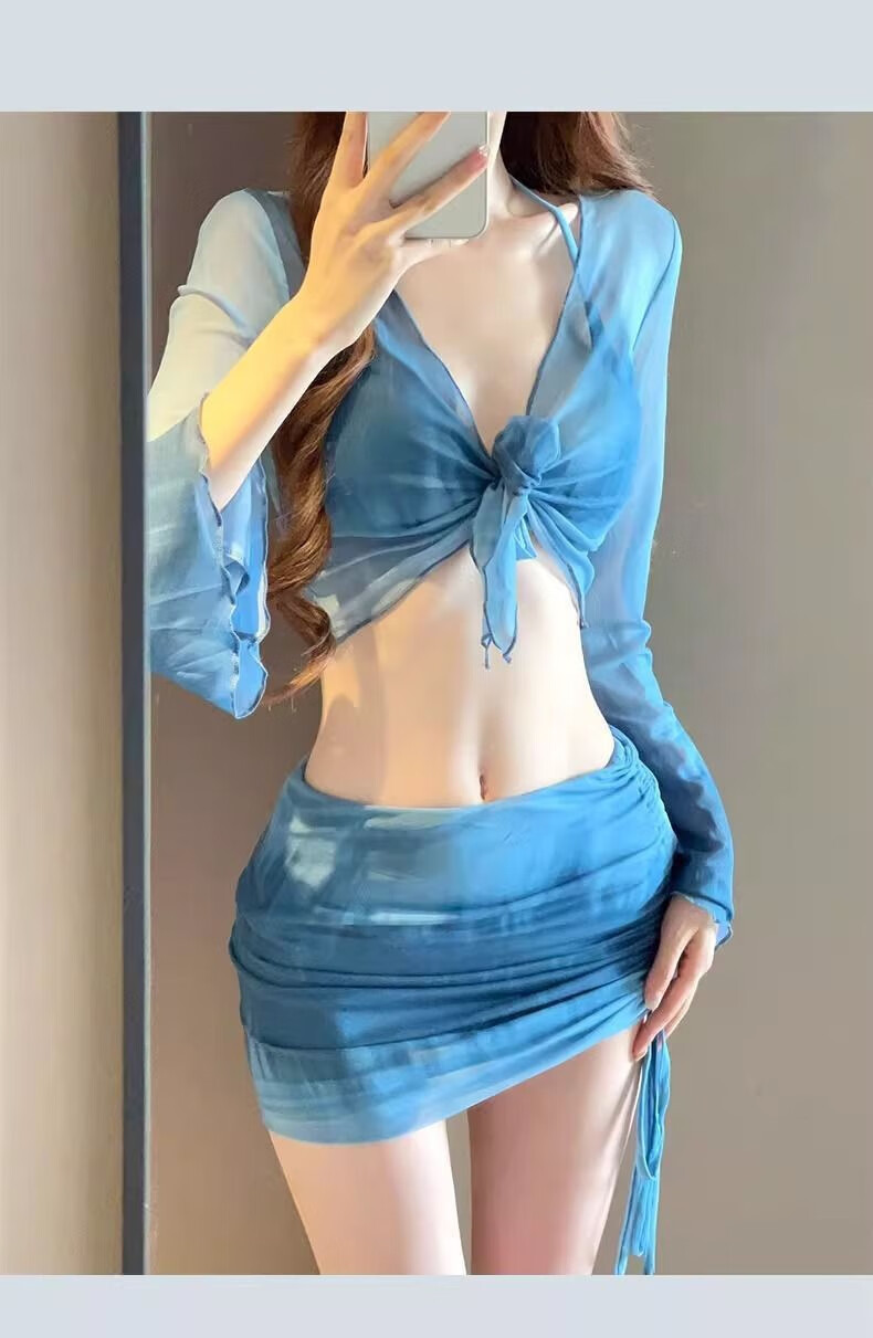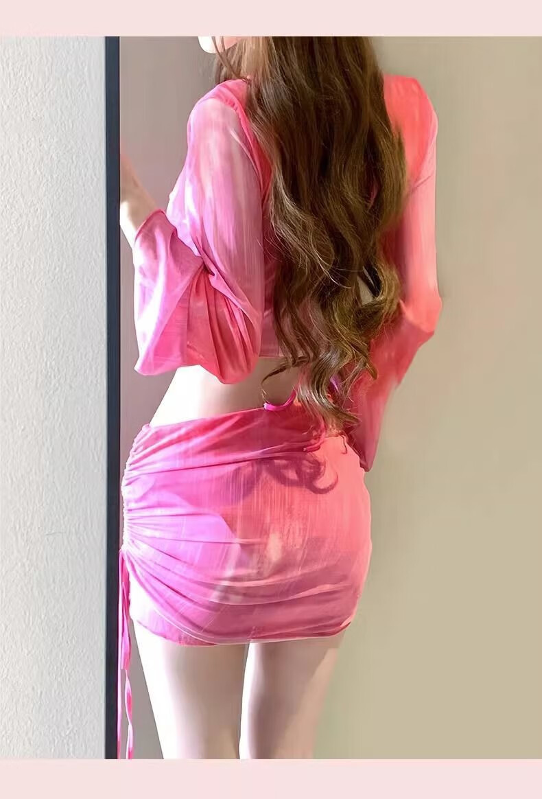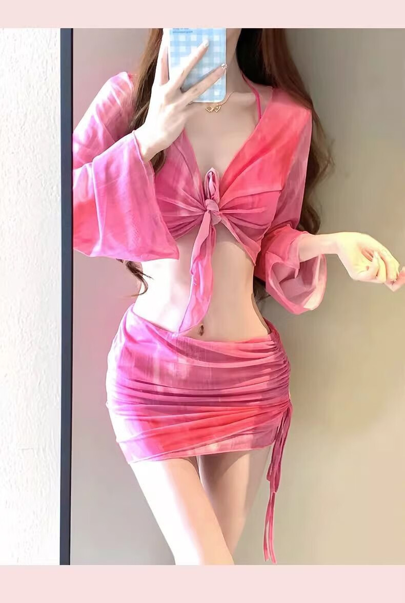 Yansitai Swimsuit Women's Bikini Beach Resort Atmosphere Four-piece Set Conservative and High-Level Split Sexy Swimsuit Hot Spring Fashion Upgraded Bikini Swimsuit (Rose Red) One Size (Recommended 85-115Jin Jin is equal to 0.5kg)