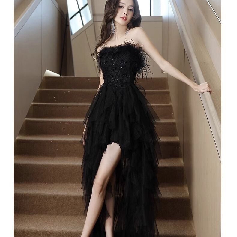 Cha Xiaoa Black Evening Dress 2025 New Style Banquet Celebrity Tube Top Dress Niche Birthday Adult Ceremony Black L