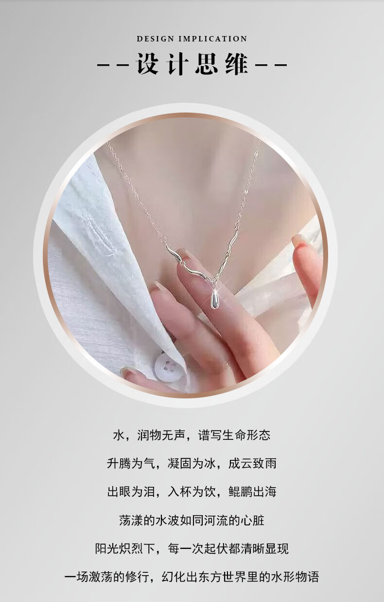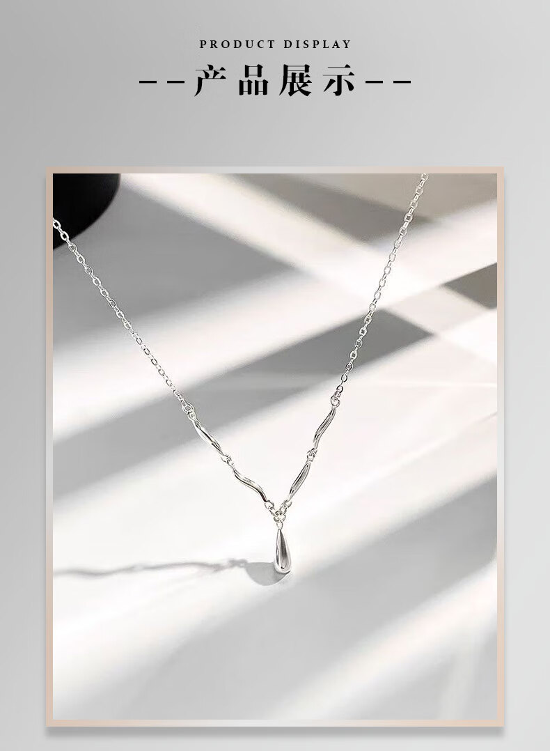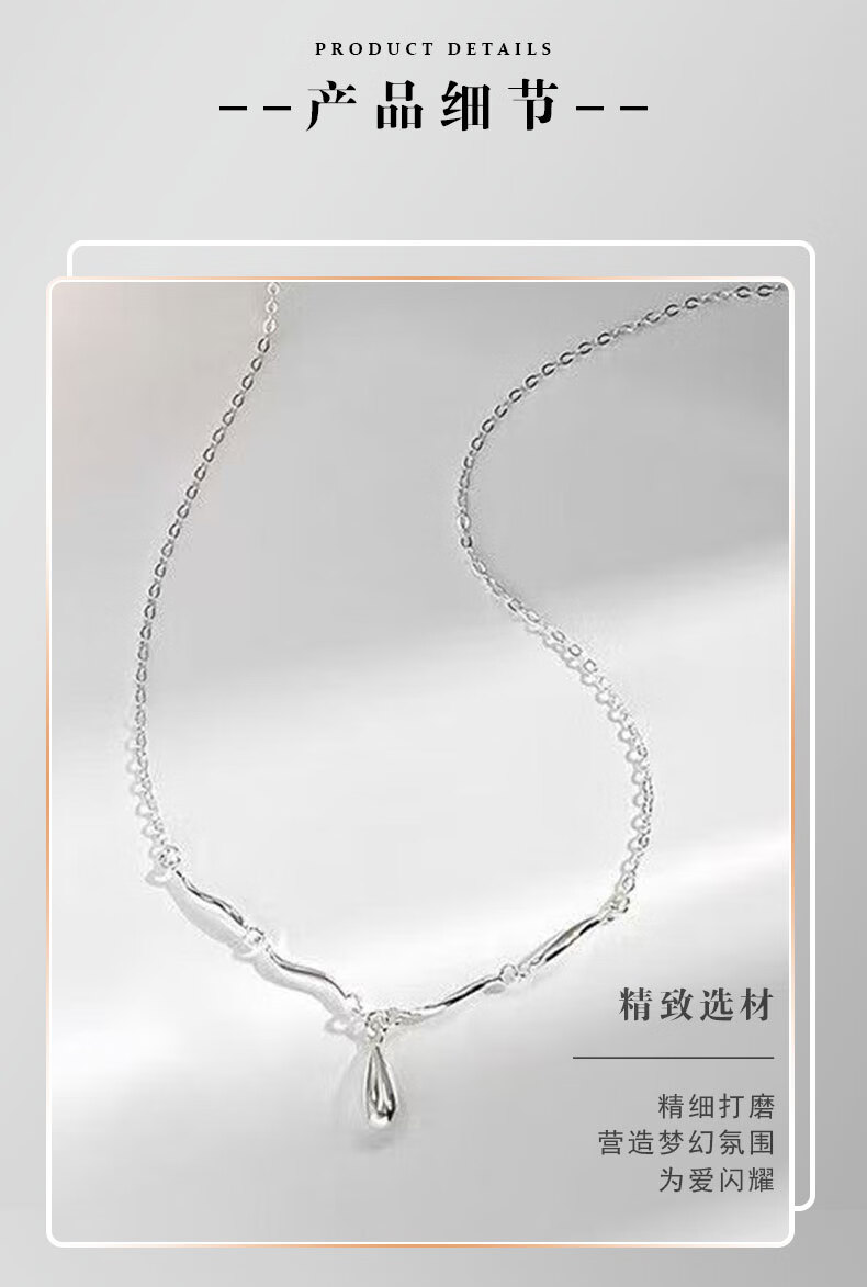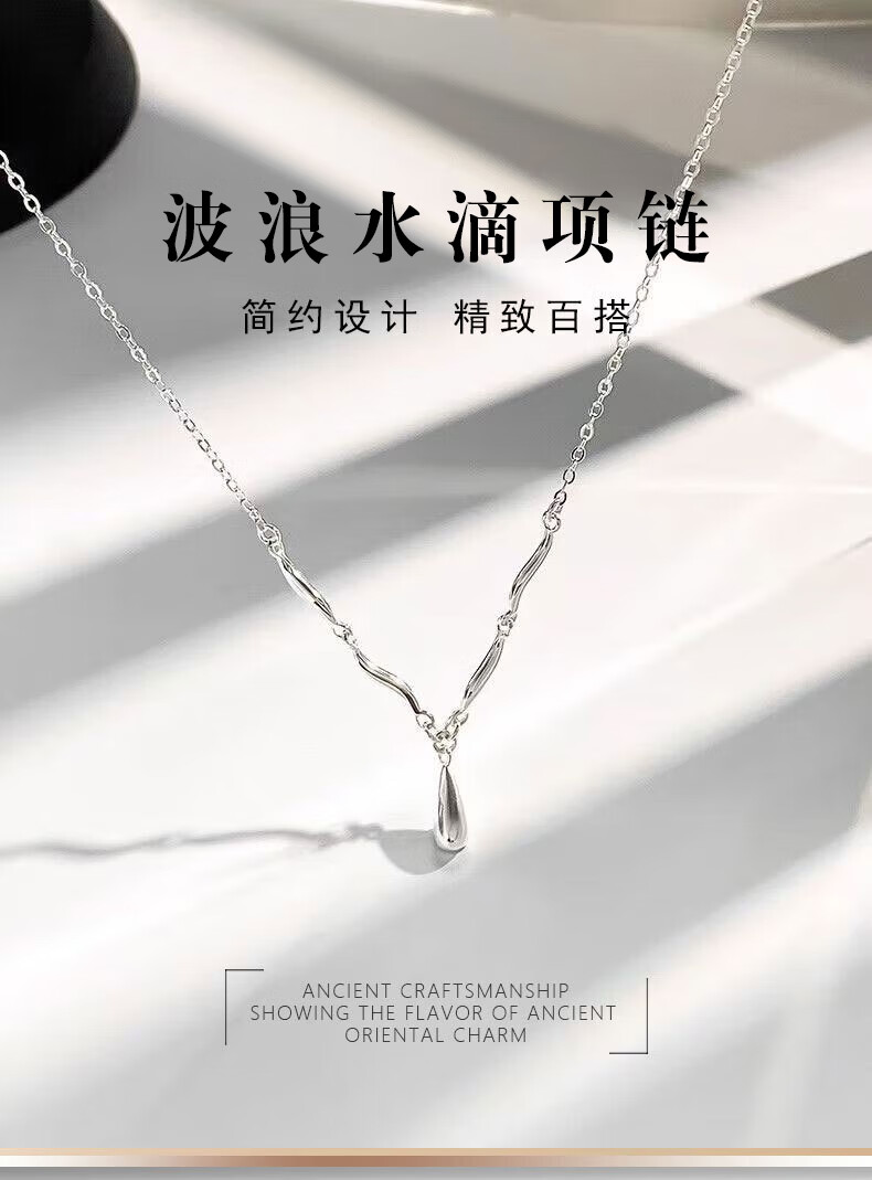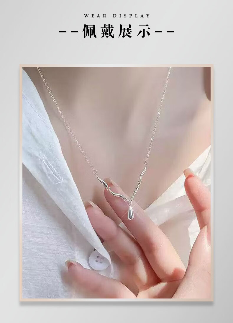 China Gold (CHINA GOLD) S925 silver wavy water drop necklace women's light luxury niche high-end pendant Valentine's Day birthday gift for girlfriend, today/next day delivery wavy water drop necklace