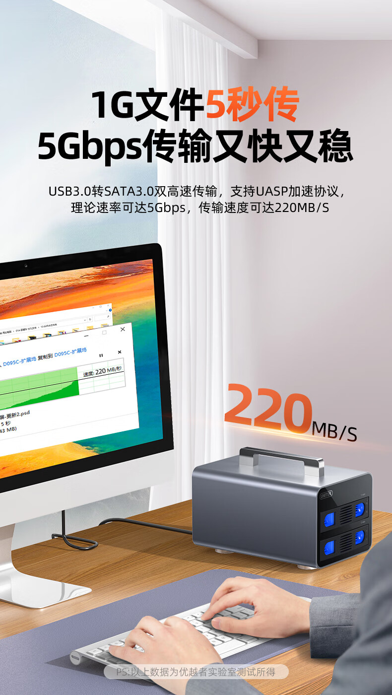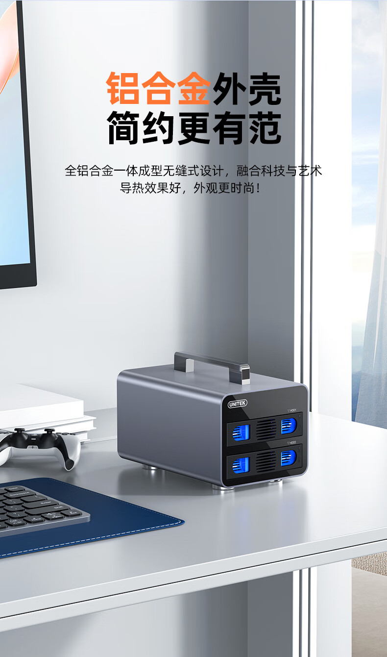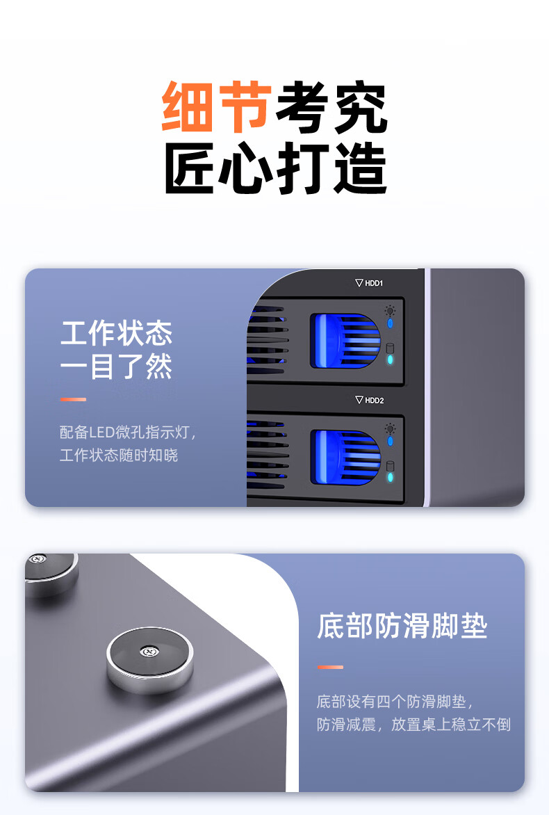 Gabinete de disco duro de doble bahía superior Gabinete de matriz de discos SSD mecánico serial SATA externo Bastidor de expansión de unidad de estado sólido Gabinete de almacenamiento de disco duro de múltiples bahías universal de 3,5/2,5 pulgadas Bahía doble portátil totalmente de aluminio con RAID