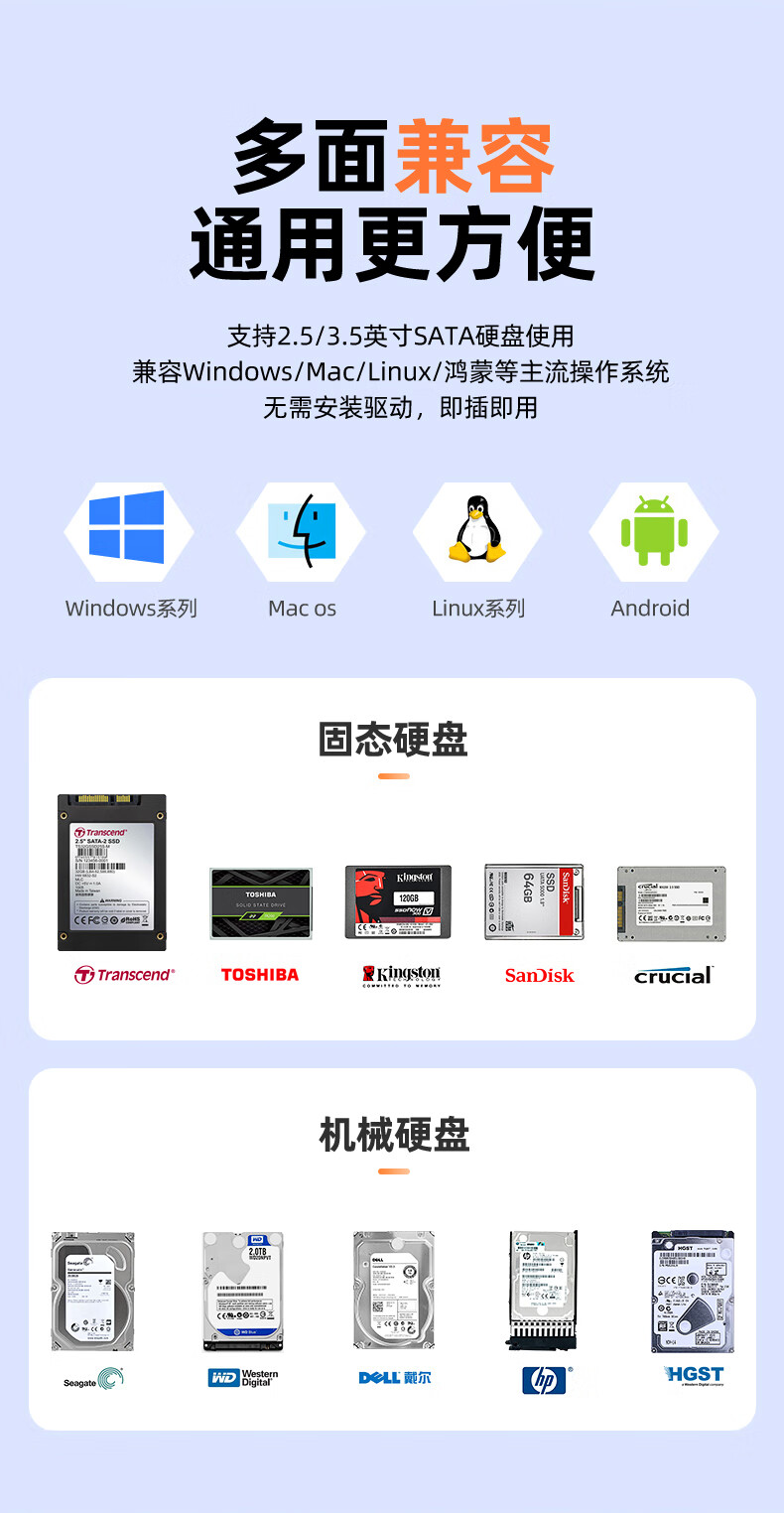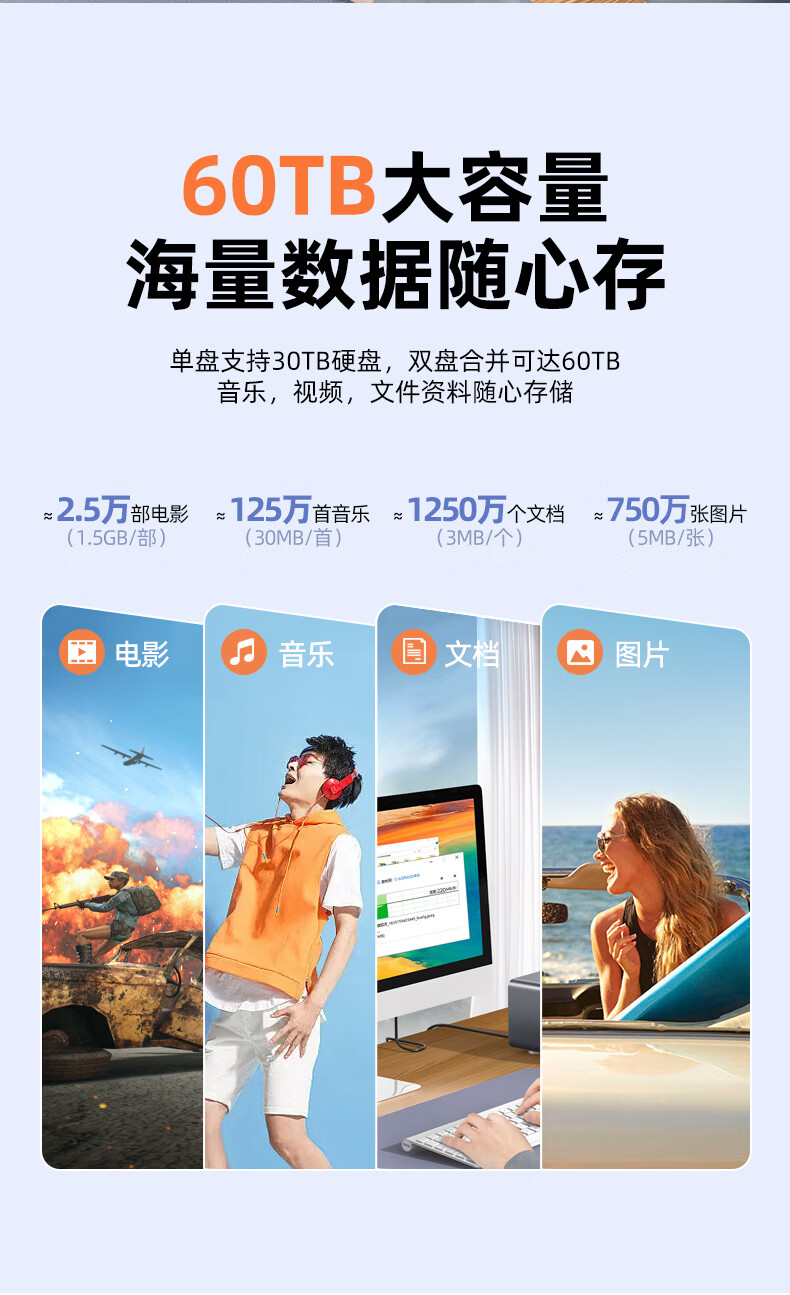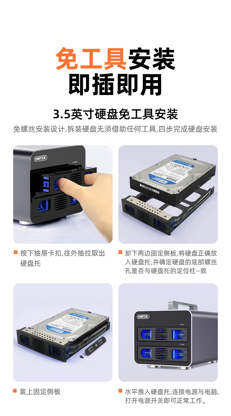 Gabinete de disco duro de doble bahía superior Gabinete de matriz de discos SSD mecánico serial SATA externo Bastidor de expansión de unidad de estado sólido Gabinete de almacenamiento de disco duro de múltiples bahías universal de 3,5/2,5 pulgadas Bahía doble portátil totalmente de aluminio con RAID