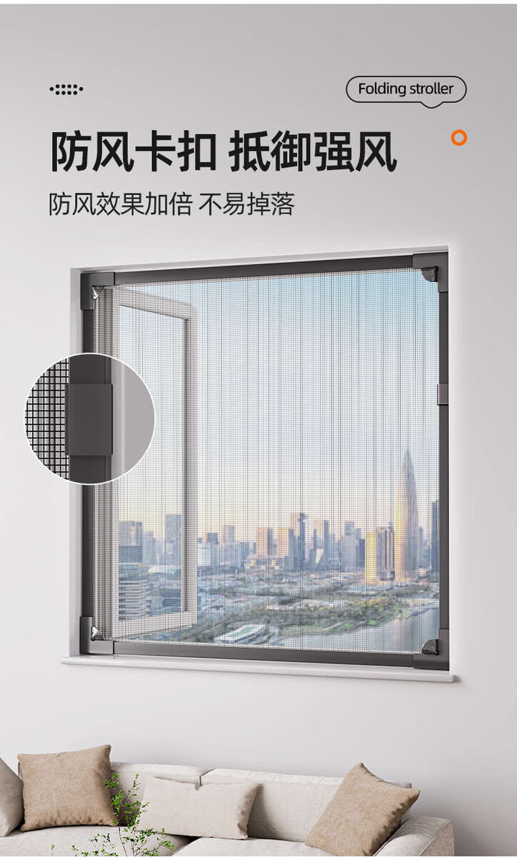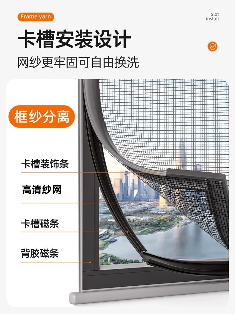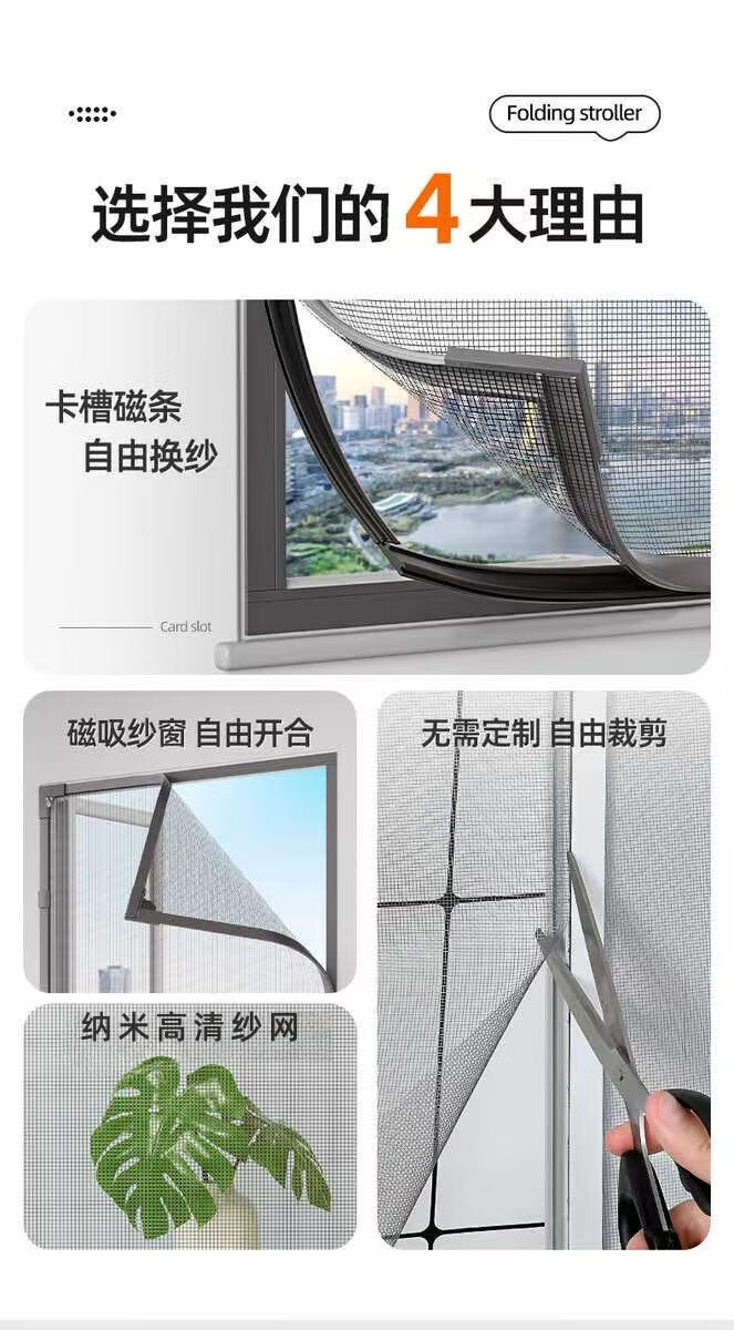 Yanbei high-transparency self-adhesive magnetic screen window anti-mosquito self-installed Velcro window curtain no punching sliding window opening gray frame + ultra-clear nano PE mesh + small window 60*130