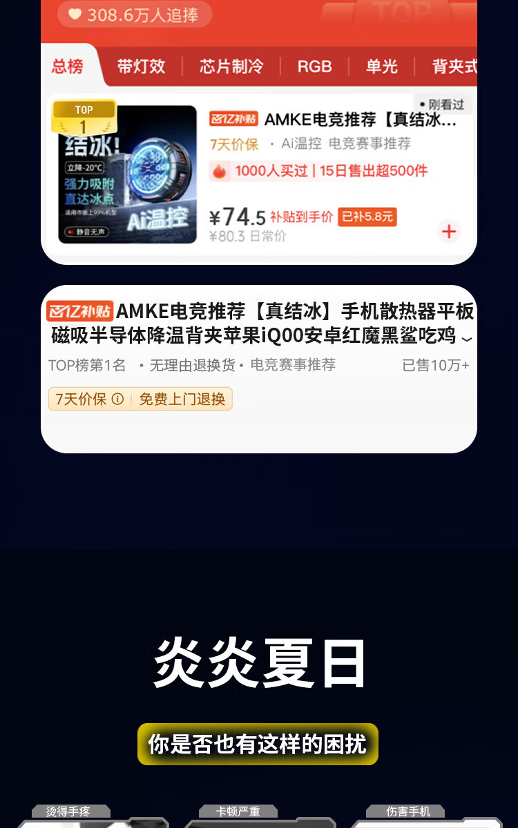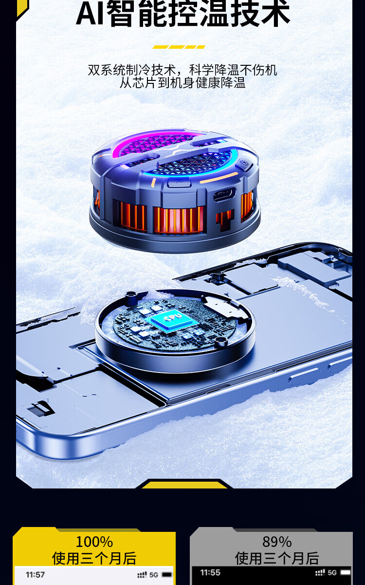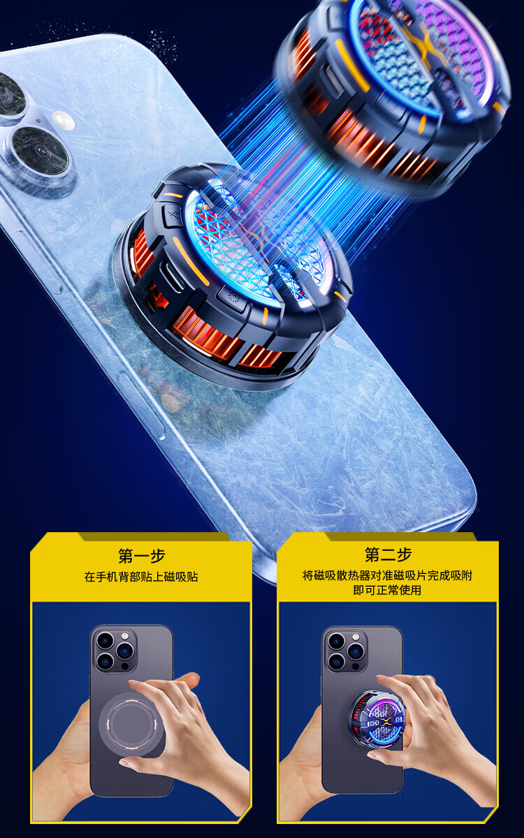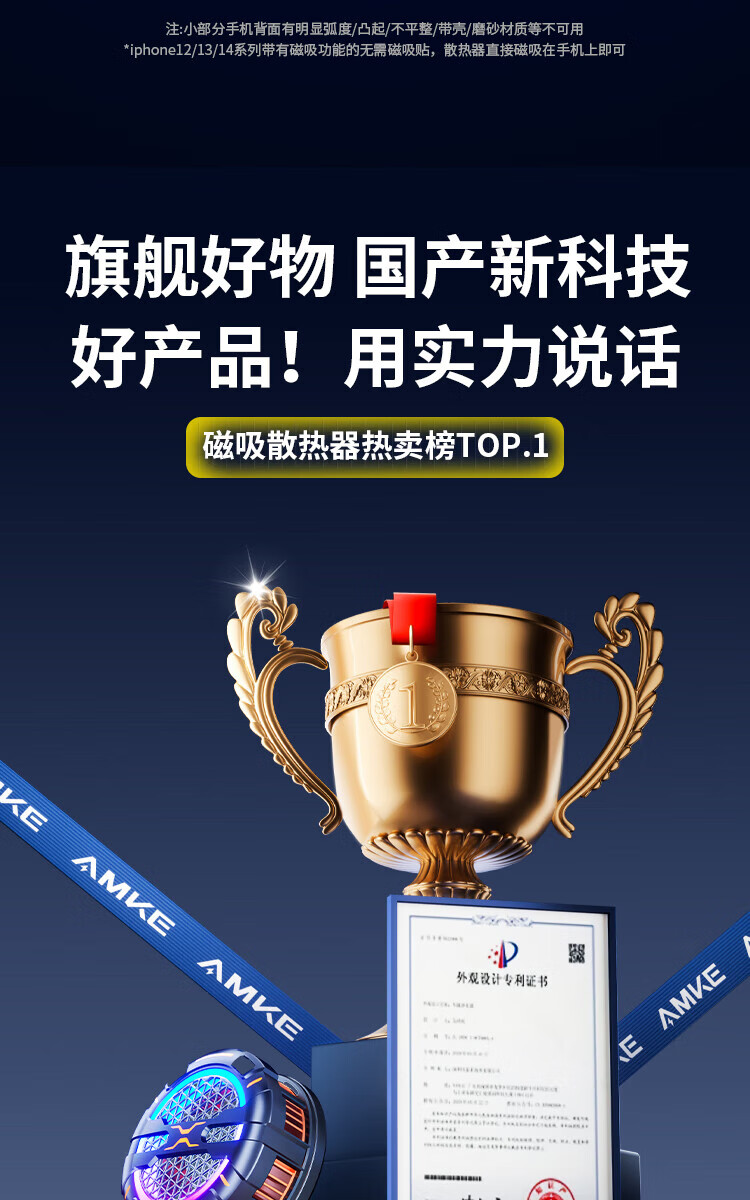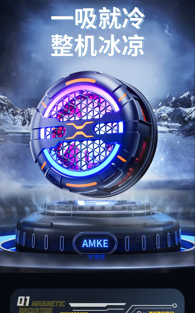 AMKE E-Sports Recommendation Really Freezing Mobile Phone Radiator Tablet Magnetic Semiconductor Cooling Back Clip Apple iQOO Android Red Devils Black Shark Chicken King Genshin Impact Mobile Game Peripherals Digital Display Freezing Model Multi-level Adjustment丨Freezing Point Refrigeration丨Back Clip