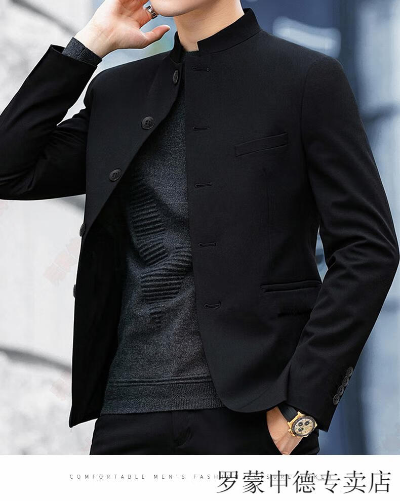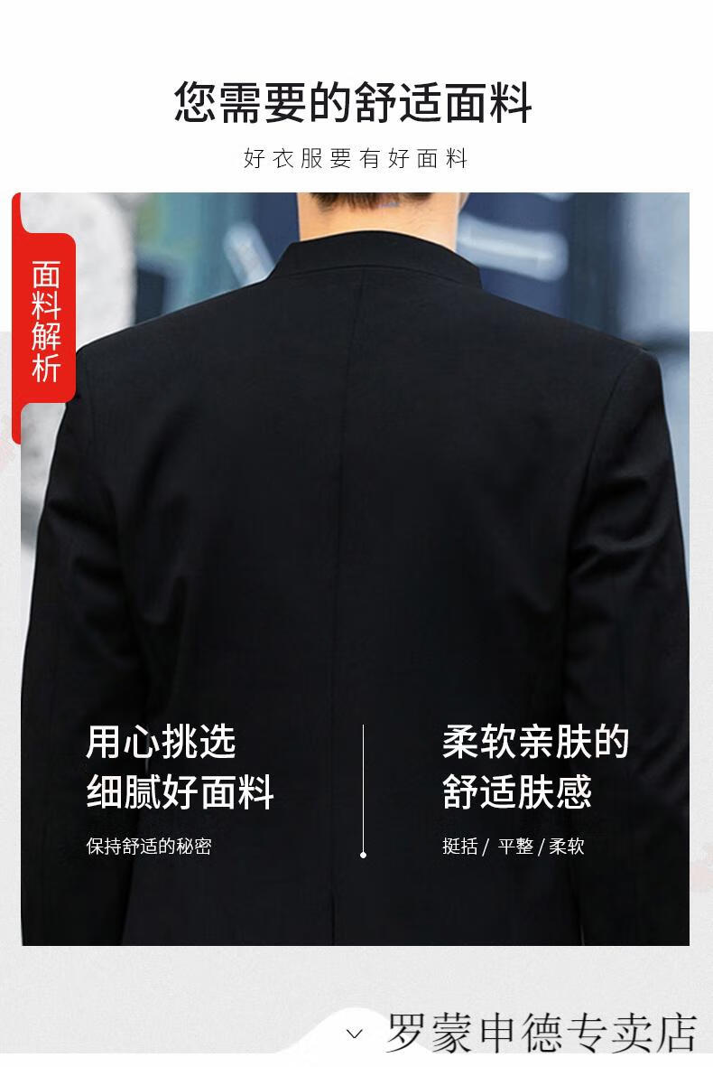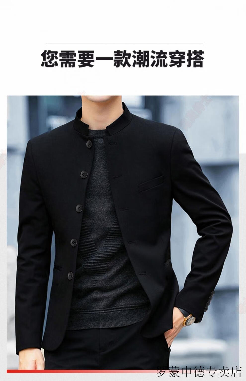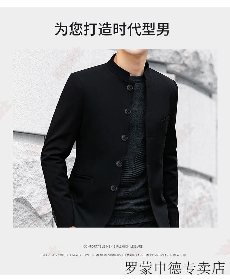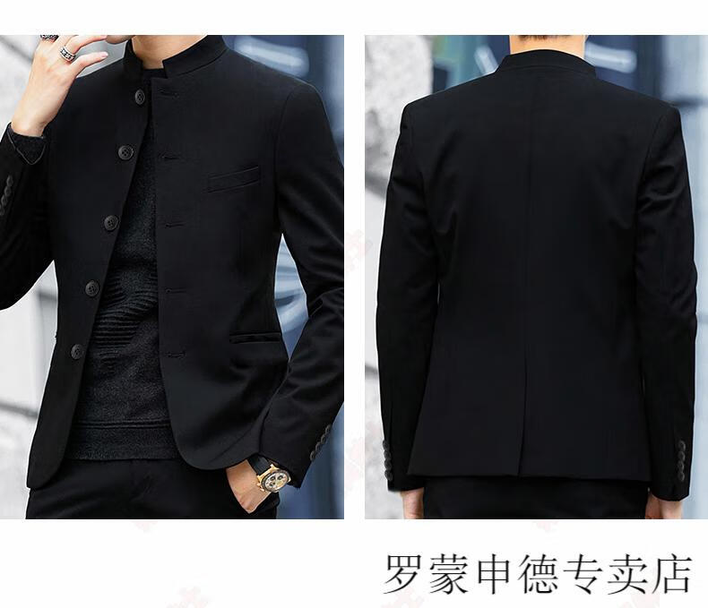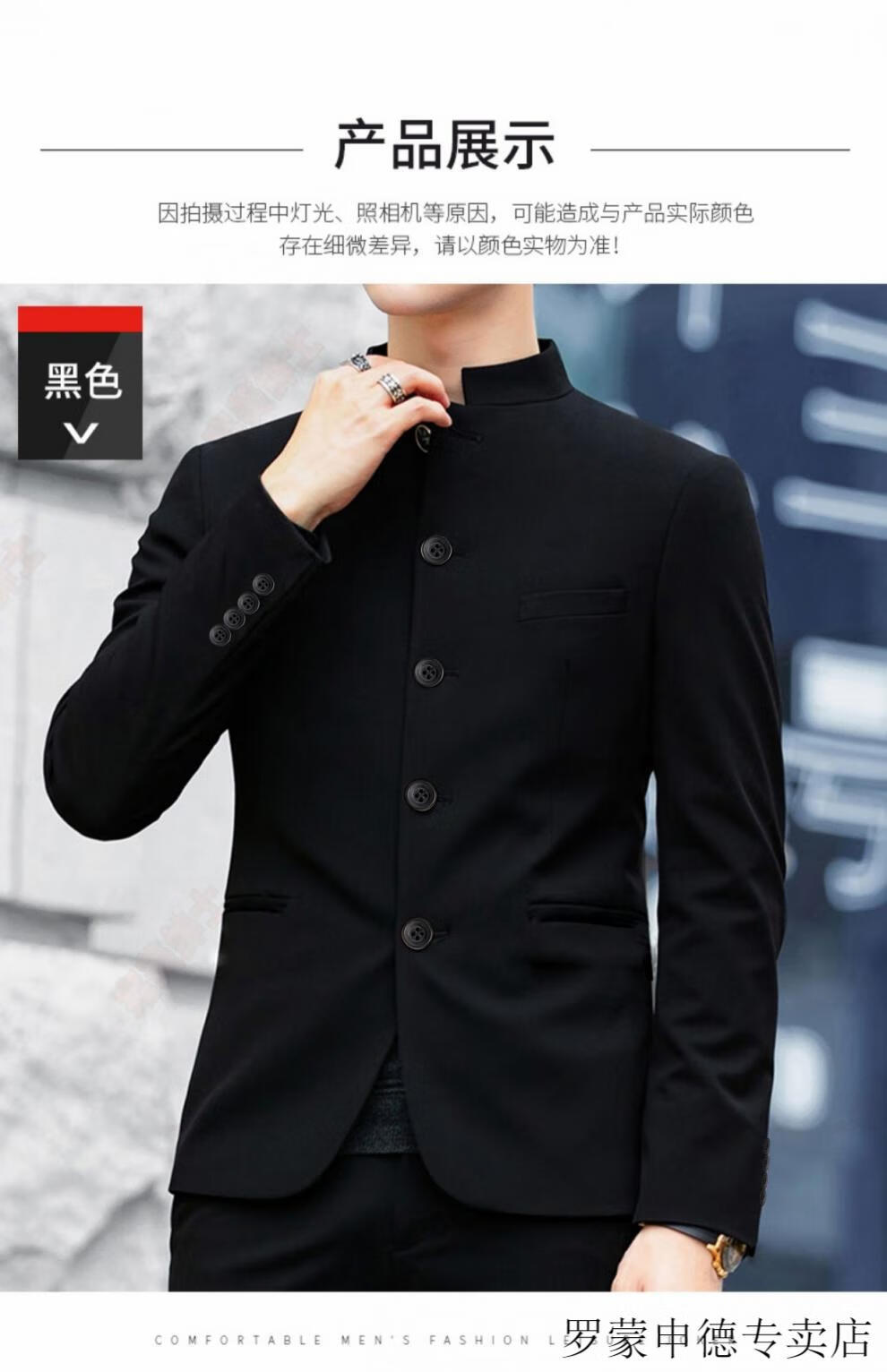 ROMON high-end brand Mao suit young people new Chinese style men's Republic of China stand collar suit jacket men's suit large size trend Mao suit black trousers 2XL 155-170Jin Jin equals 0.5 kg