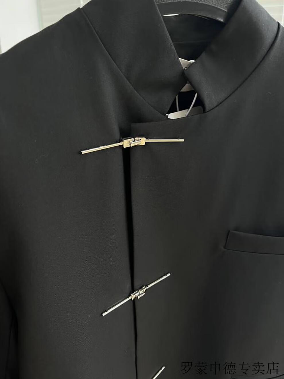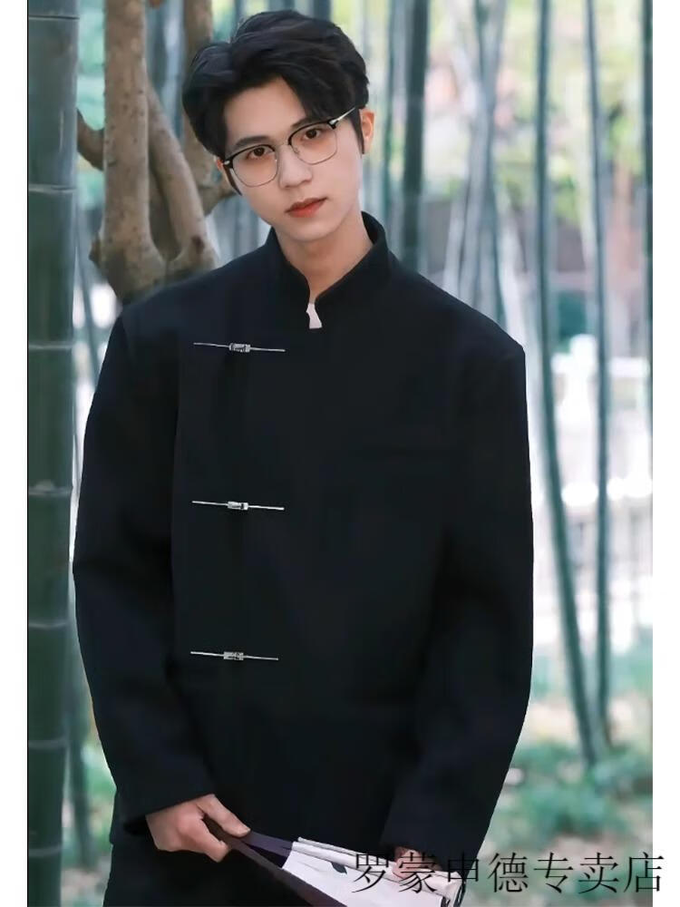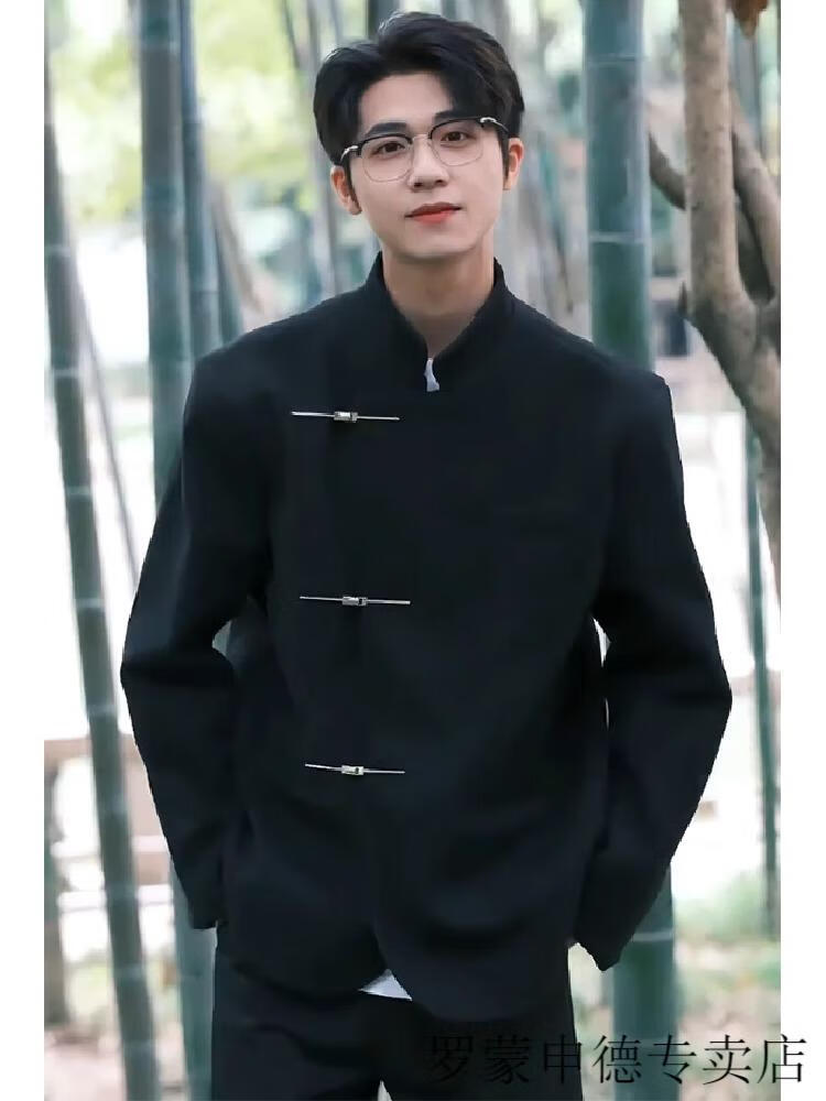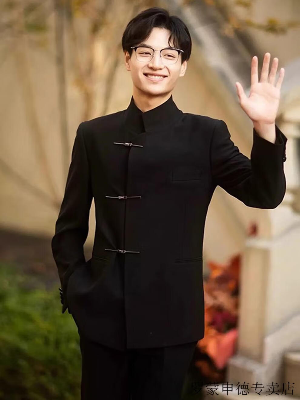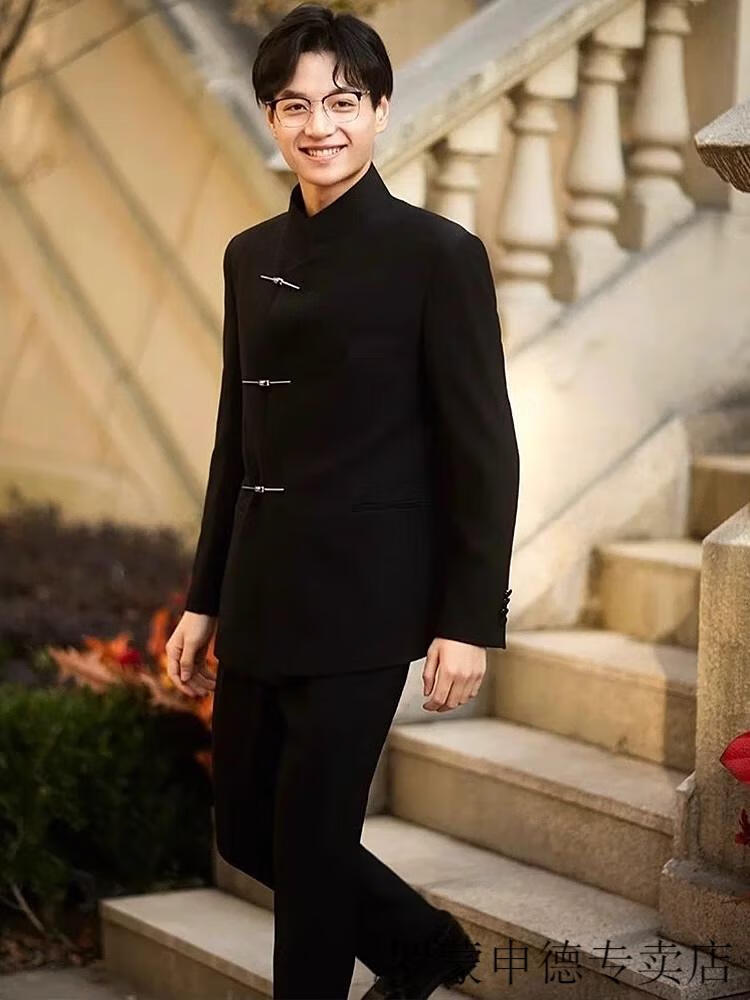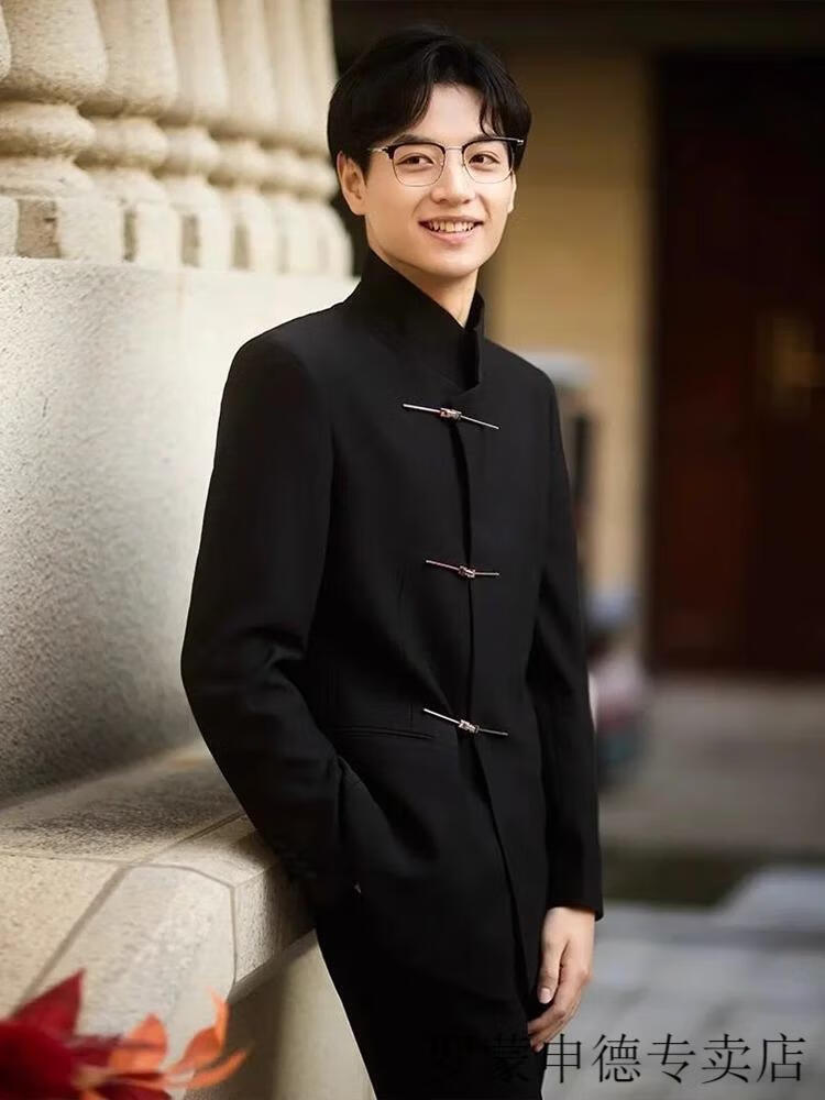 ROMON New Chinese-style Chinese tunic suit, high-end stand-up collar suit, men's spring and autumn wedding and engagement suit jacket, black, high quality, M 100-120Jin Jin equals 0.5 kg