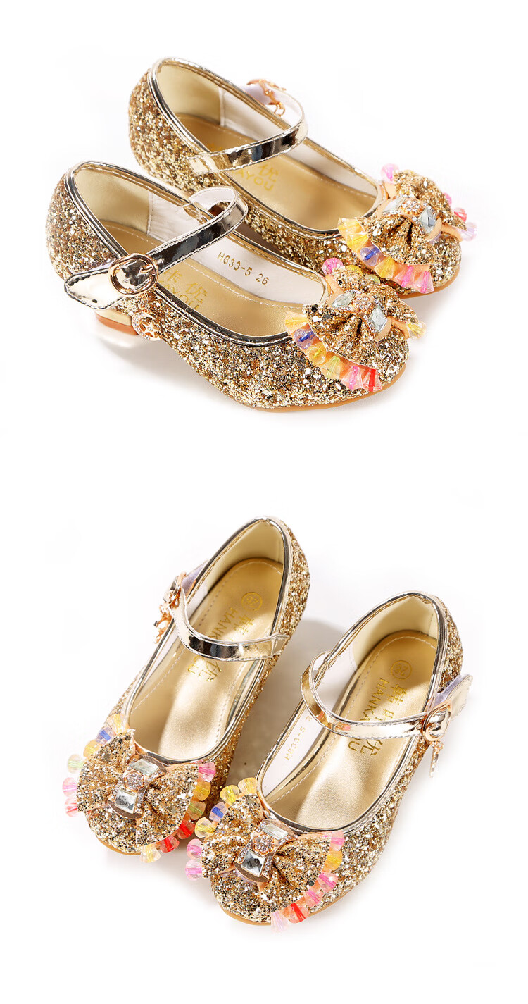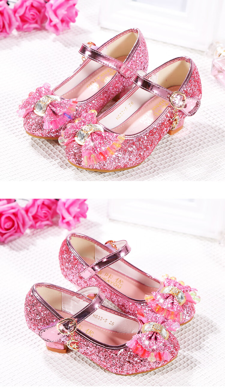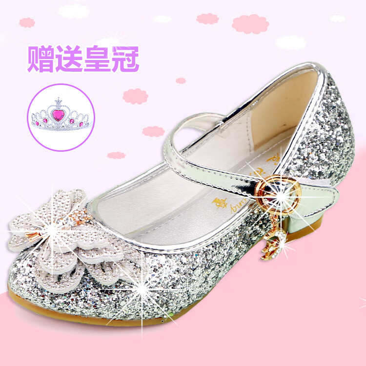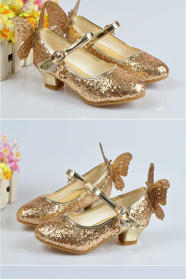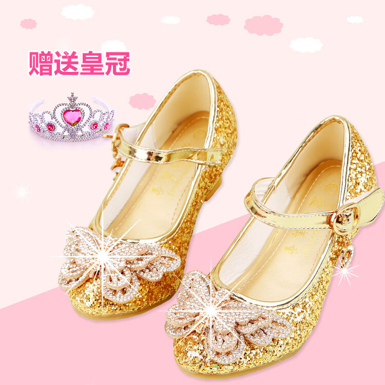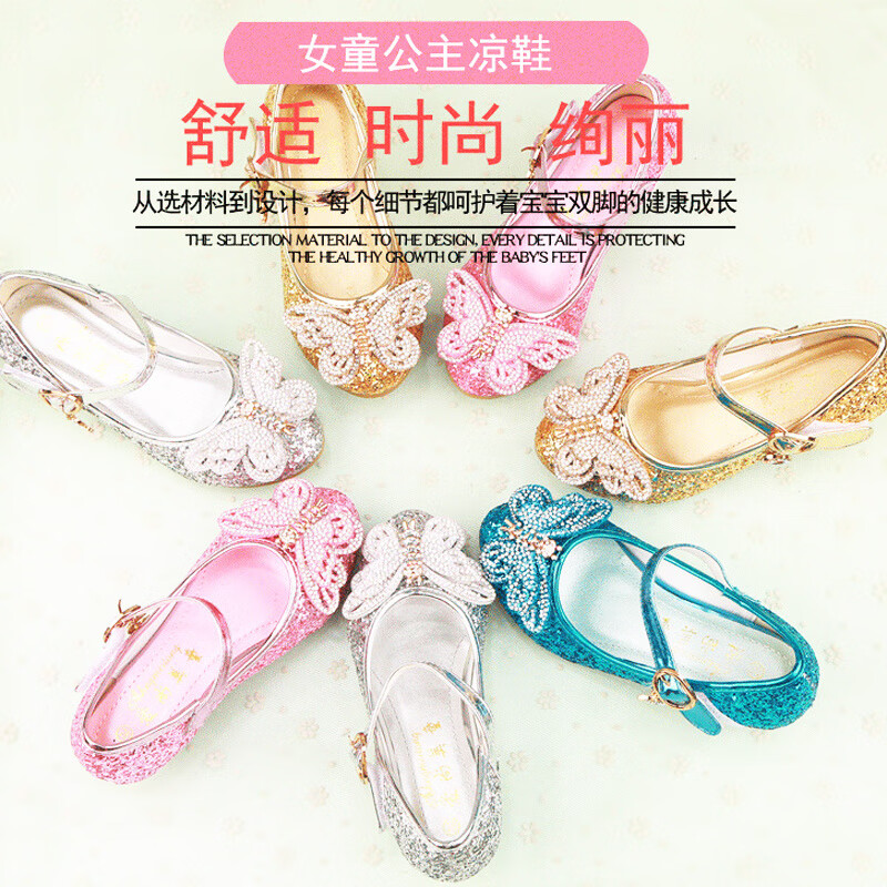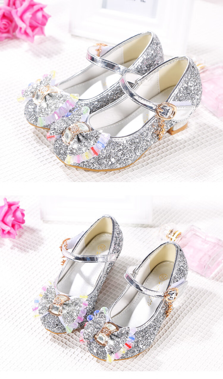 FANCYCHIC New Plus Size Girls High Heels Crystal Performance Leather Shoes Children's High Heels Student Single Shoes Elsa Princess Shoes New Back Butterfly 322-7 Blue 35 Inner Length 22cm
