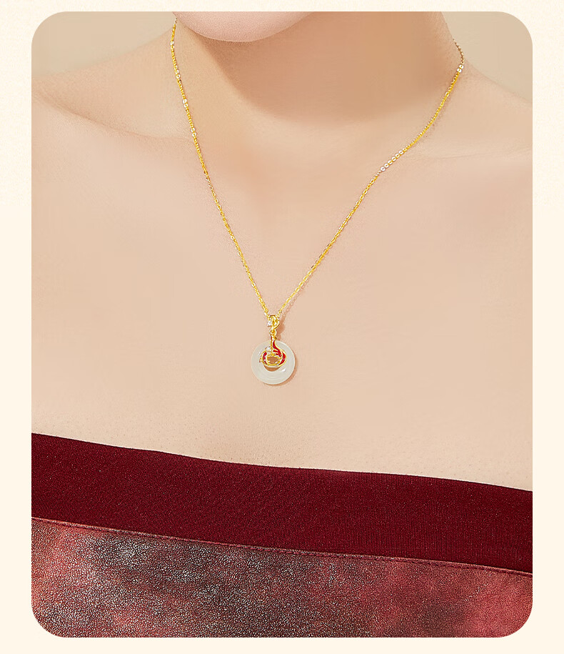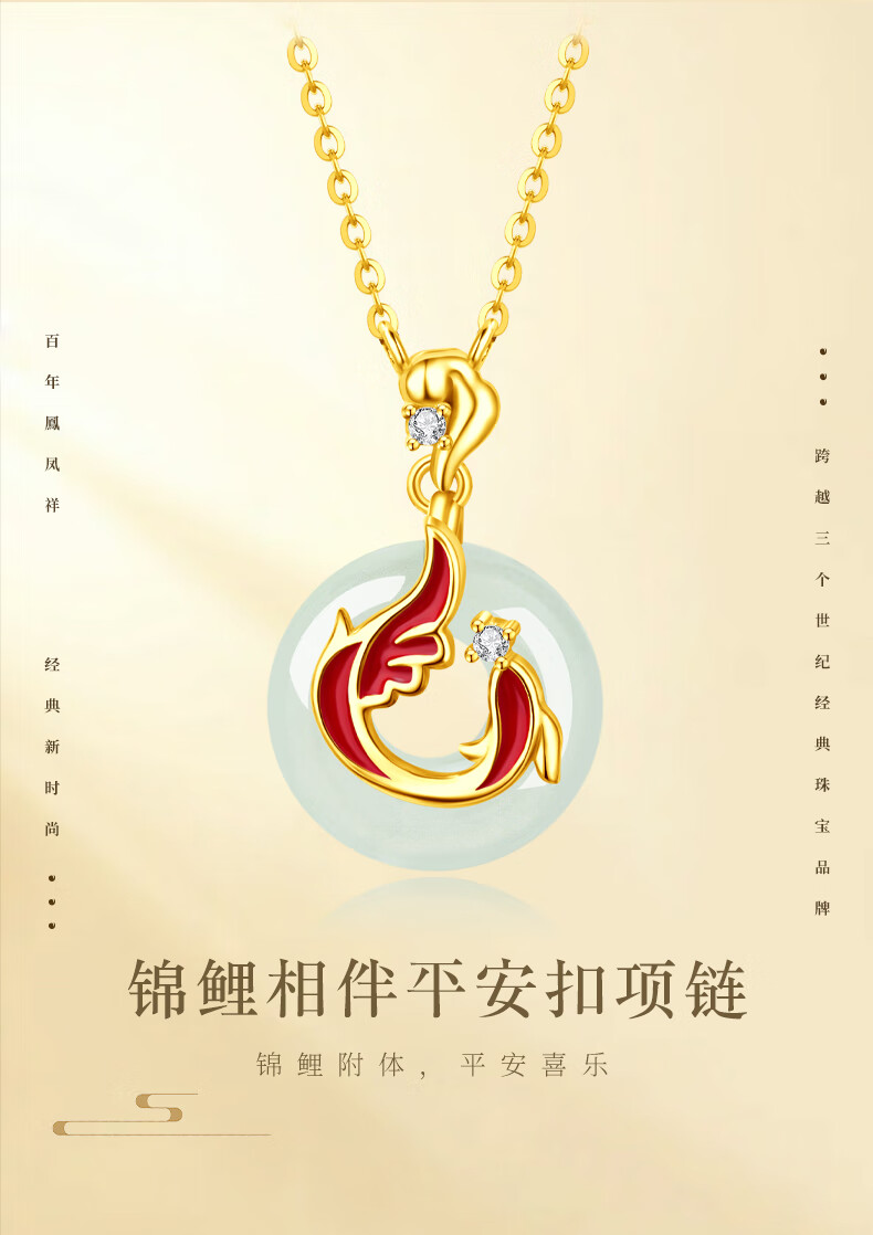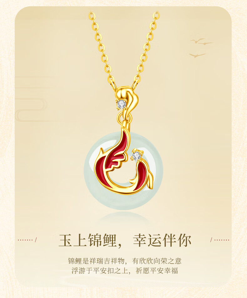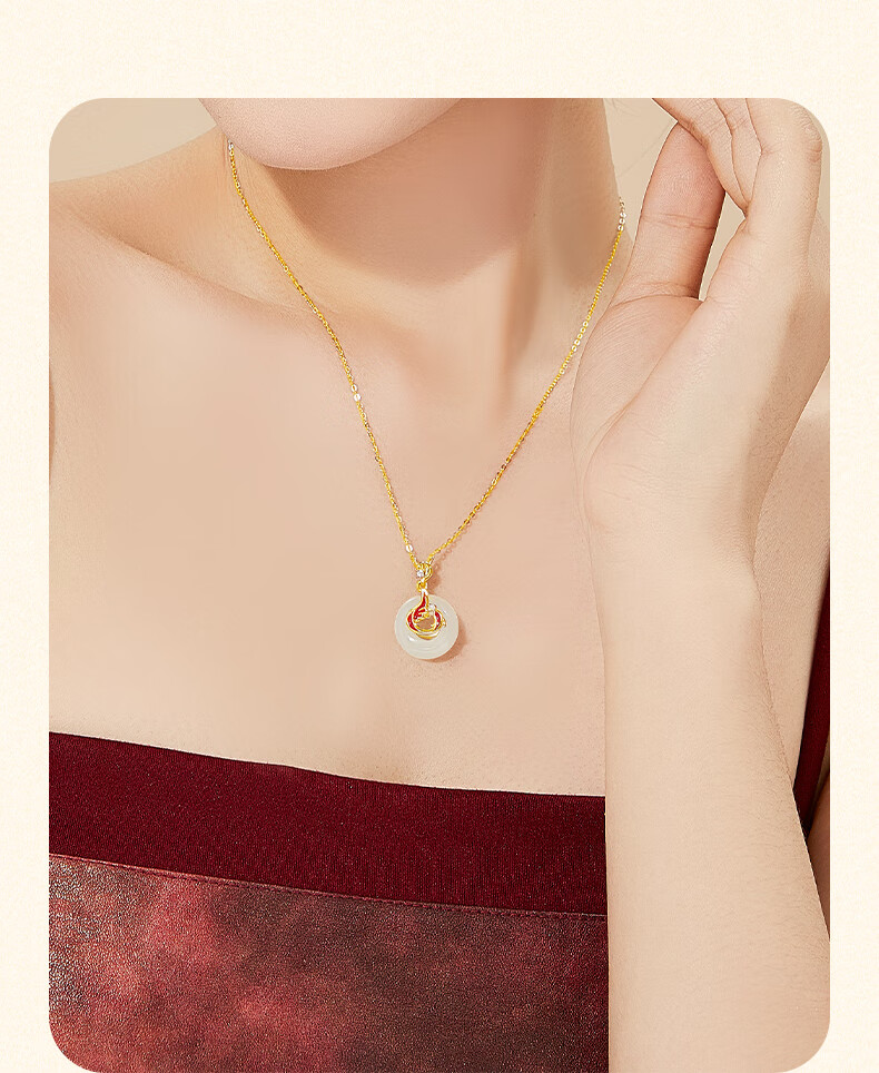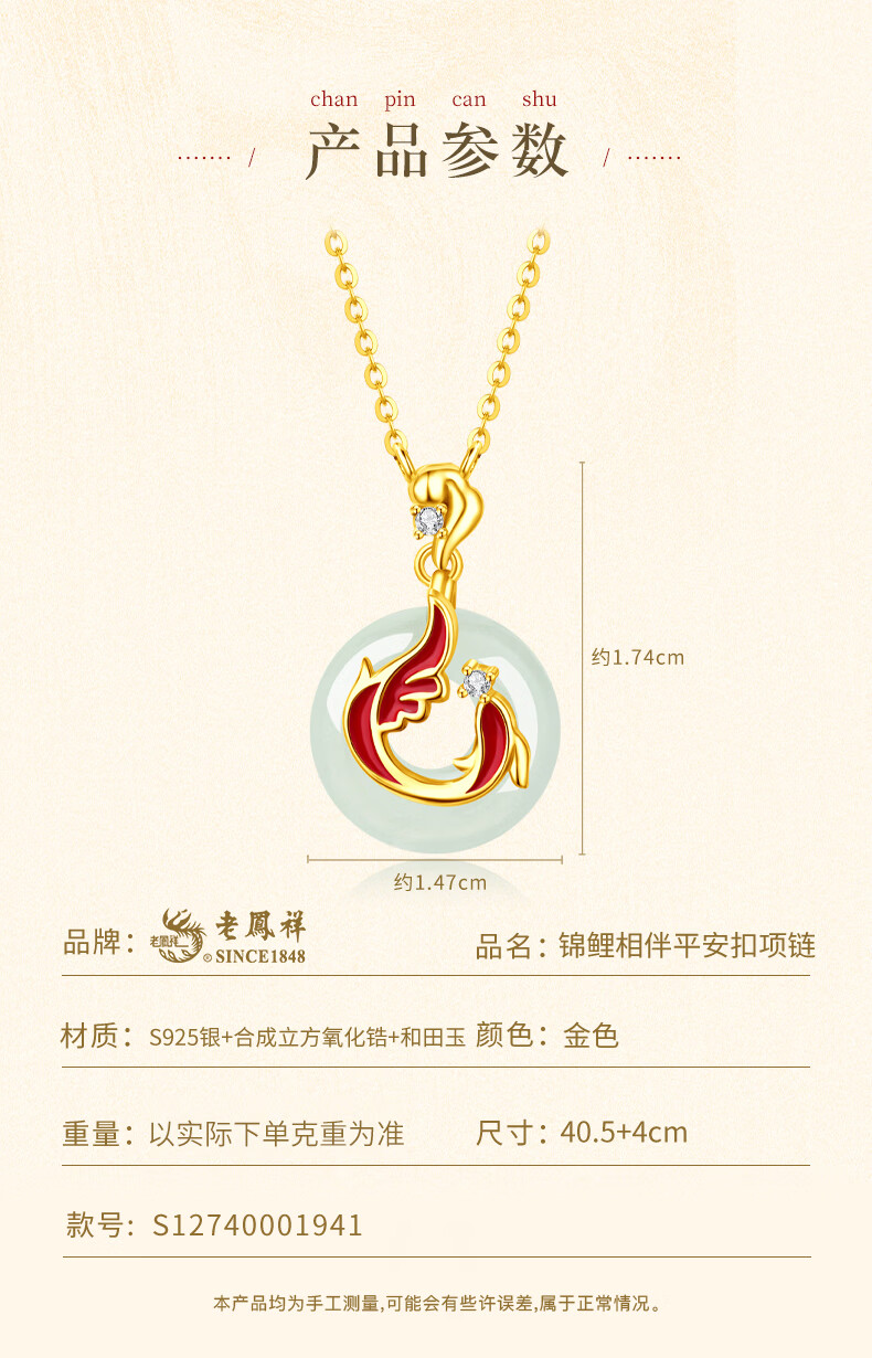 Lao Fengxiang koi safety buckle necklace for women sterling silver Hetian jade pendant jewelry anniversary birthday gift for girlfriend and wife koi safety buckle* local warehouse/delivered nearby