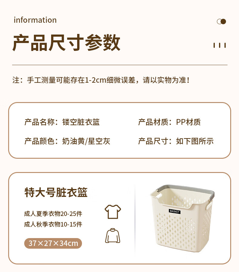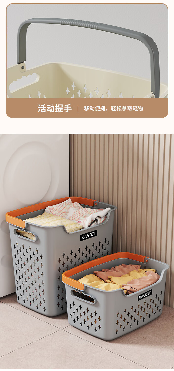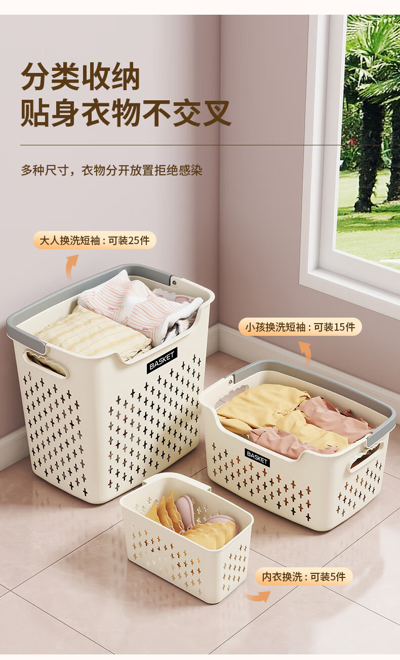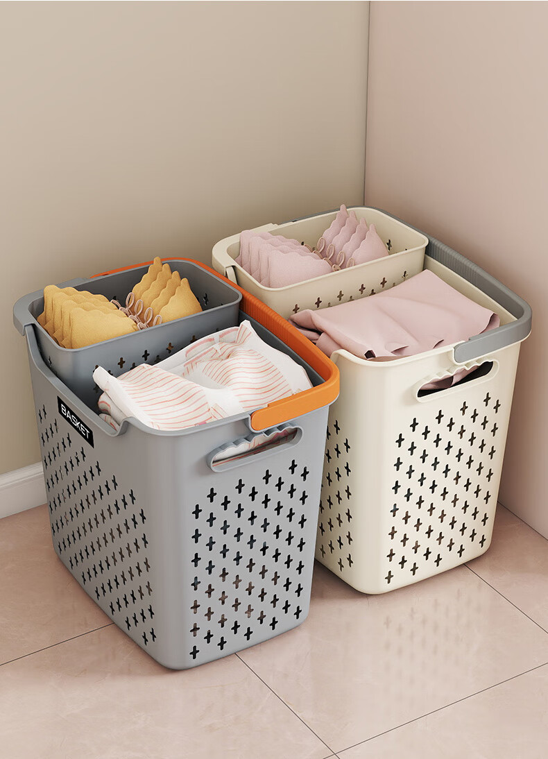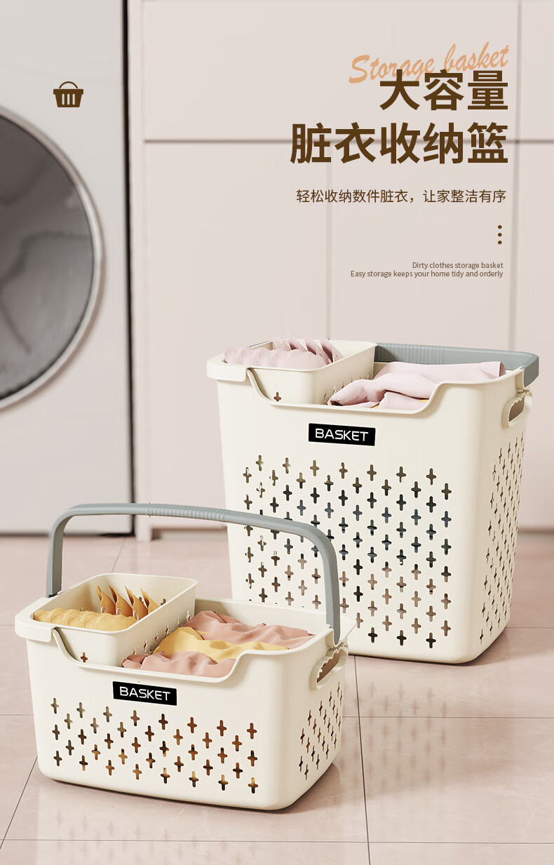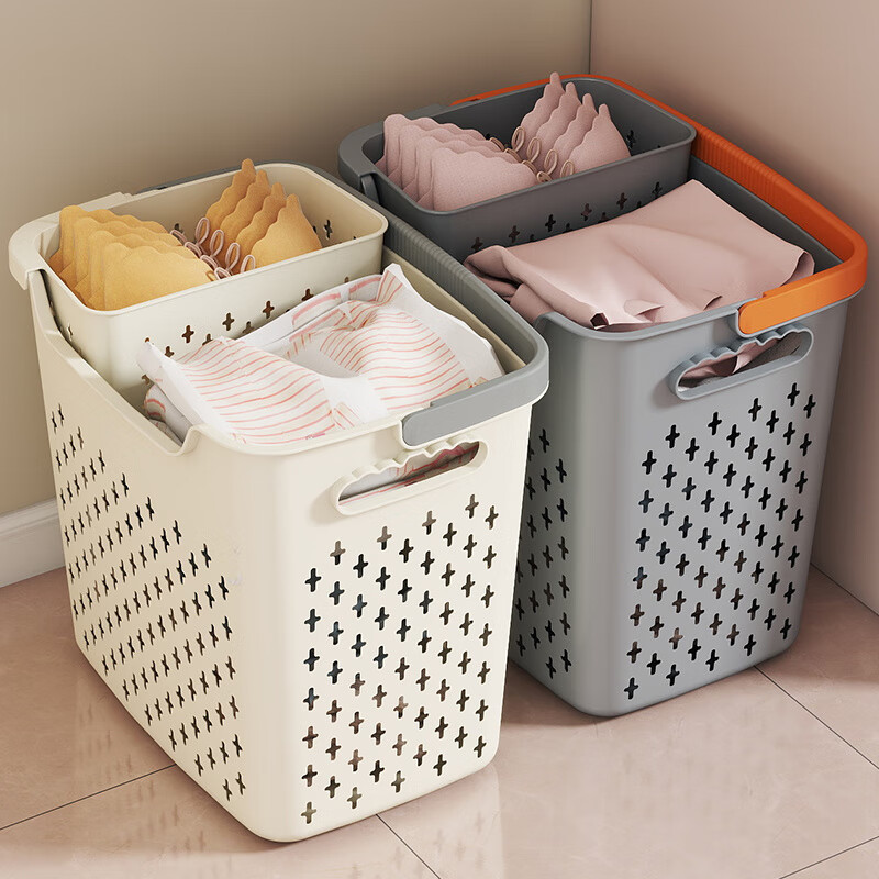 New dirty clothes basket, dirty clothes storage basket, bathroom laundry storage bucket, household dormitory clothes dirty clothes basket, bath basket, cream yellow, thickened model, small basket, ordinary model