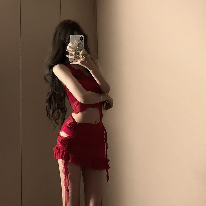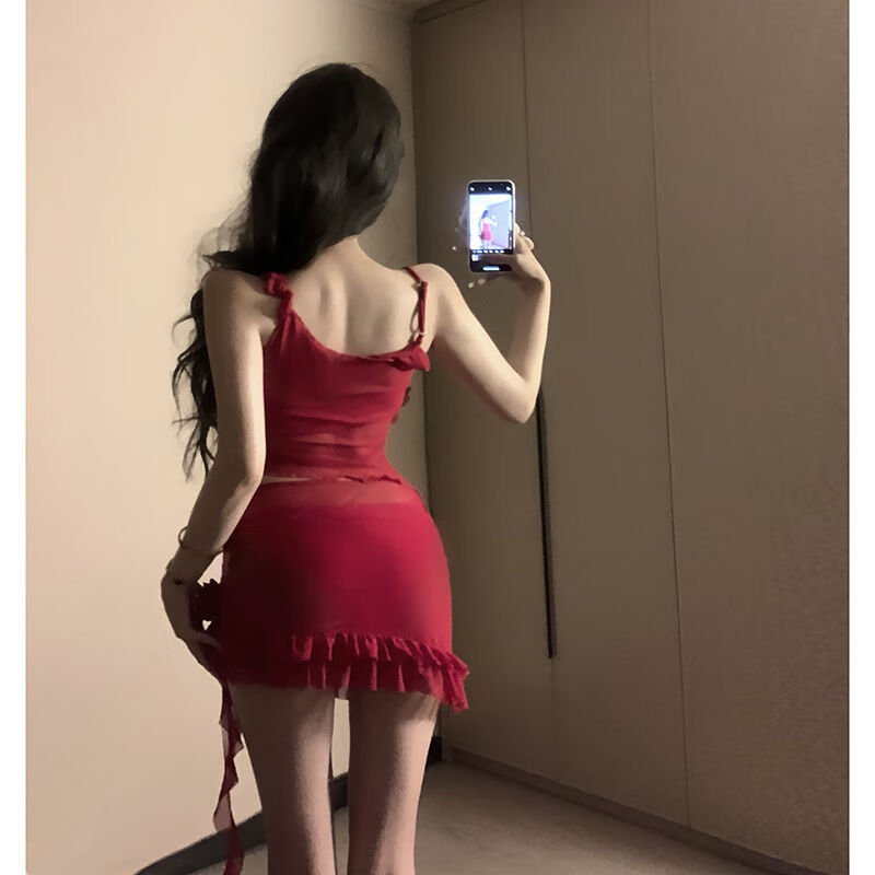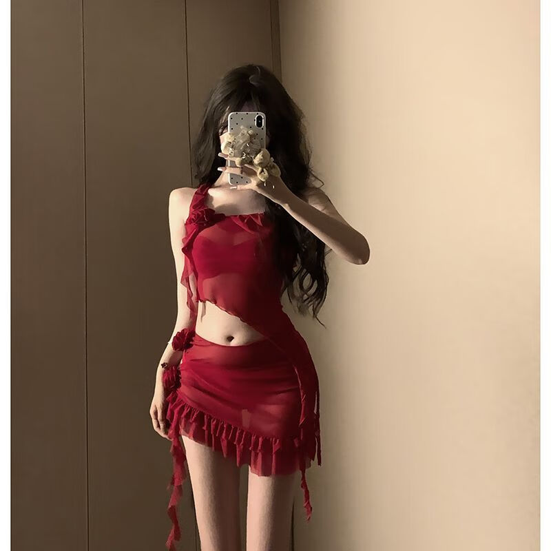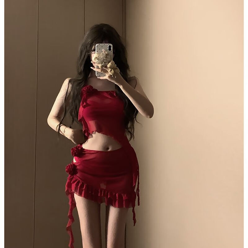 Yusiyi 2025 new seaside swimsuit women's bikini sexy outer wear fashion hot spring beach conservative Hong Kong style red Hong Kong style red four-piece set L
