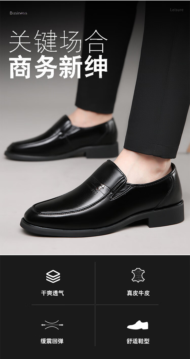 Star-head Woodpecker Leather Shoes Men's 100% All-Cow Leather Men's Shoes New 2025 Spring Men's Genuine Leather Business Formal Casual Dad Leather Shoes XT231 Black 42