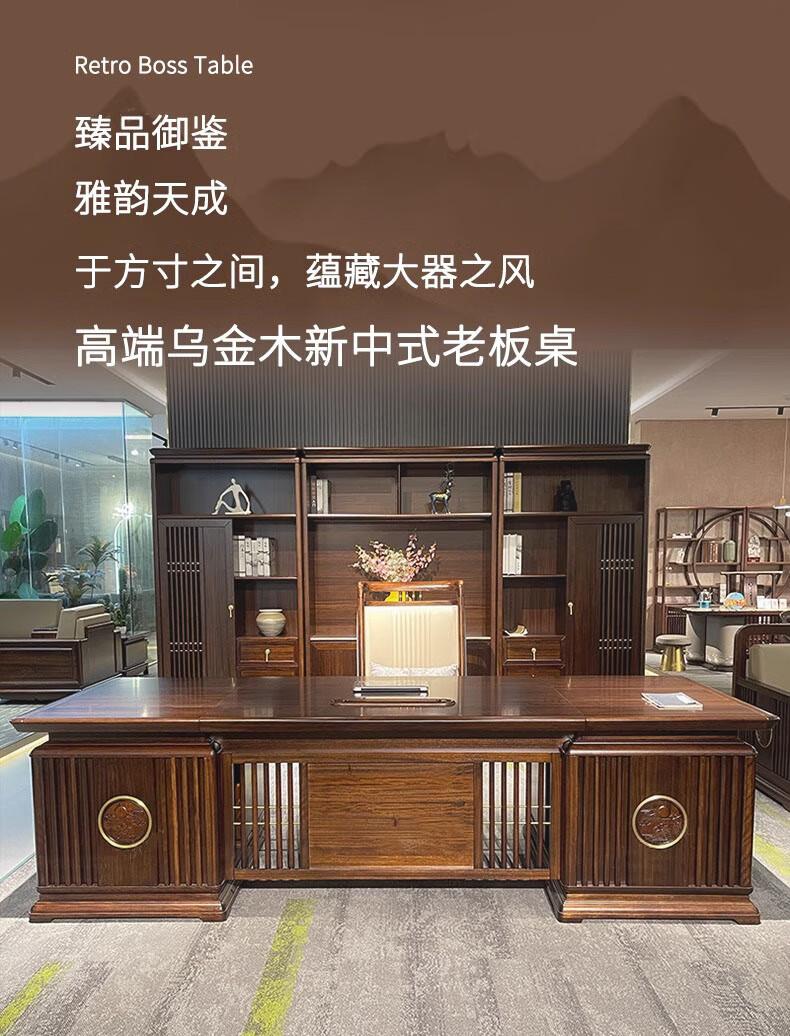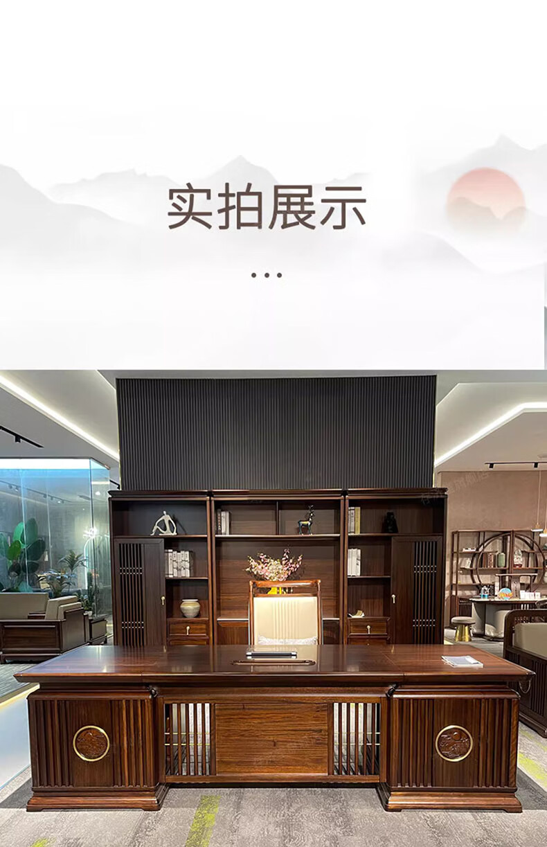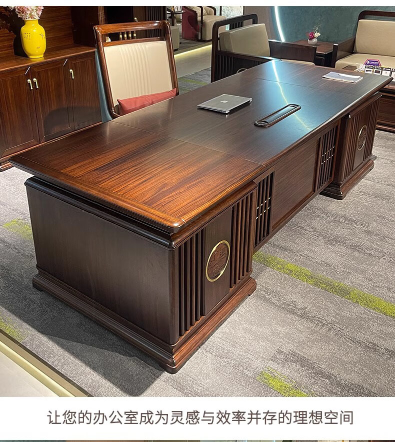 Aosenmingxin Chinese solid wood office desk and chair boss table ebony wood general manager office chairman high-end executive desk 2.4 meters boss table