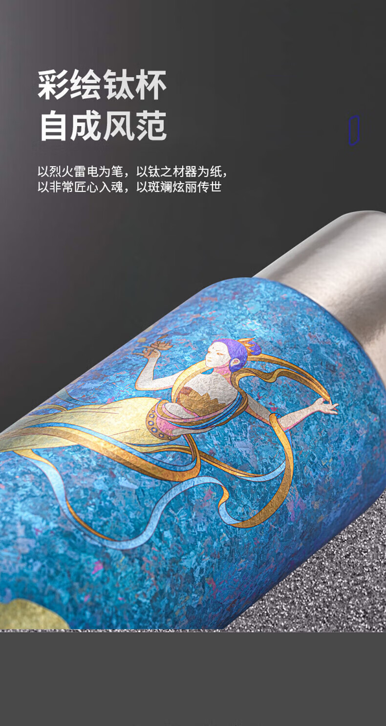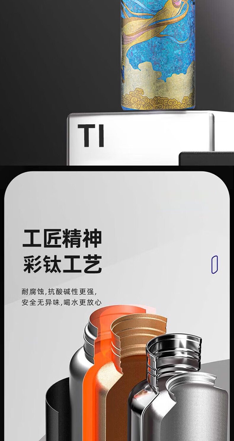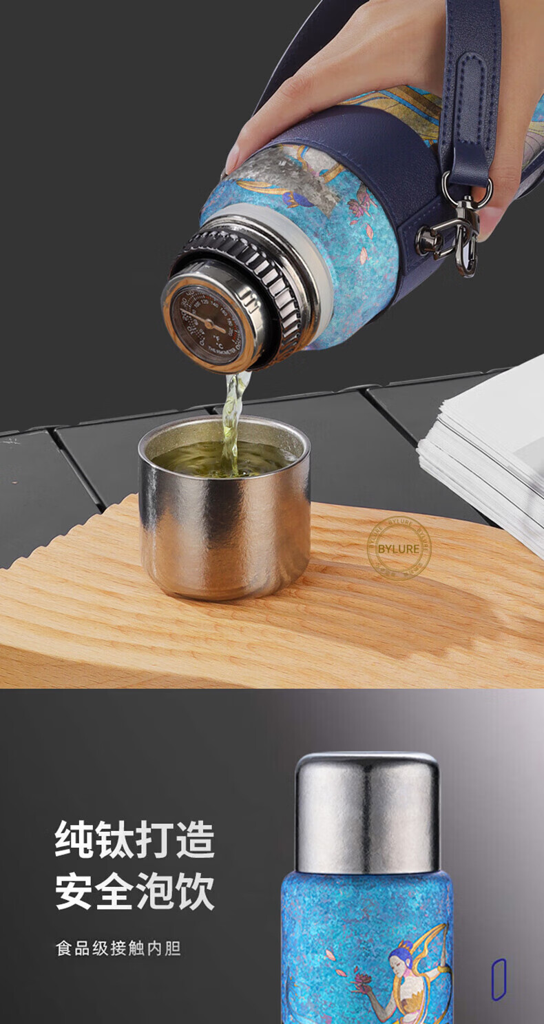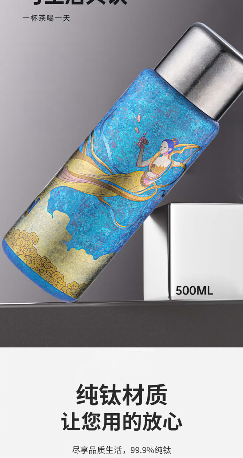 Zhaoran Brand Double-layer Pure Titanium Insulated Cup Vacuum Tea Separator Cup Healthy Tea Cup Large Capacity Outdoor Portable Stewed Tea Cup Dunhuang Feitian (cup cover and strap) 500ml
