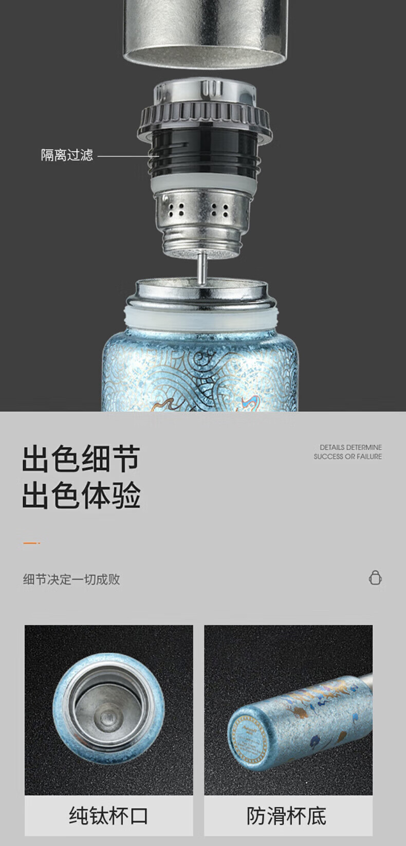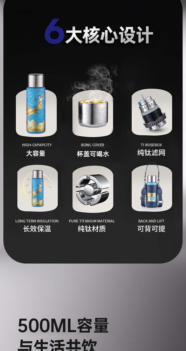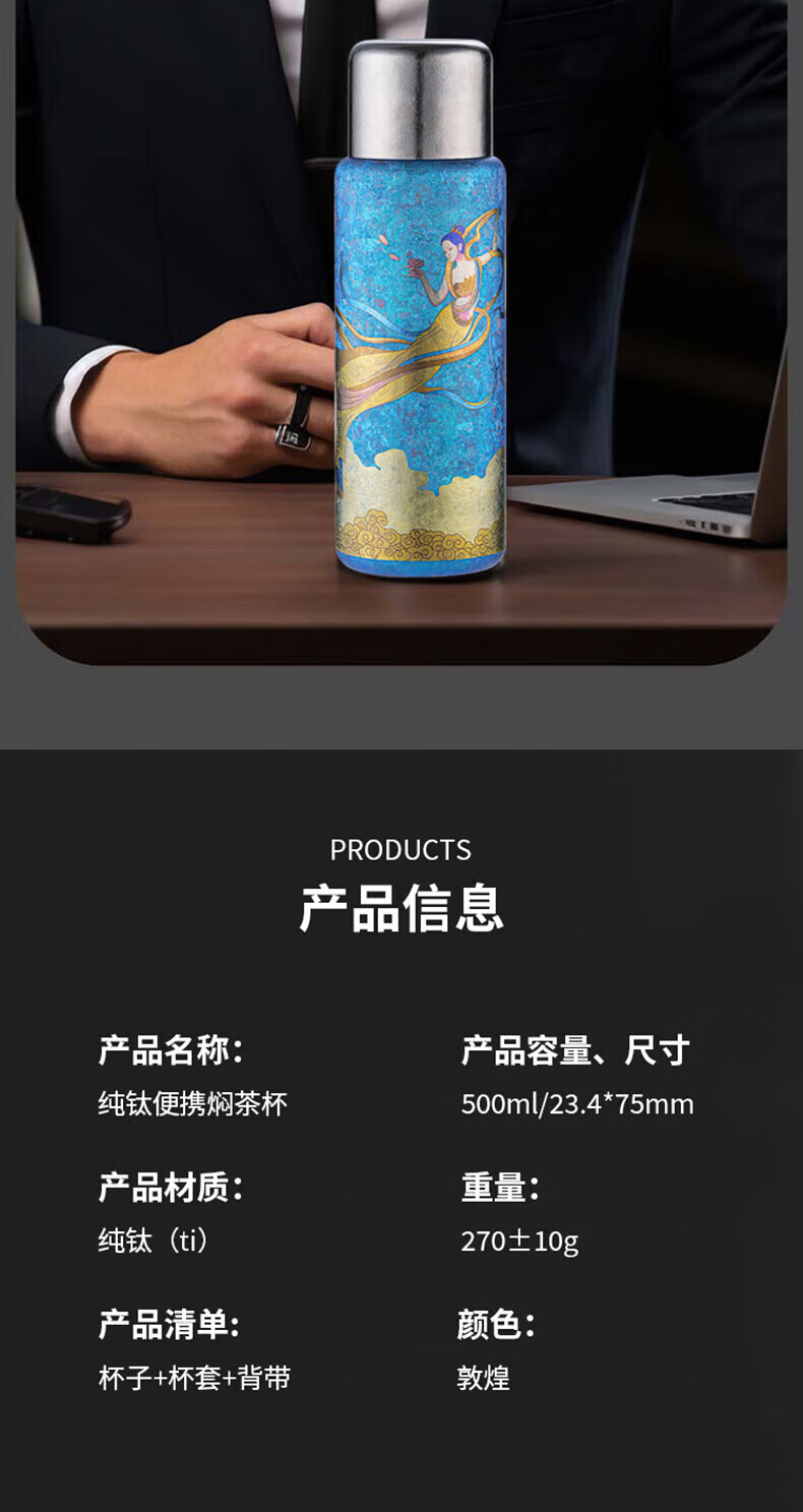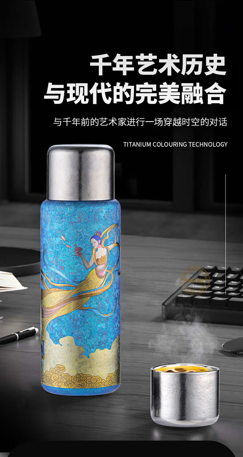 Zhaoran Brand Double-layer Pure Titanium Insulated Cup Vacuum Tea Separator Cup Healthy Tea Cup Large Capacity Outdoor Portable Stewed Tea Cup Dunhuang Feitian (cup cover and strap) 500ml