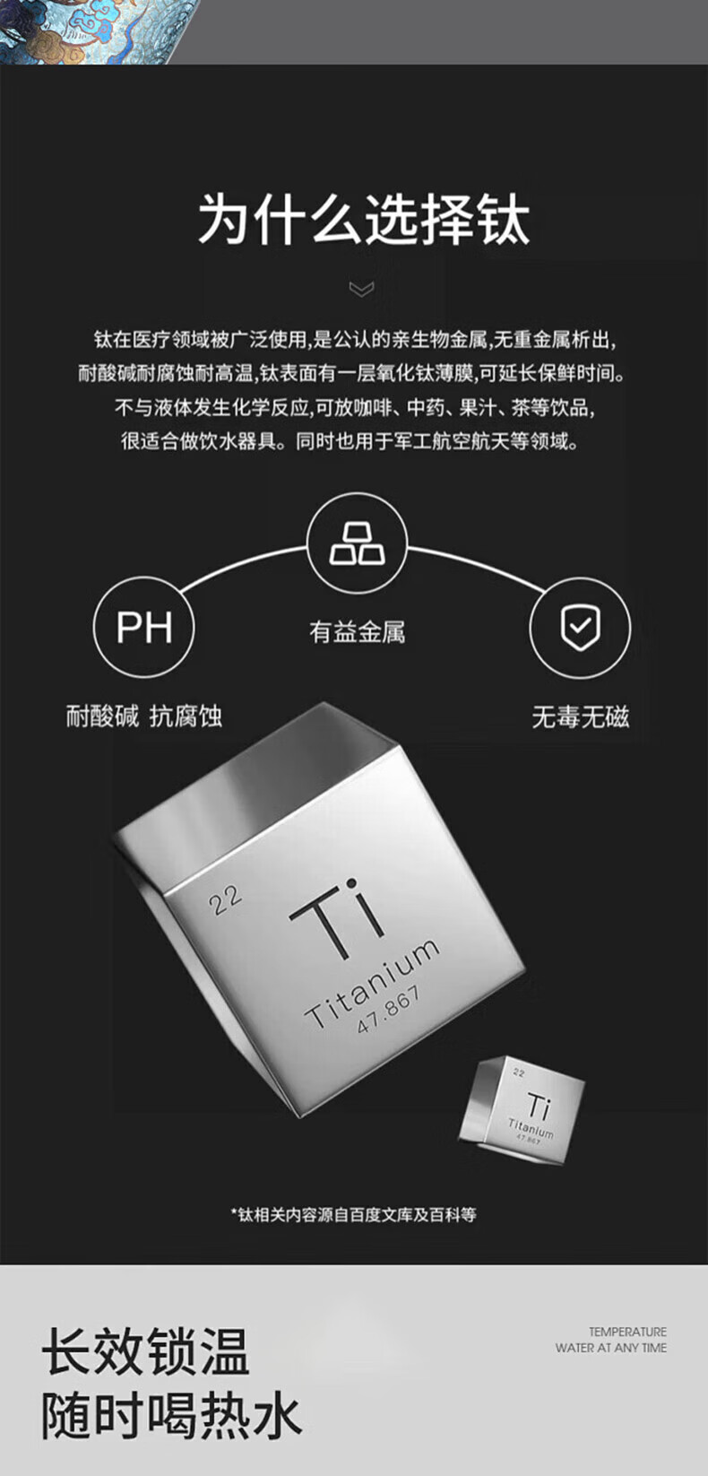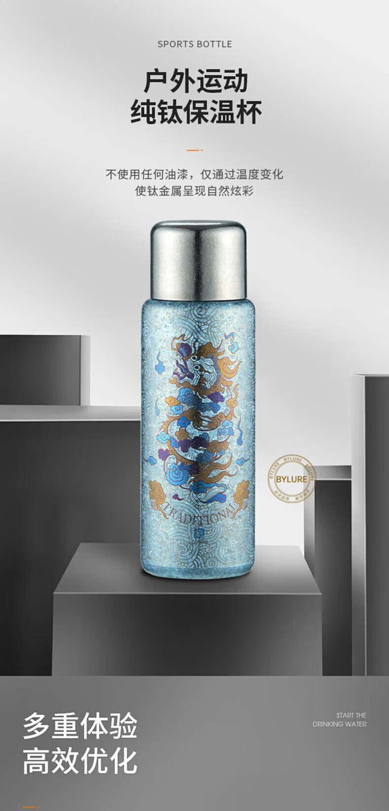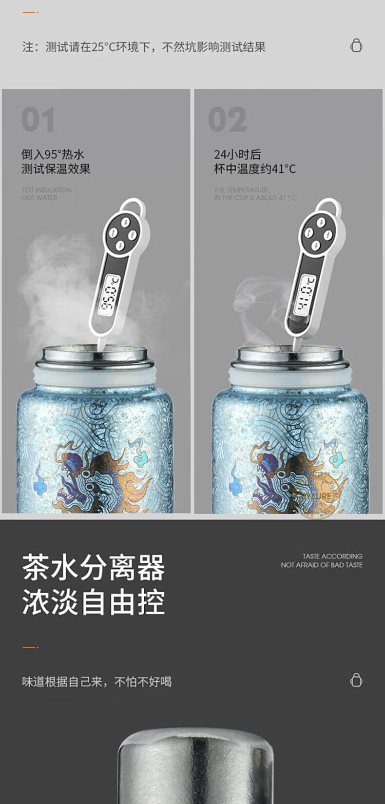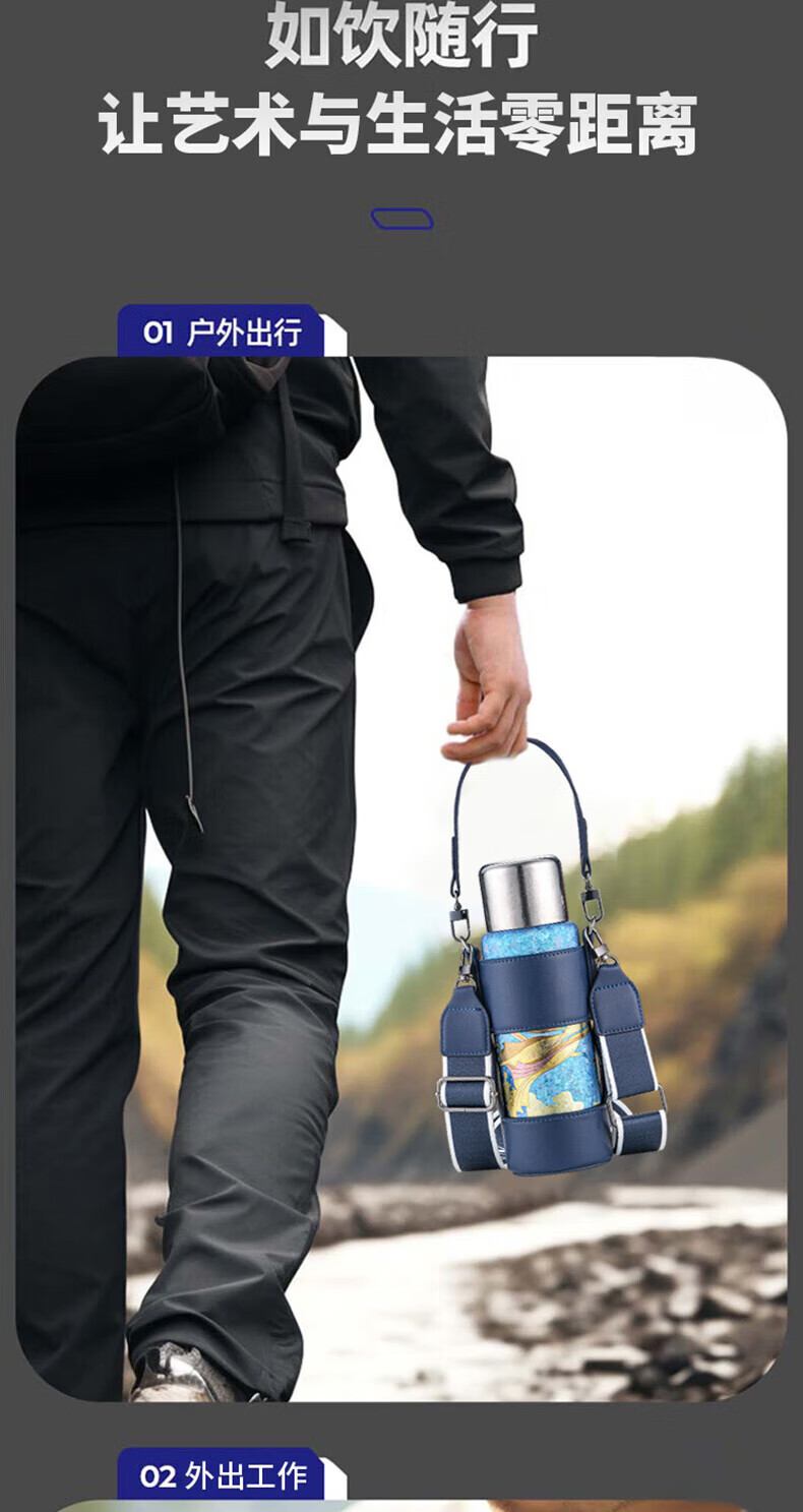 Zhaoran Brand Double-layer Pure Titanium Insulated Cup Vacuum Tea Separator Cup Healthy Tea Cup Large Capacity Outdoor Portable Stewed Tea Cup Dunhuang Feitian (cup cover and strap) 500ml
