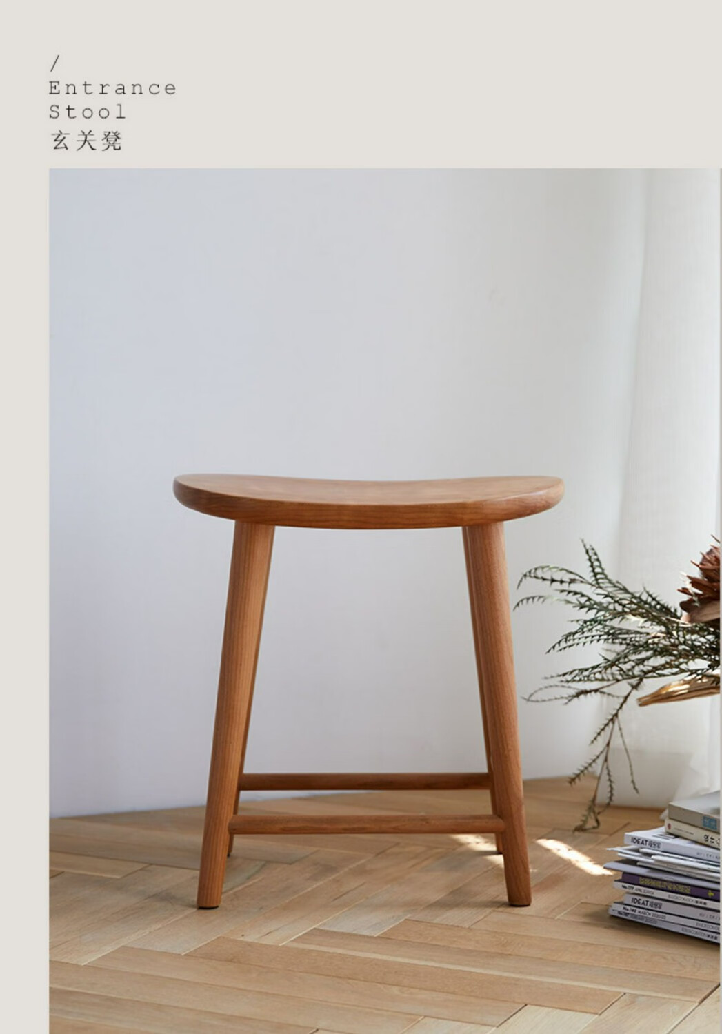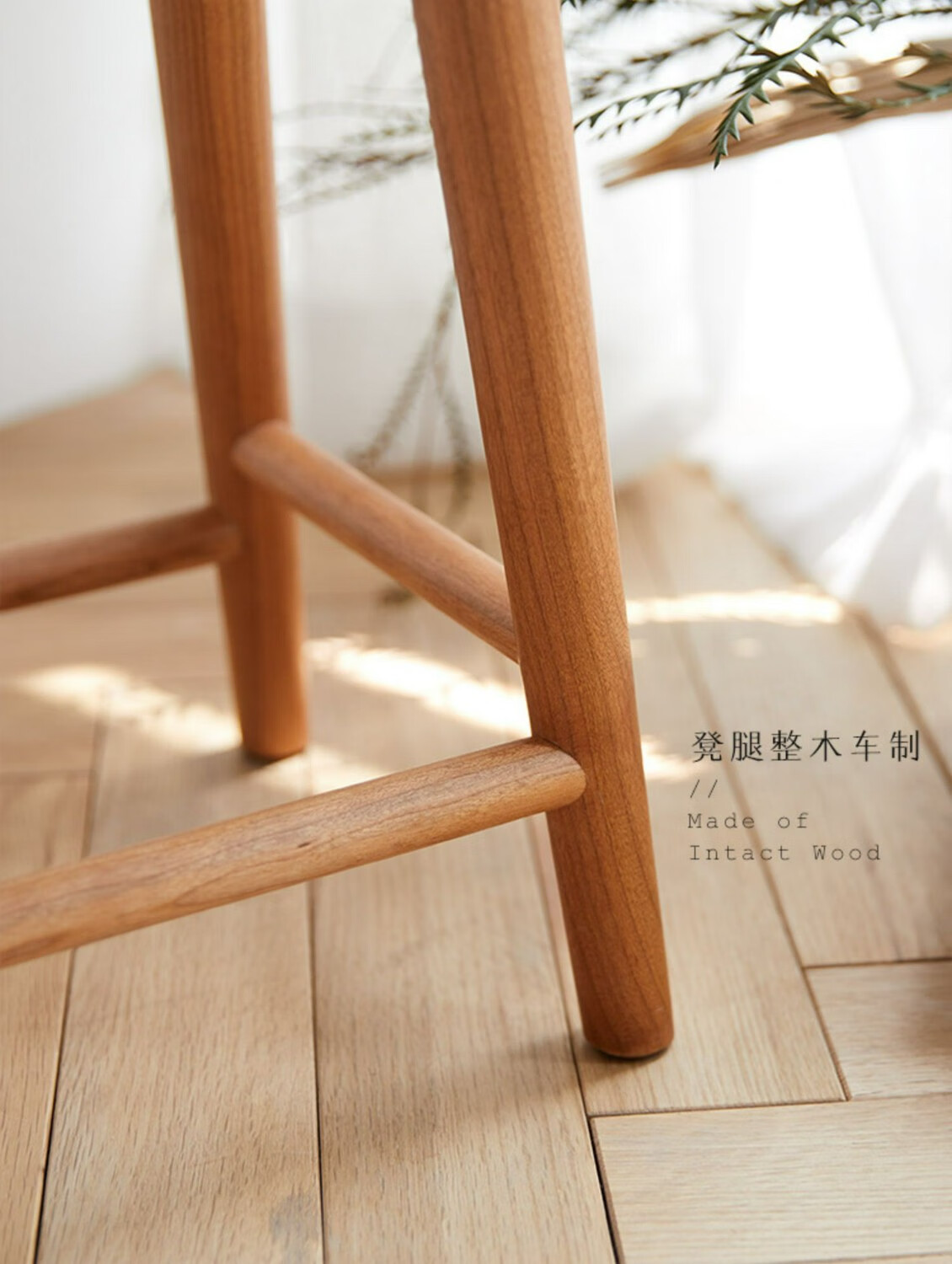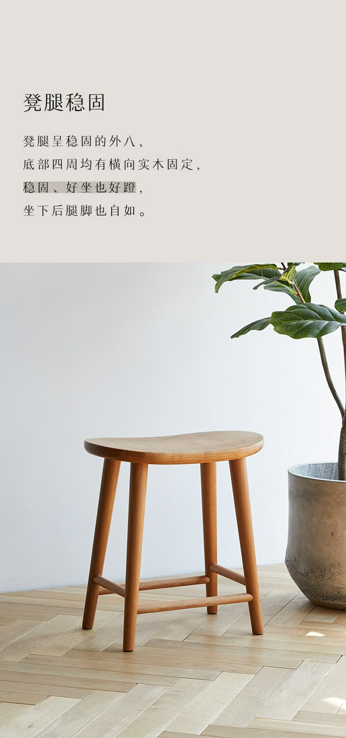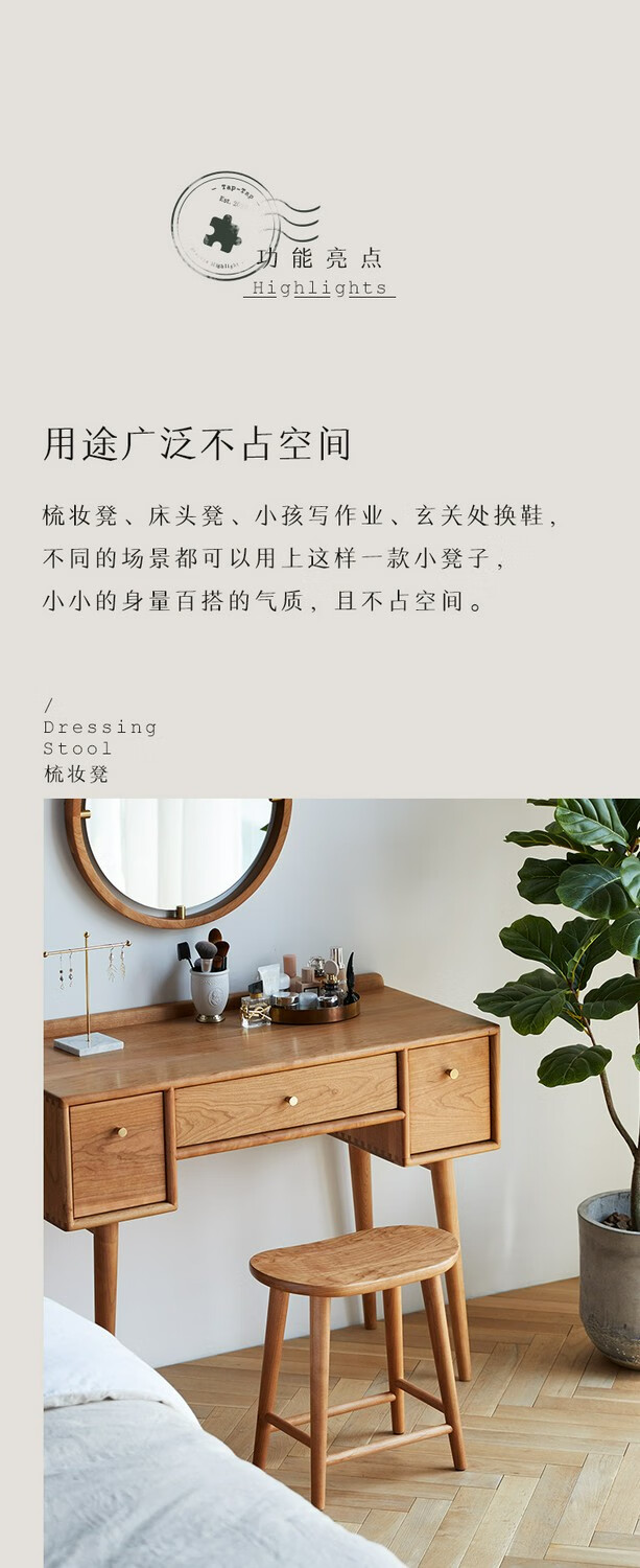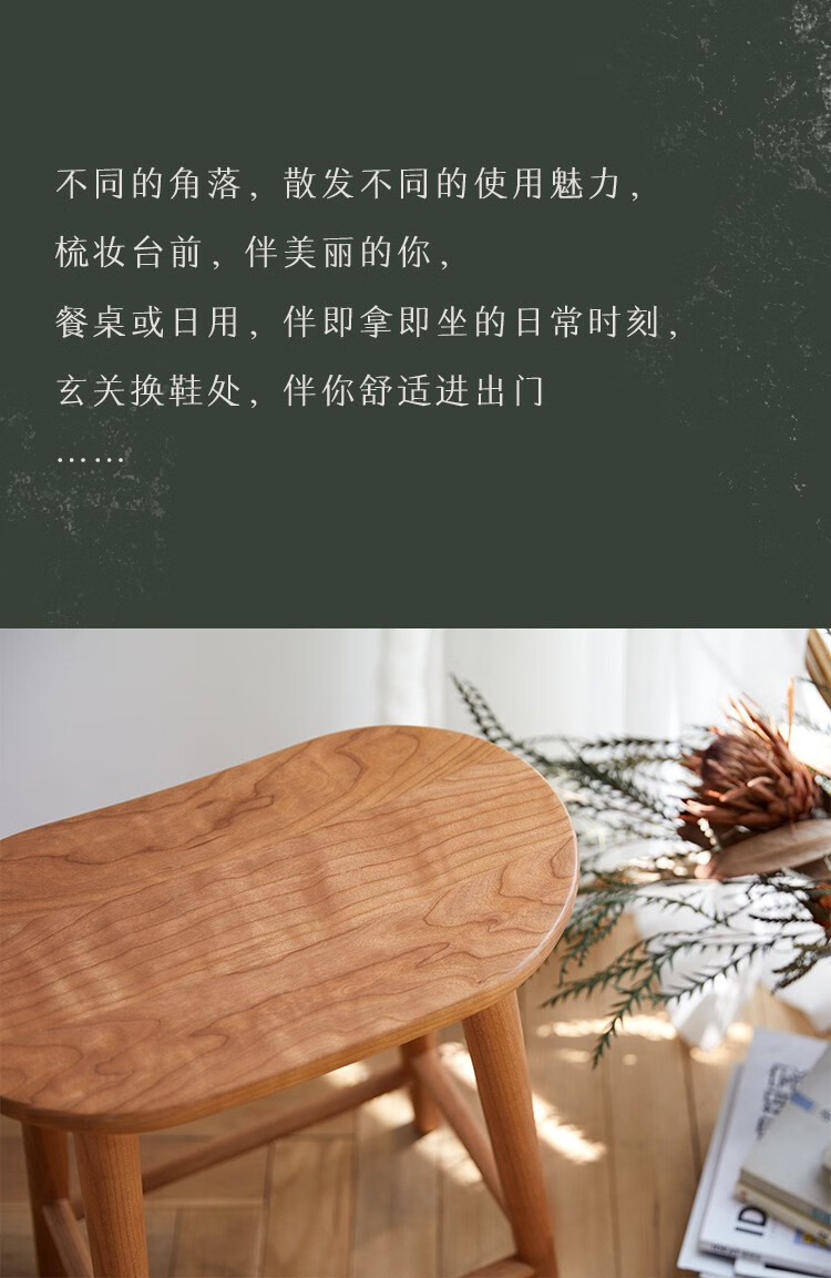 Nordic Japanese style all solid wood makeup stool bedroom simple mortise and tenon dressing table stool cherry wood small apartment shoe changing stool cherry wood color 42*26*44.5 cm
