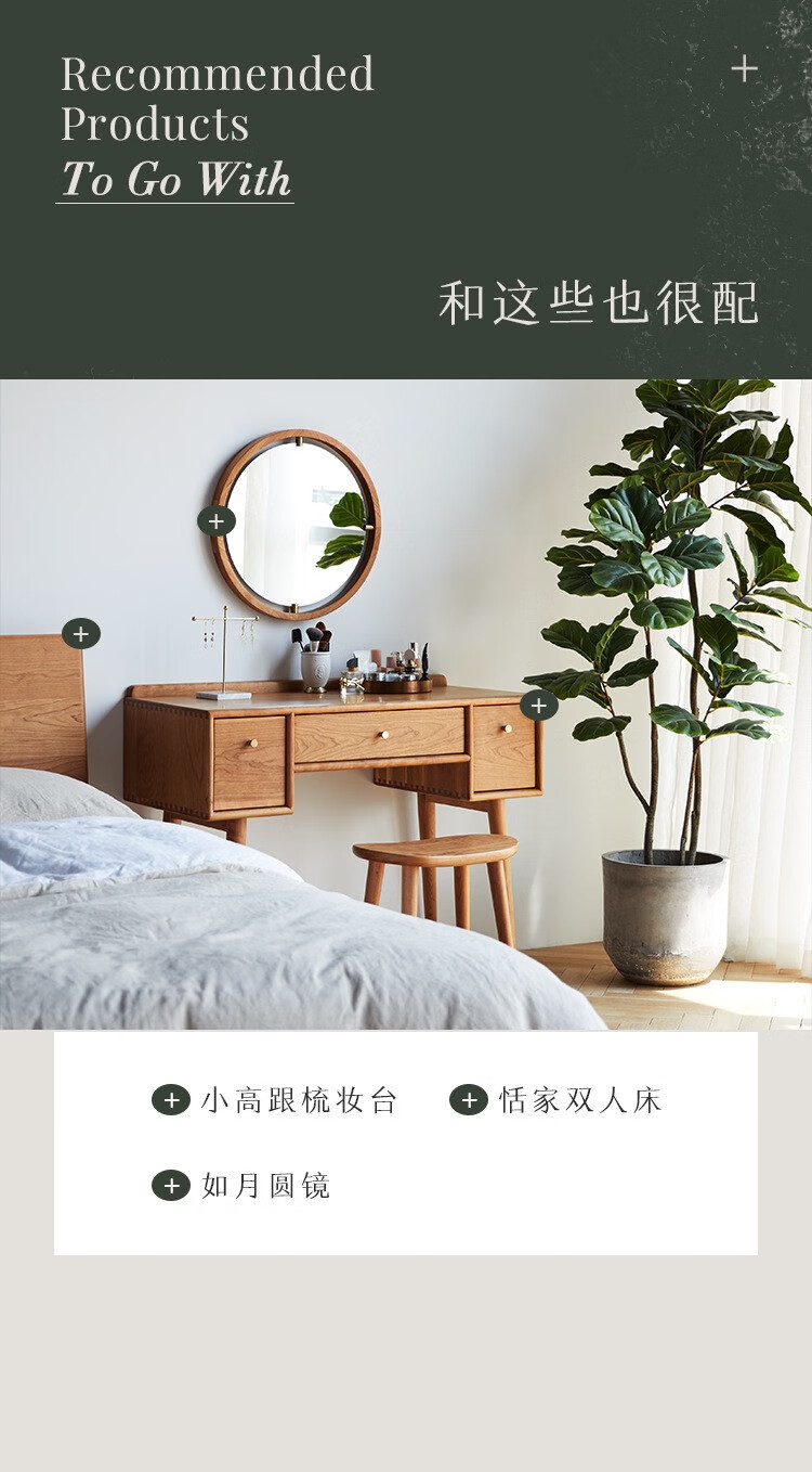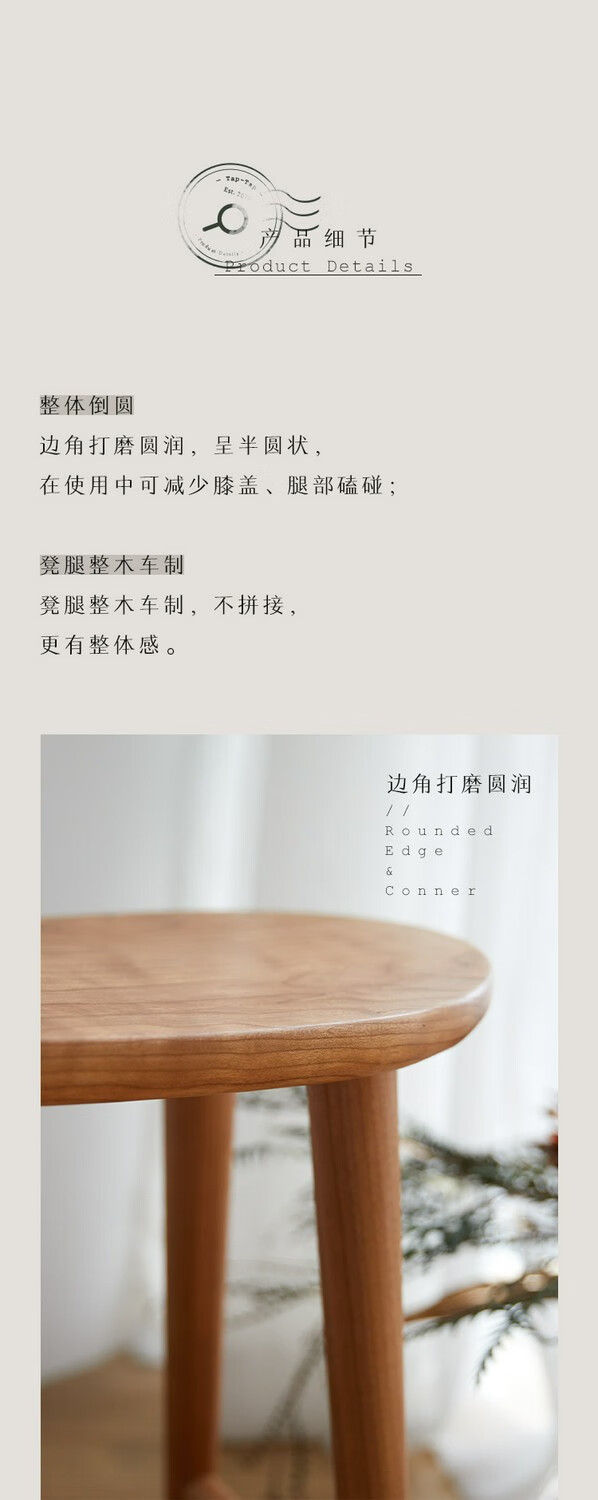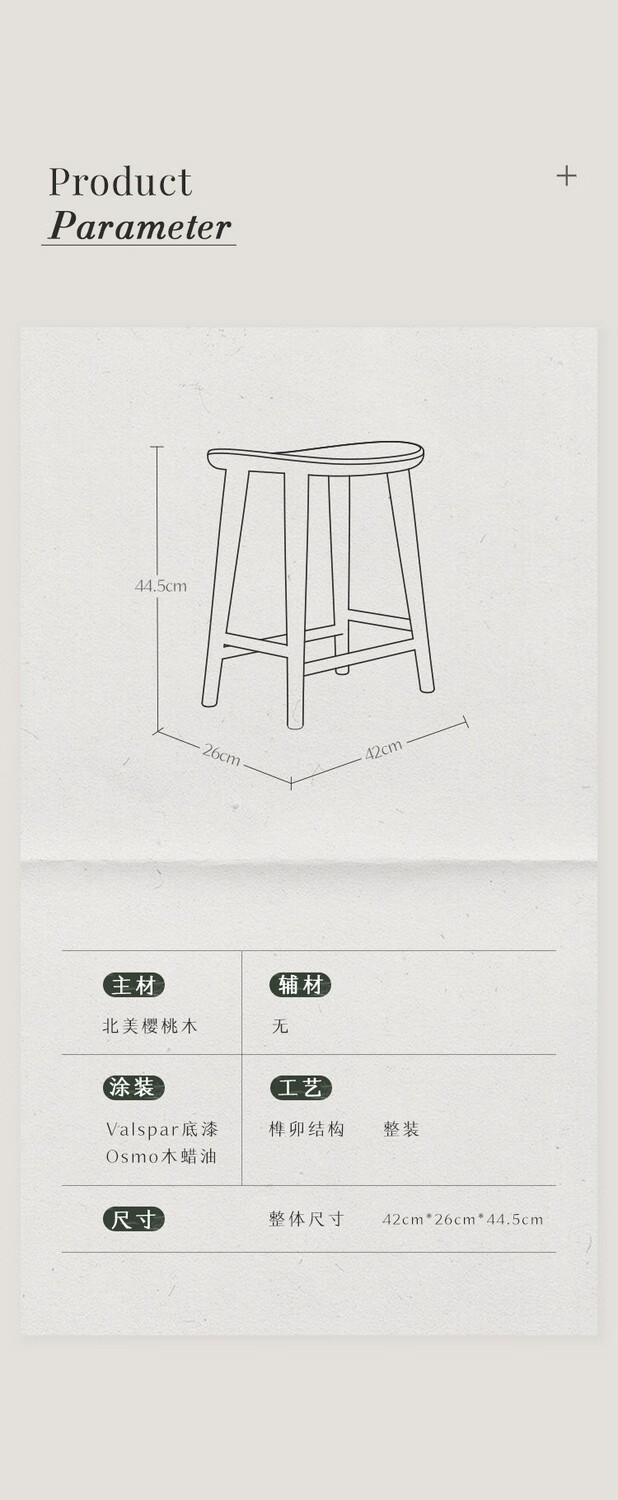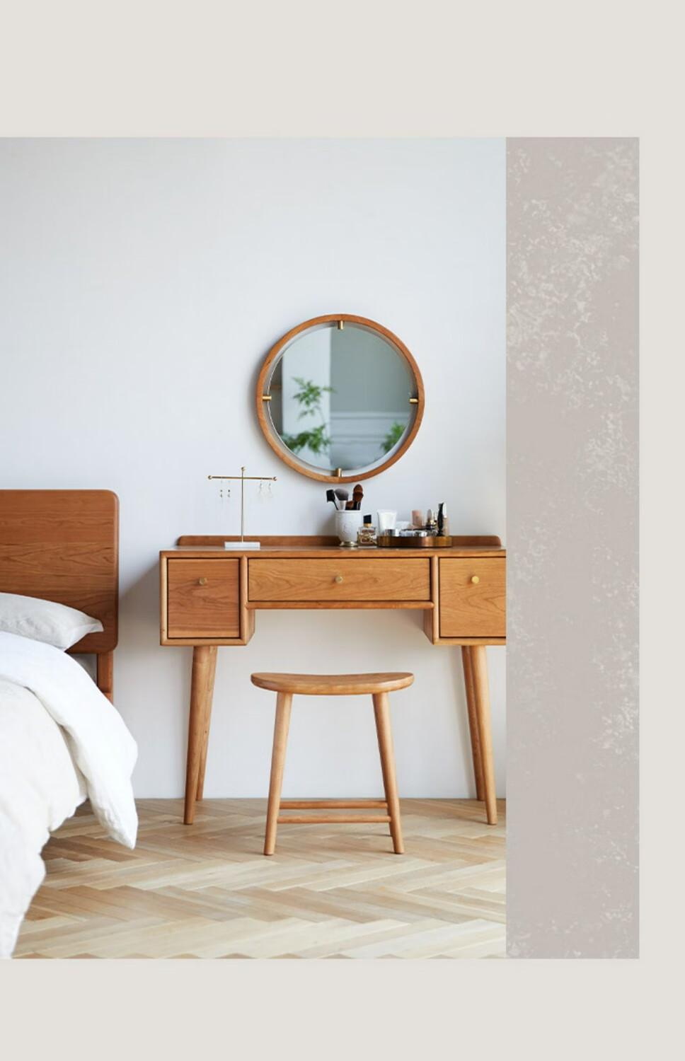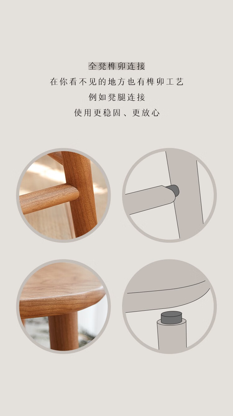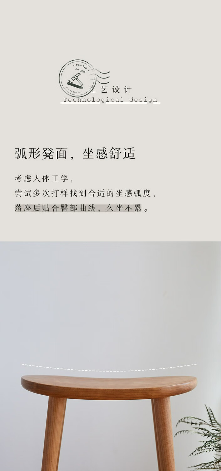 Nordic Japanese style all solid wood makeup stool bedroom simple mortise and tenon dressing table stool cherry wood small apartment shoe changing stool cherry wood color 42*26*44.5 cm