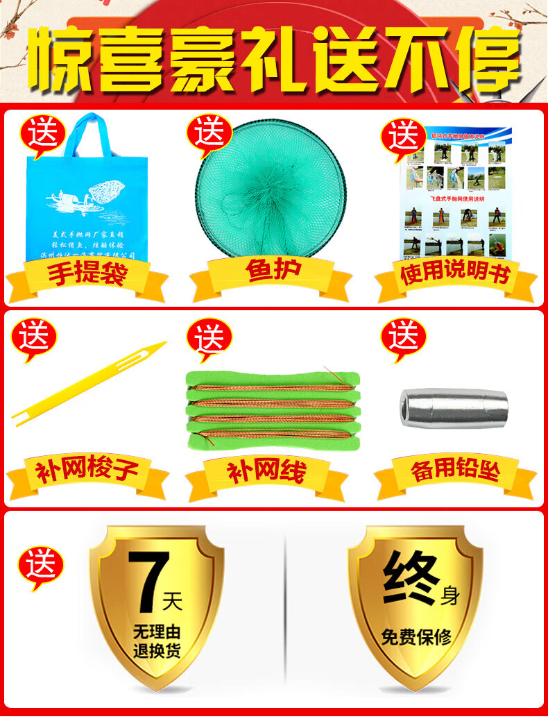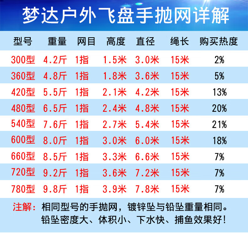 Mengda Large Frisbee Type Cast Net American Fishing Net Throwing Net Hand Throwing Net Fishing Net Fishing Automatic Easy Throwing Spin Net Throwing Flying Disc Type Hand Throwing Net Children's Model No Gifts