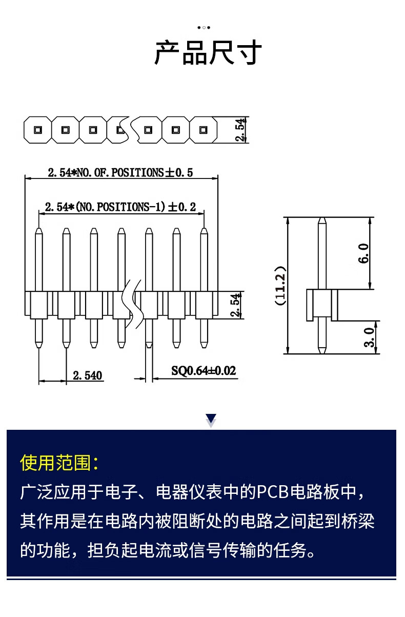 Single/double row pin spacing 2.54MM 1*2p/3p/4p/8P/16p/20p pin LCD1602/128 1*40P double-ended round pin gold-plated