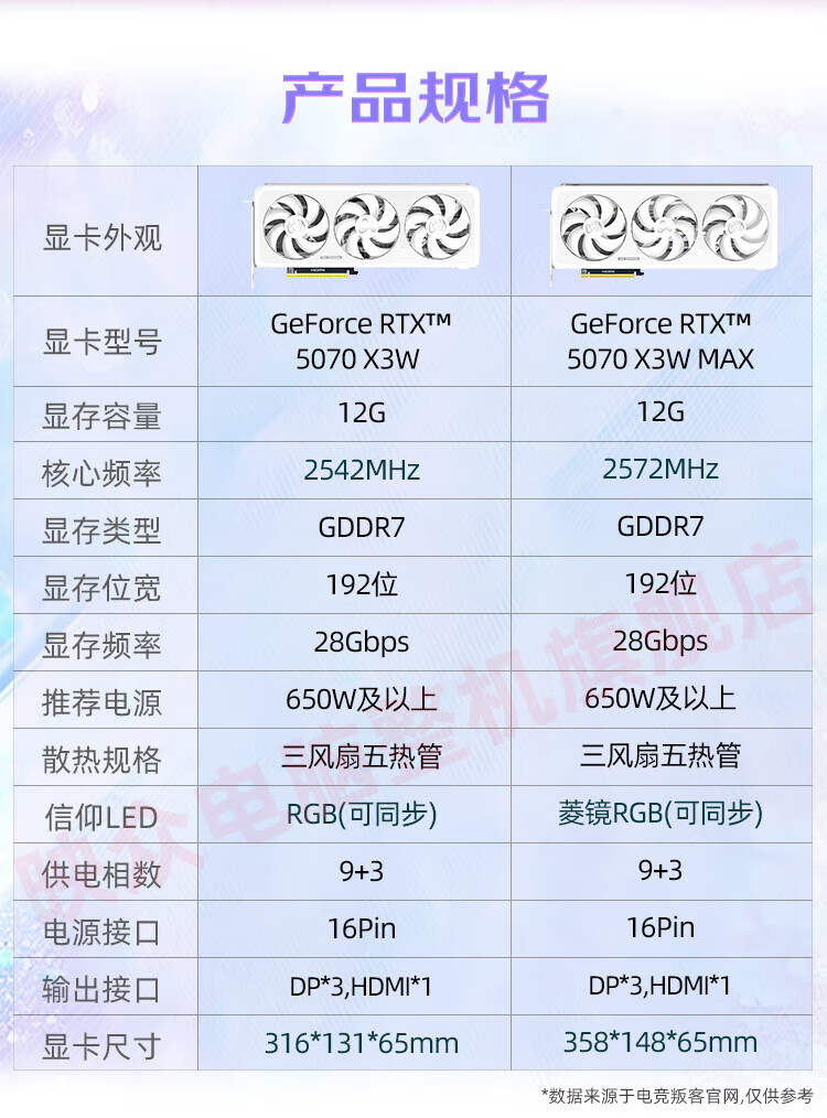 E-sports rebel RTX 5070 X3W MAX 12G New architecture DLSS 4 game AI computing design rendering independent graphics card RTX 5070 X3W 12G