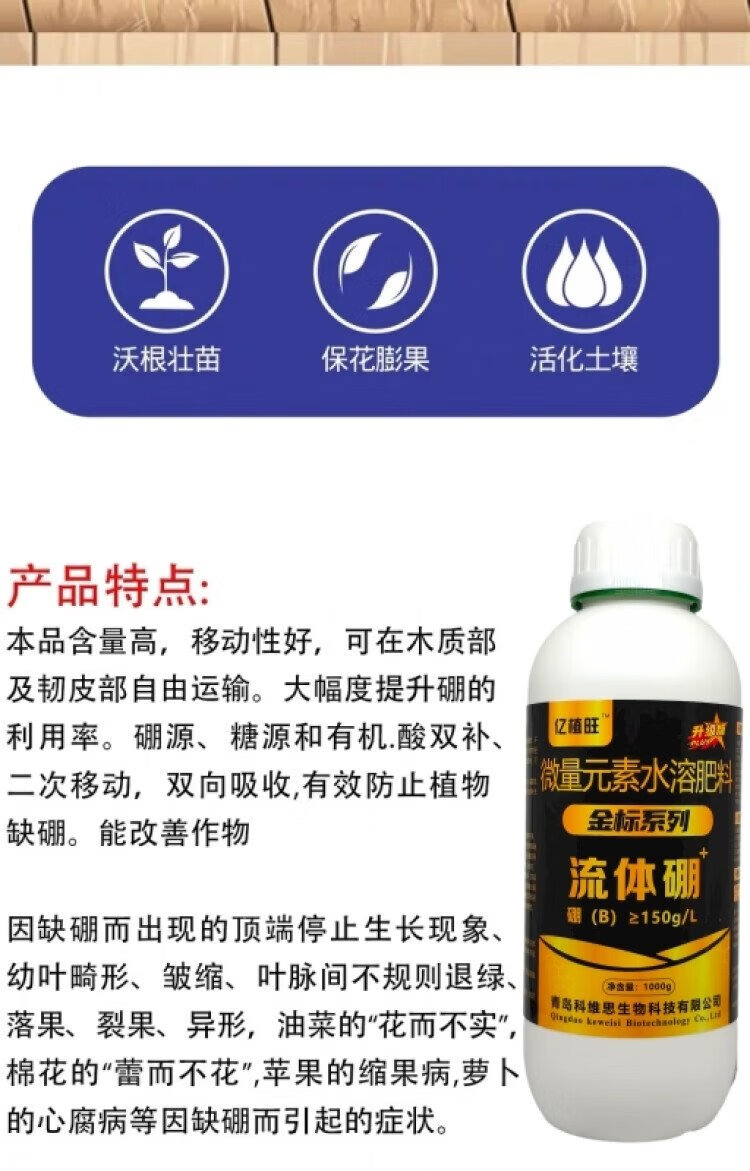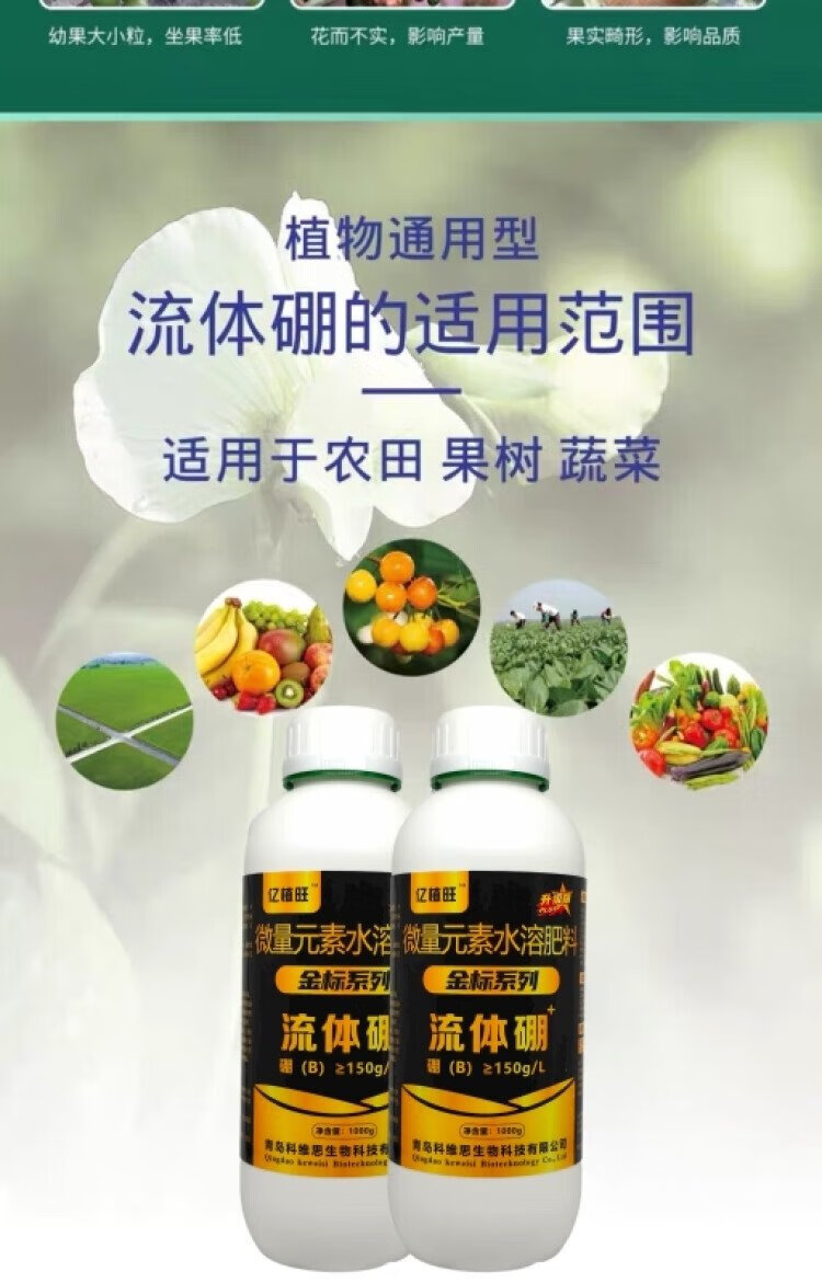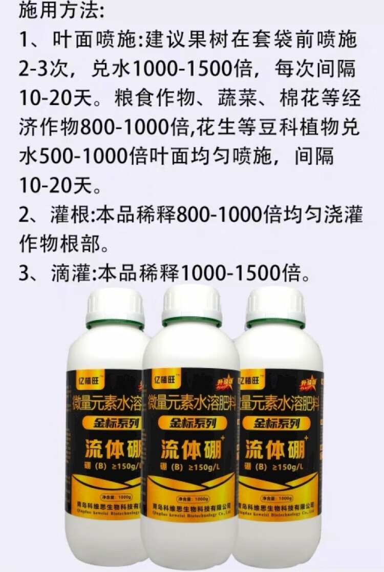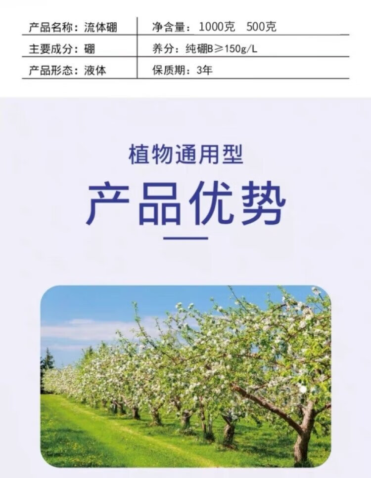 Yizhiwang Fluid Boron Foliar Fertilizer Liquid Boron Fertilizer Trace Element Water-Soluble Fertilizer Vegetables and Fruit Trees Promote Flowers and Fruits Premium Fluid Boron 500g*1 Bottle