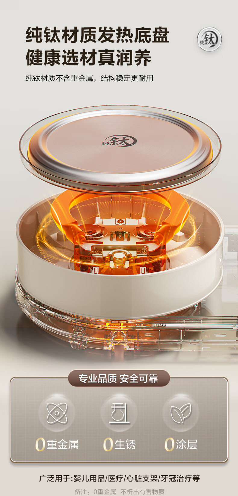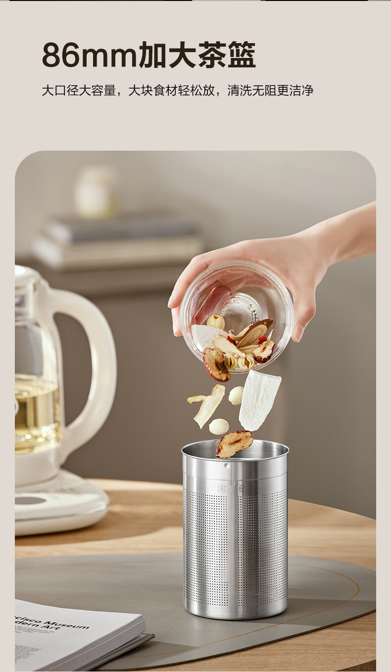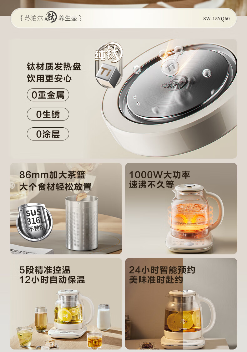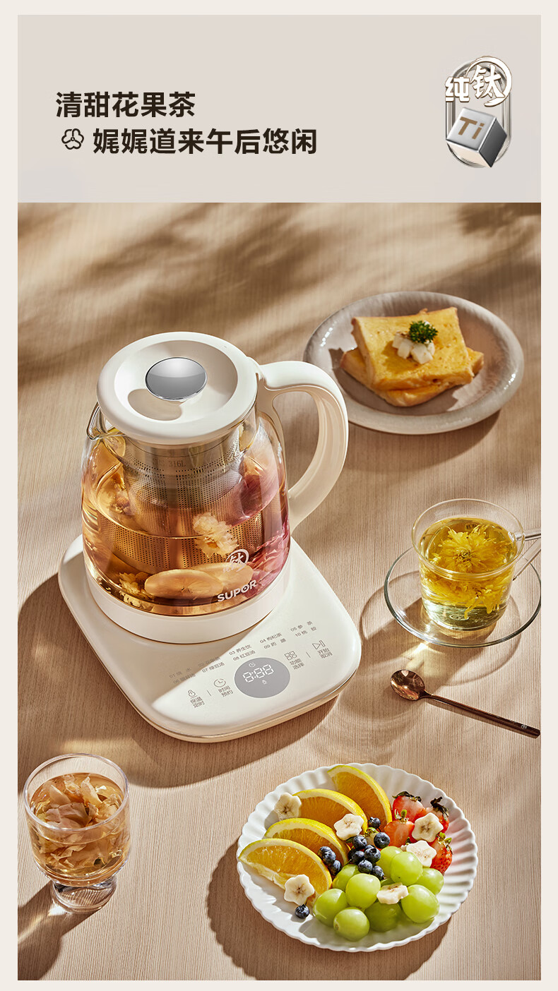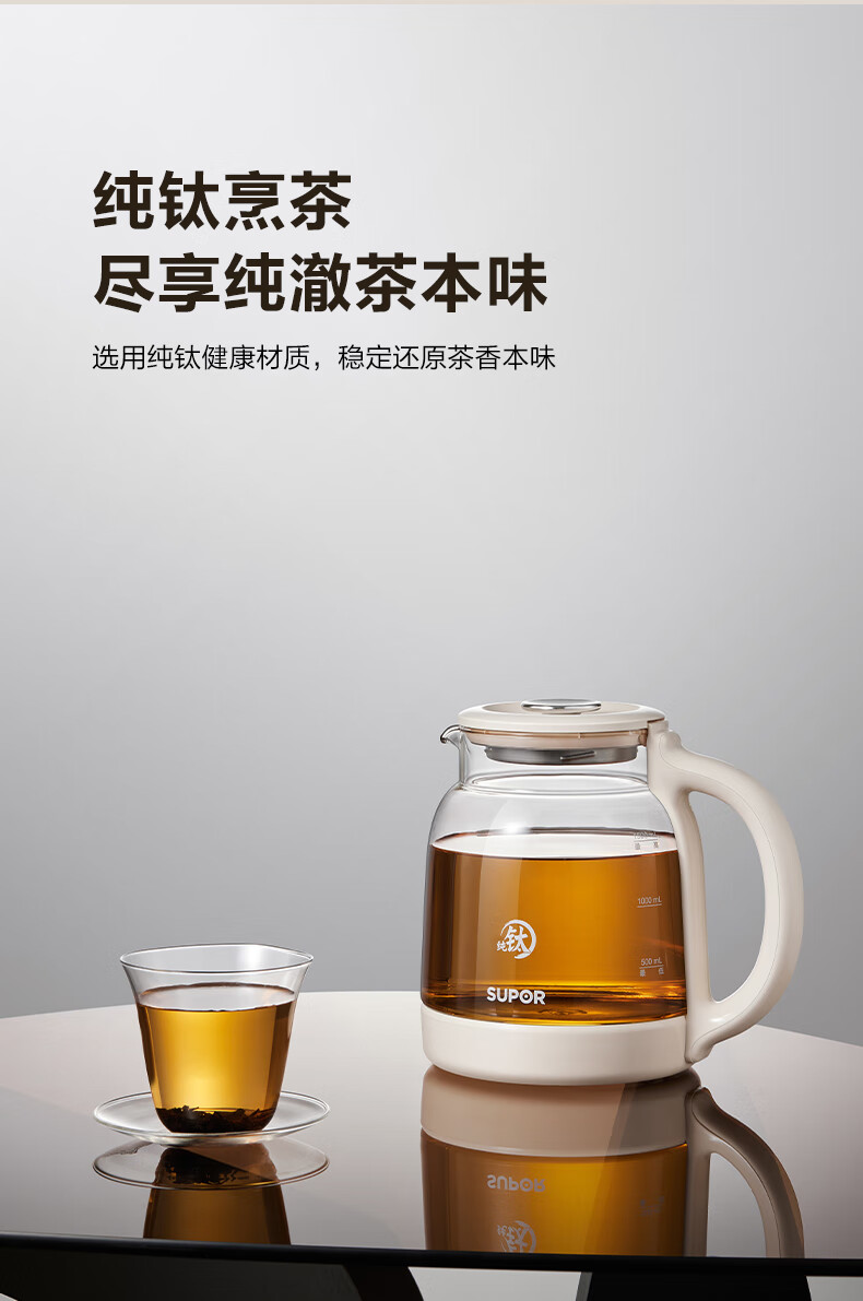 SUPOR pure titanium health kettle, tea kettle 316L stainless steel, enlarged filter, household multi-functional small office glass kettle, flower tea kettle, multi-stage heat preservation 1.5L titanium heating plate