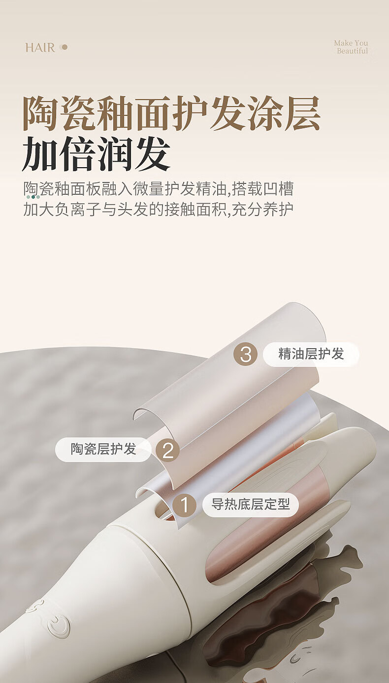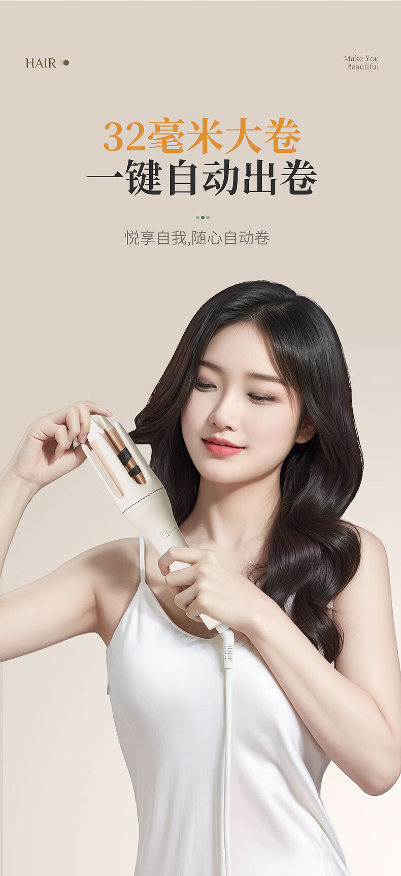Fully automatic curling wand, the same style as lena, electric negative ion 32mm large wave, does not hurt hair, curling artifact, long-lasting styling in dormitory, shell fluffy elastic comb (random color)
