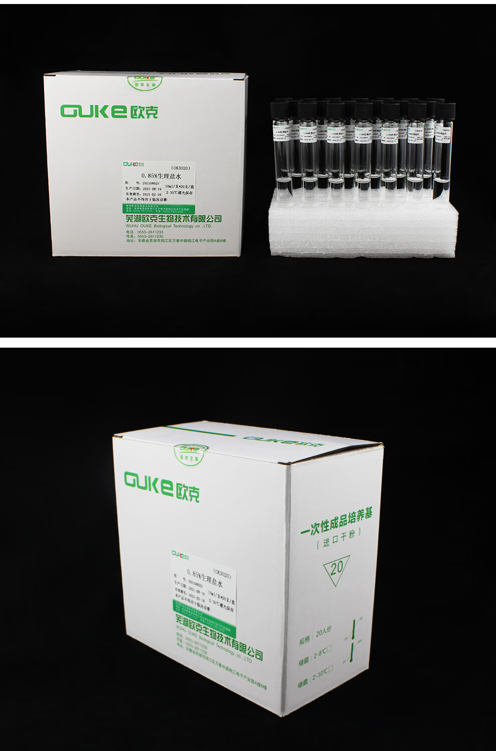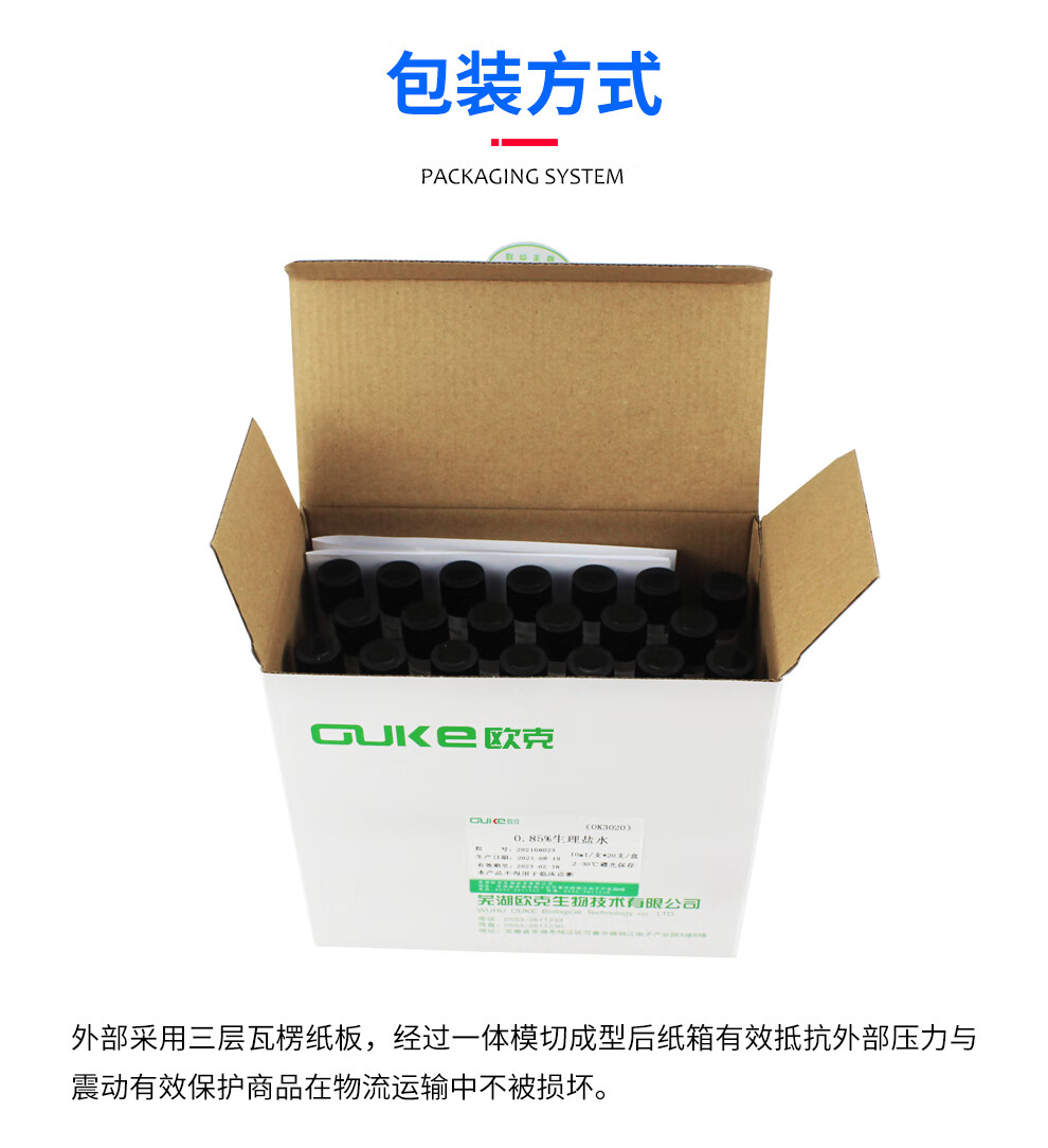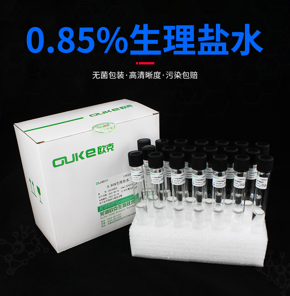 0.85% physiological saline Wuhu Oak Biotech is used for the preparation and dilution of bacterial liquid. Test tube sterile saline. Microbial transport sampling tube 9ml/tube 20 tubes/box