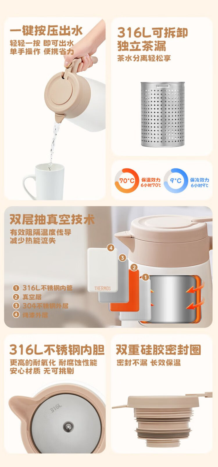 Thermos thermos kettle household large-capacity stainless steel kettle portable dormitory kettle tea separator kettle TEHC Sanrio 1.5L