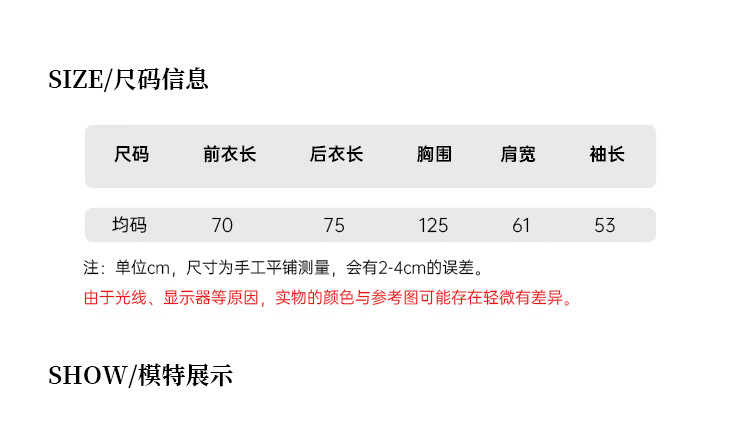 Size (cm) 42 44 46 48 50
