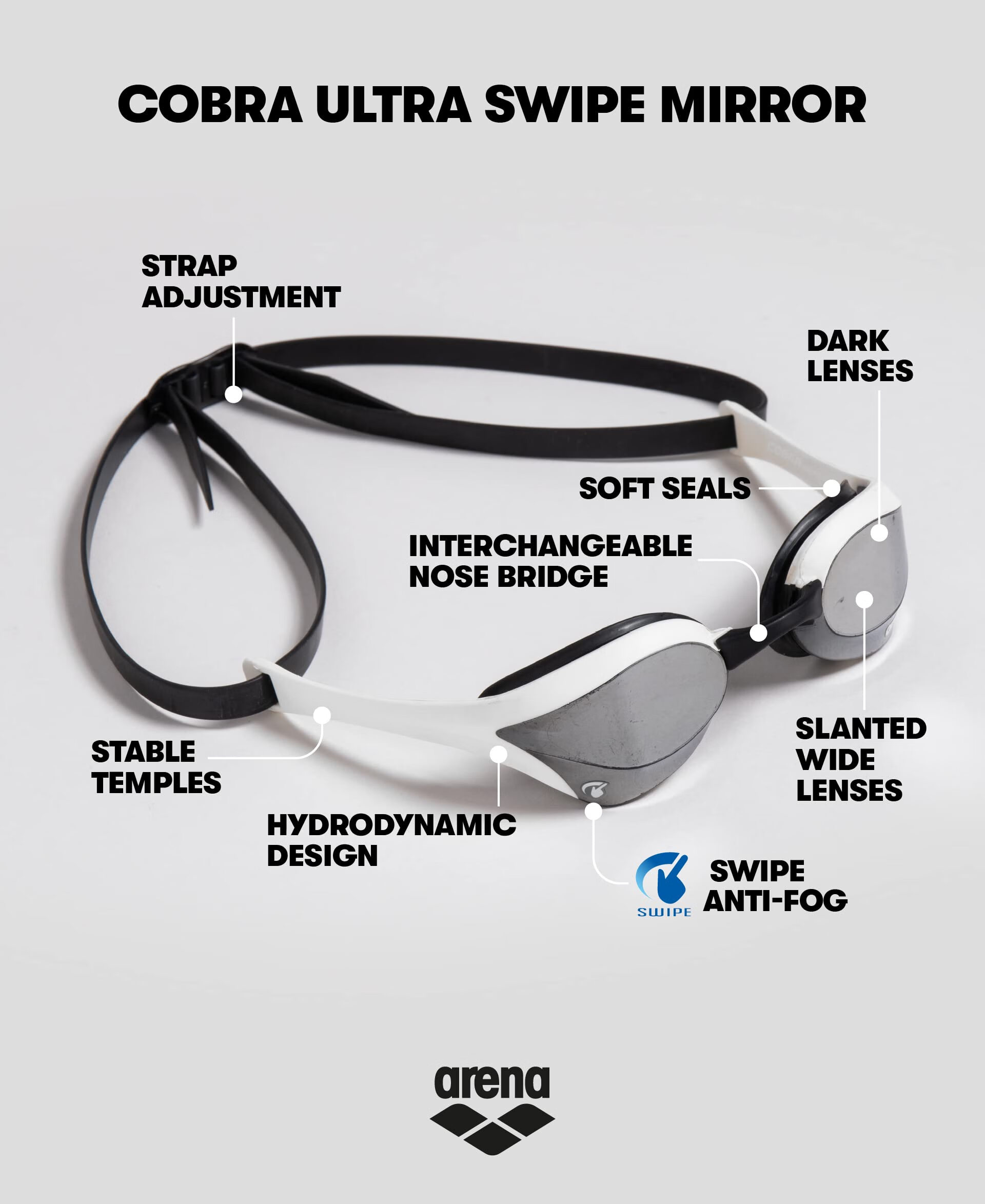 Arena Unisex Cobra Ultra Swive Racing Goggles Anti-fog Silver/Gold Jade Lime One Size