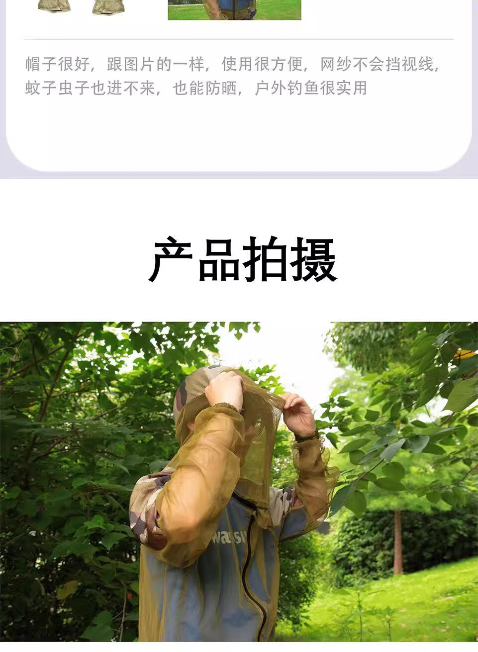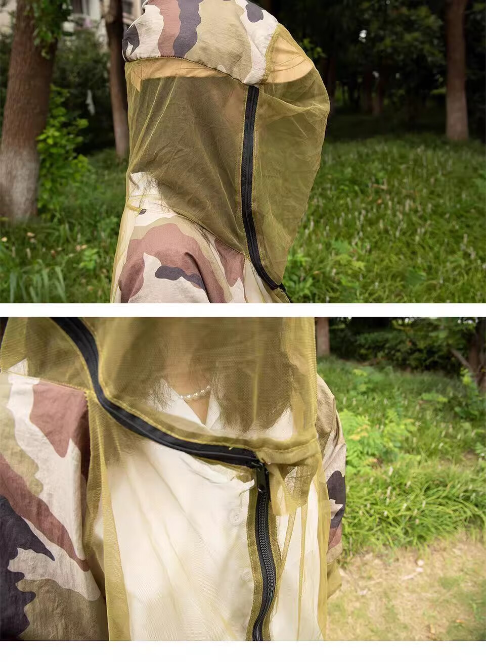 Yuanzu mesh outdoor fishing anti-mosquito sun protection clothing jungle camping outdoor coverall summer quick-drying breathable hooded full body suit L (height 160-175) cm