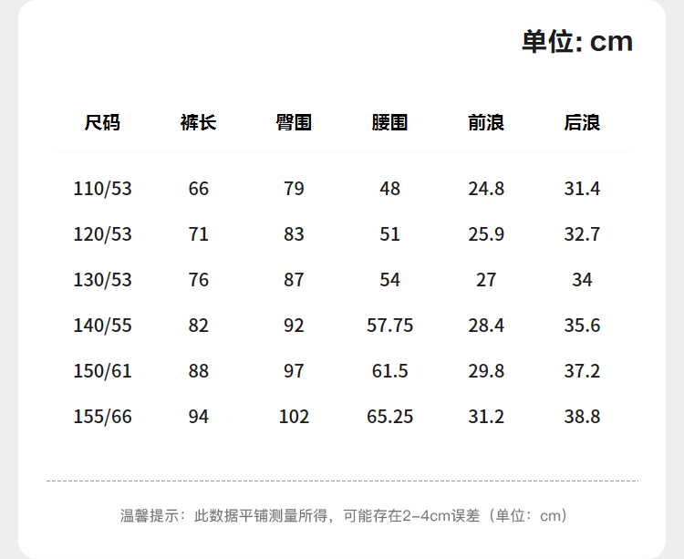 Outseam (cm) 99 cm 101.5 cm 104 cm 106.5 cm 109 cm